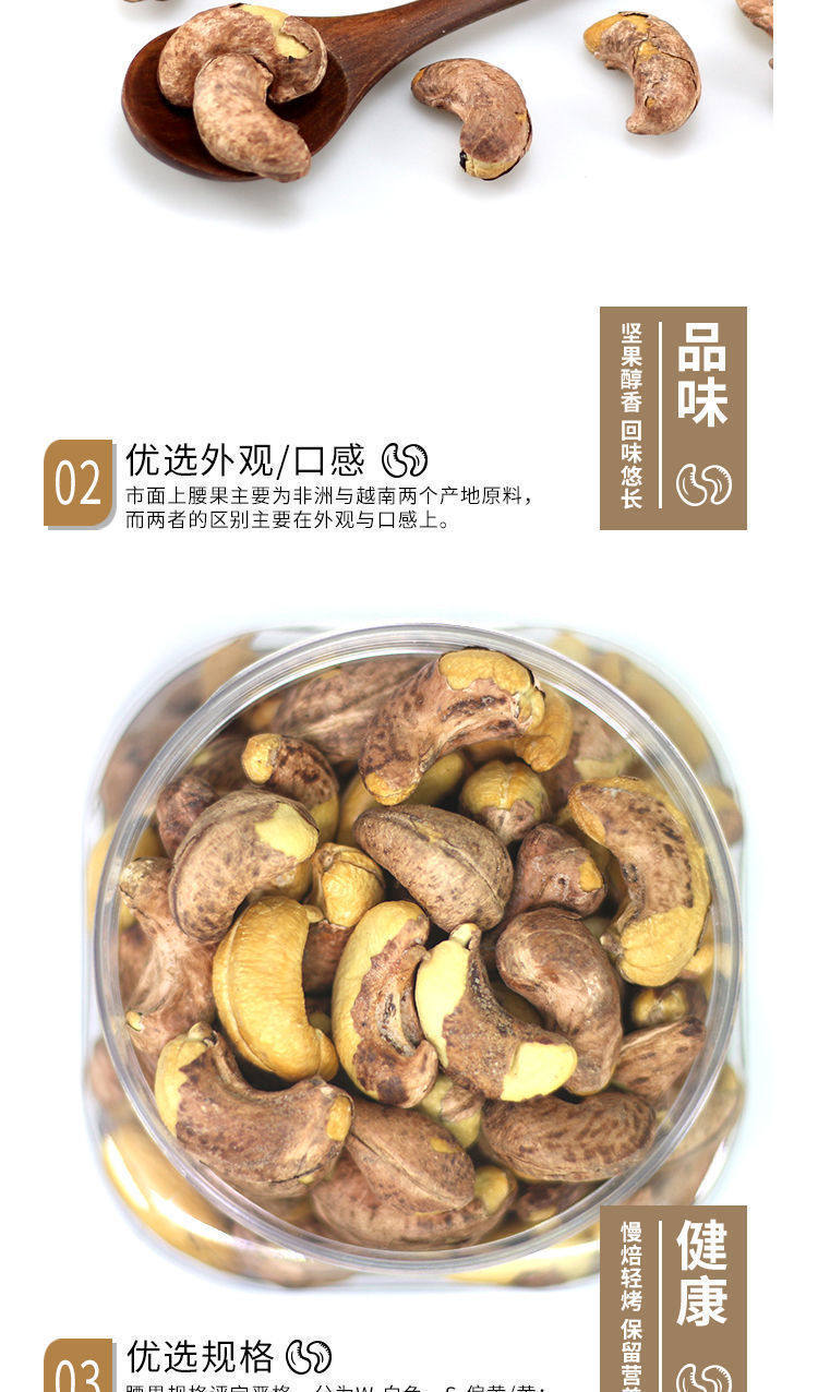 | Packaging specifications | Half a piece of tiger skin cashew nut with clothes,Extra large half piece of tiger skin cashew nuts with clothes,Medium grain tiger skin cashew nuts,Large capsules with tiger skin cashew nuts,Extra large tiger skin cashew nuts with clothes |