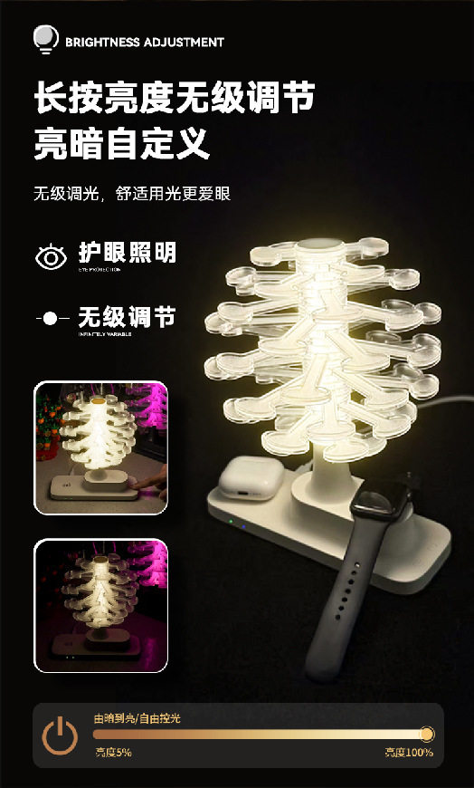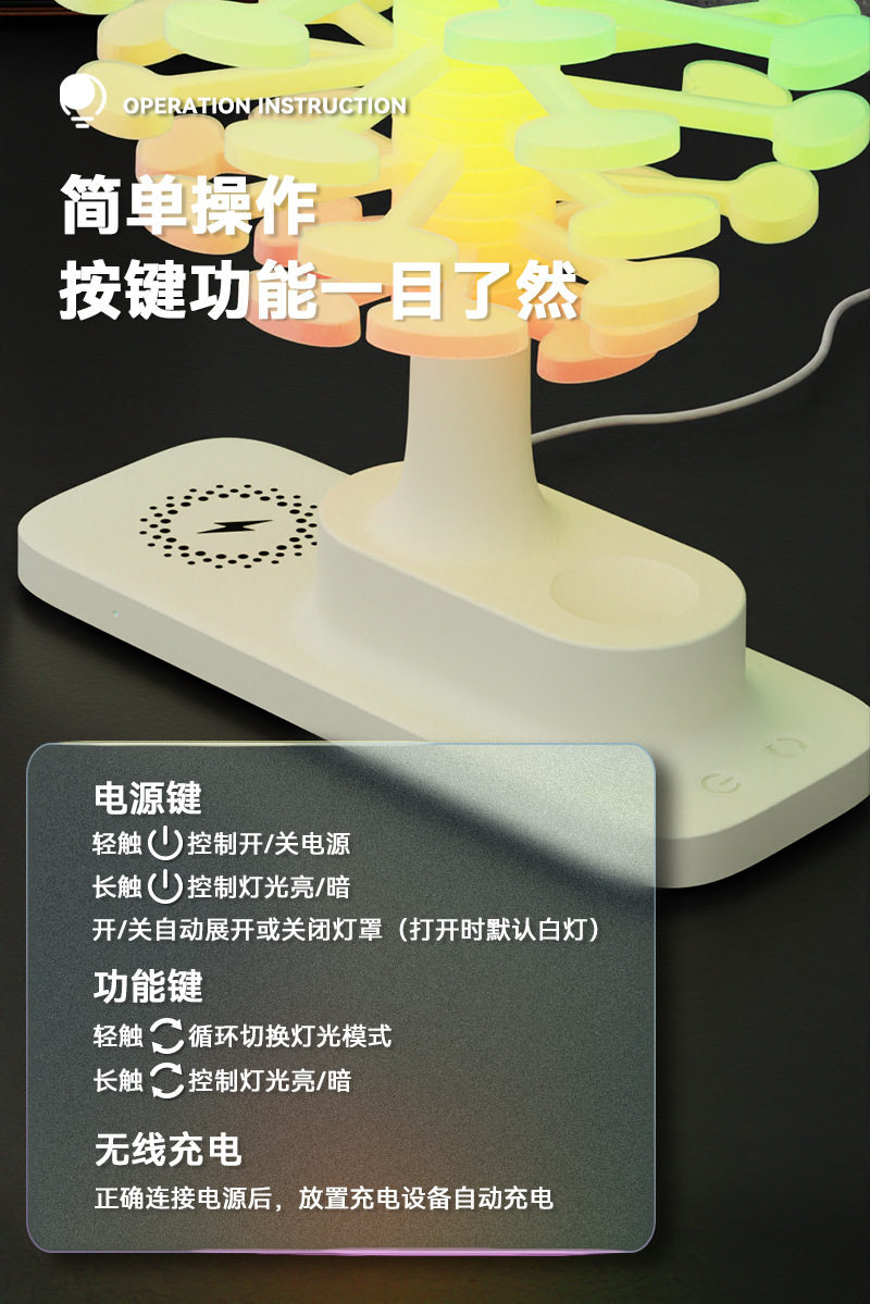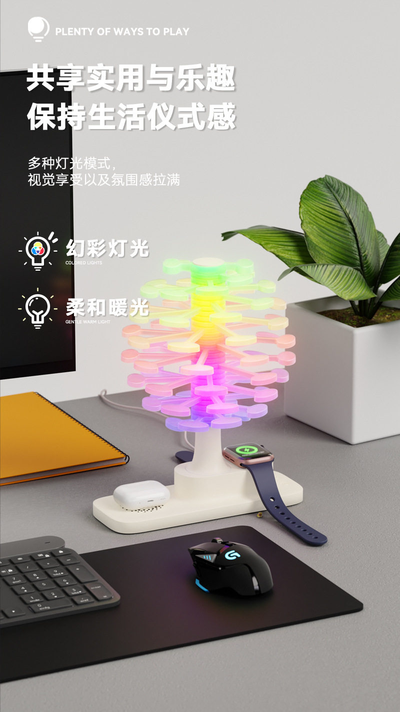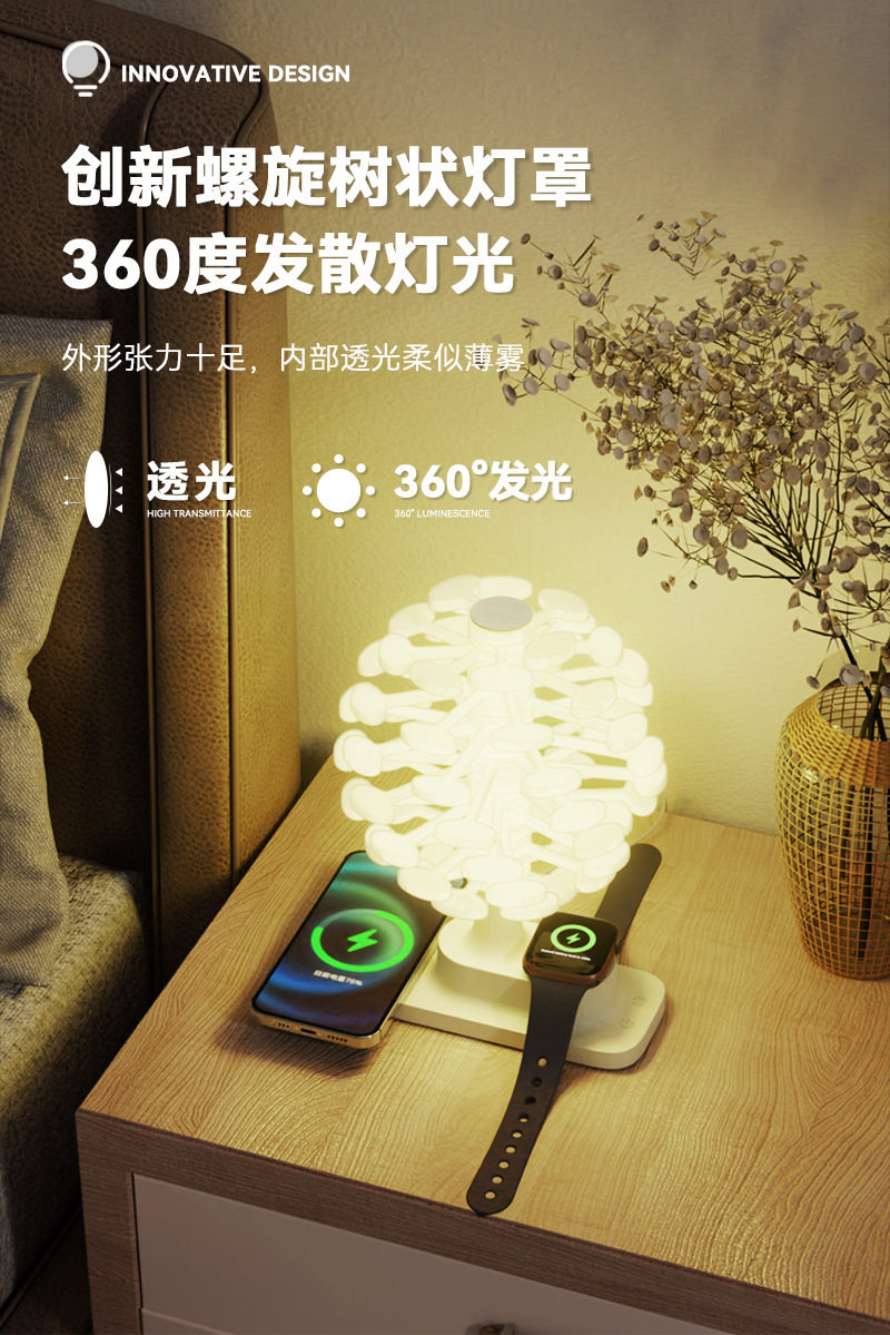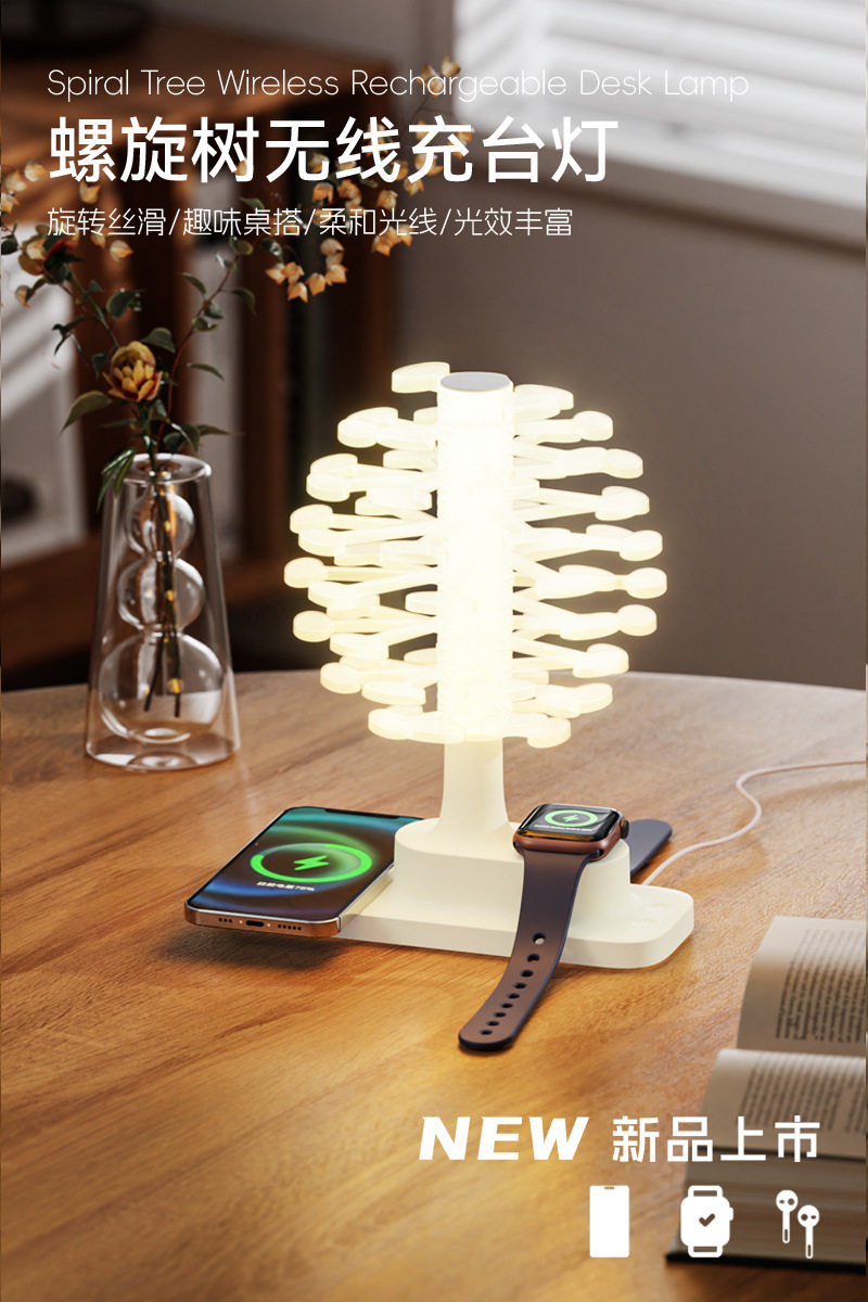 Touch Spiral Tree Colorful Night Light Wireless Charging Table Lamp Bedroom Bedside Lamp Creative Atmosphere Lamp Birthday Gift
