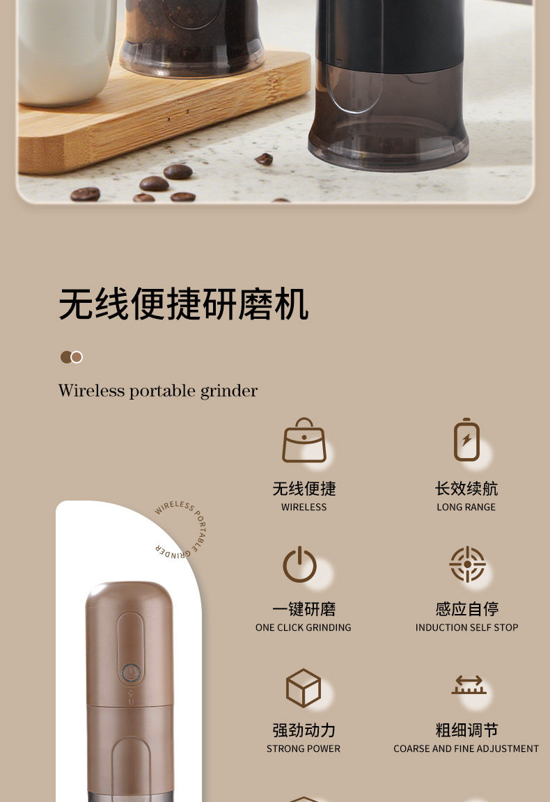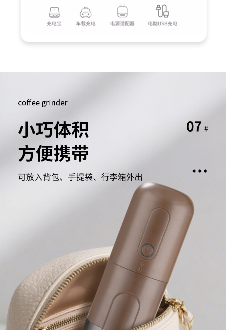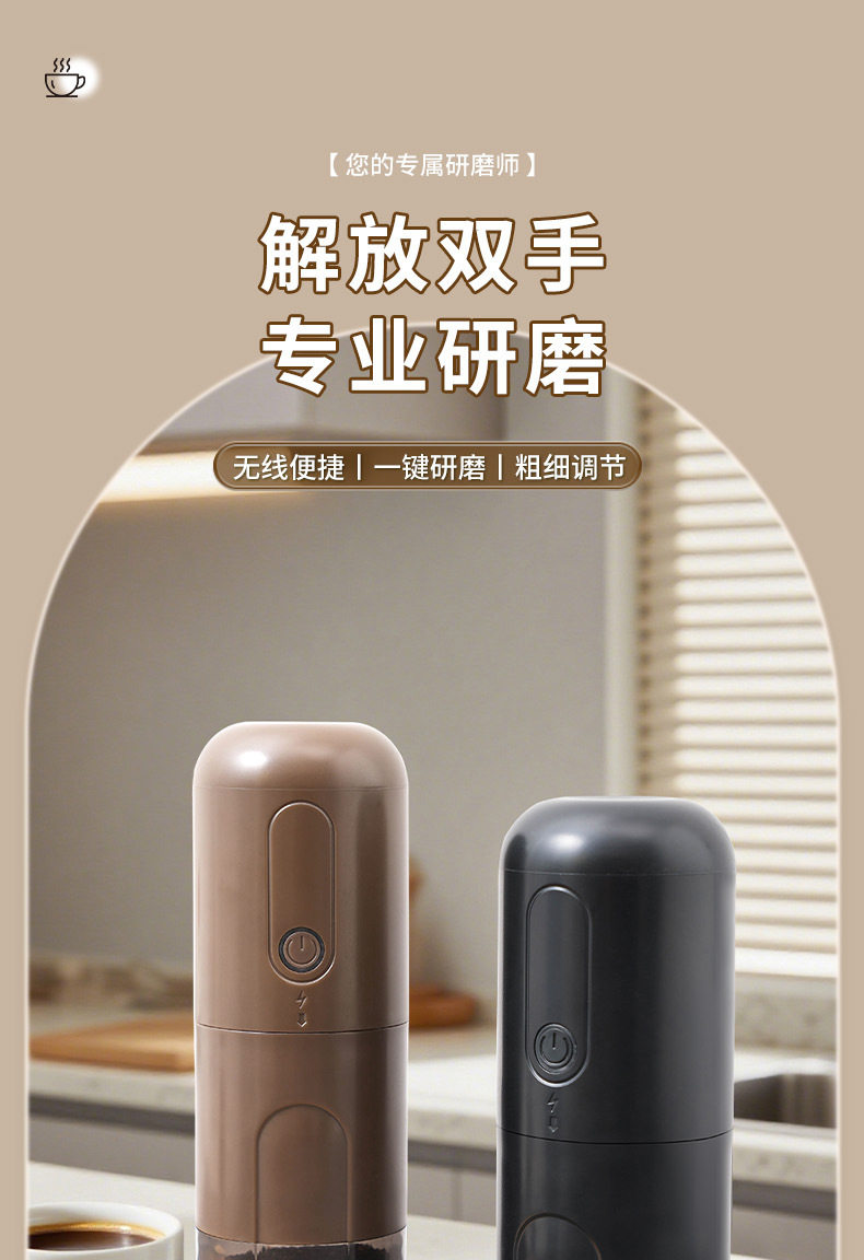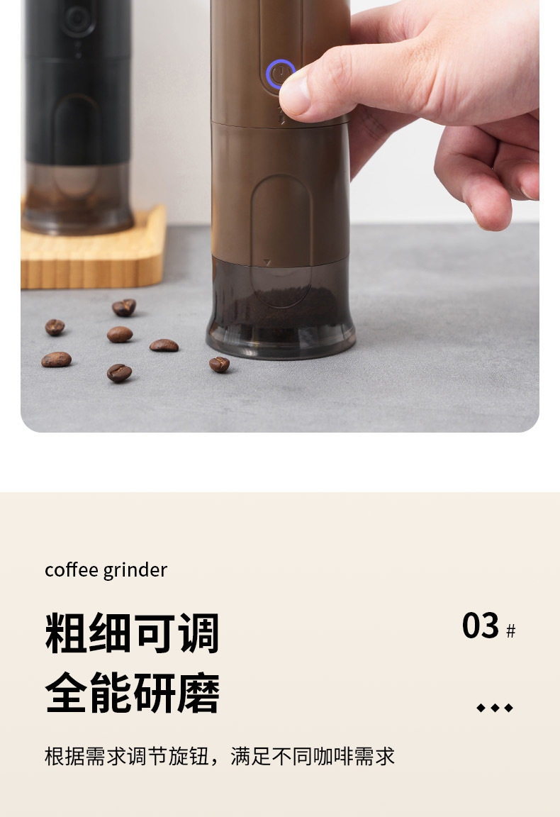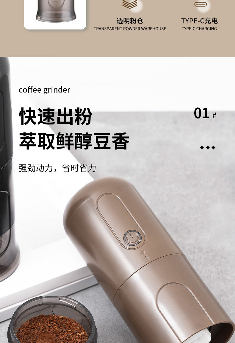 Italian Small Household Portable Automatic Bean Grinder Electric Coffee Grinder Adjustable Thickness Rechargeable Bean Grinder