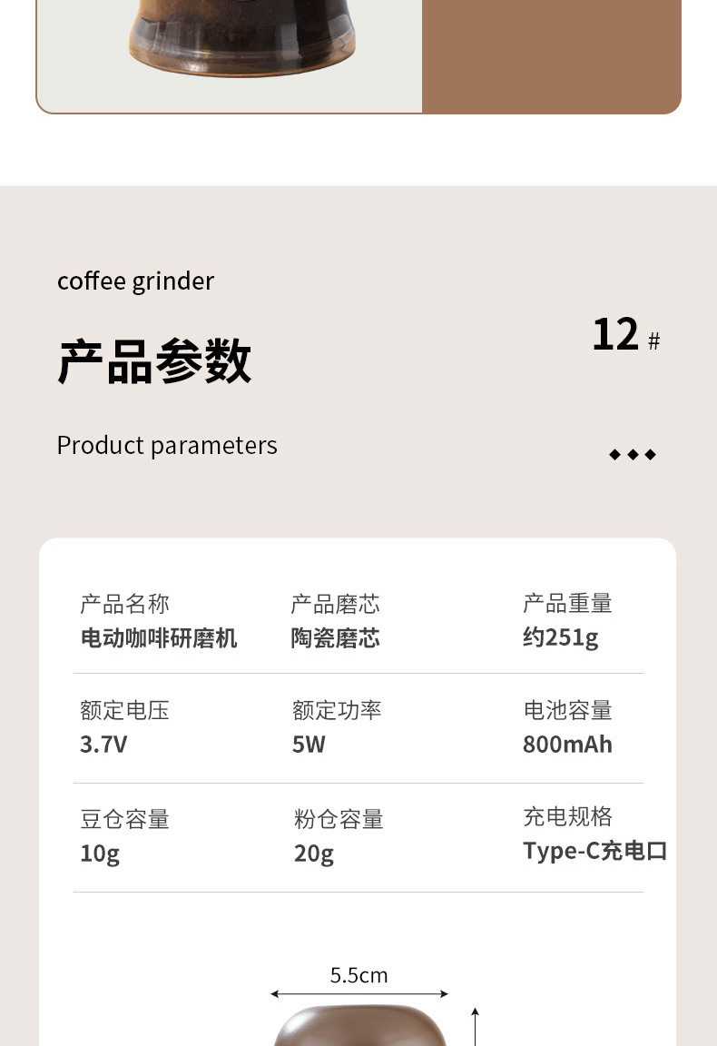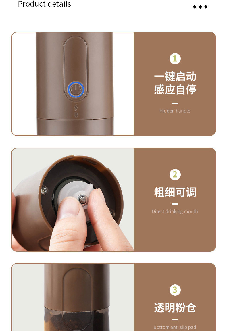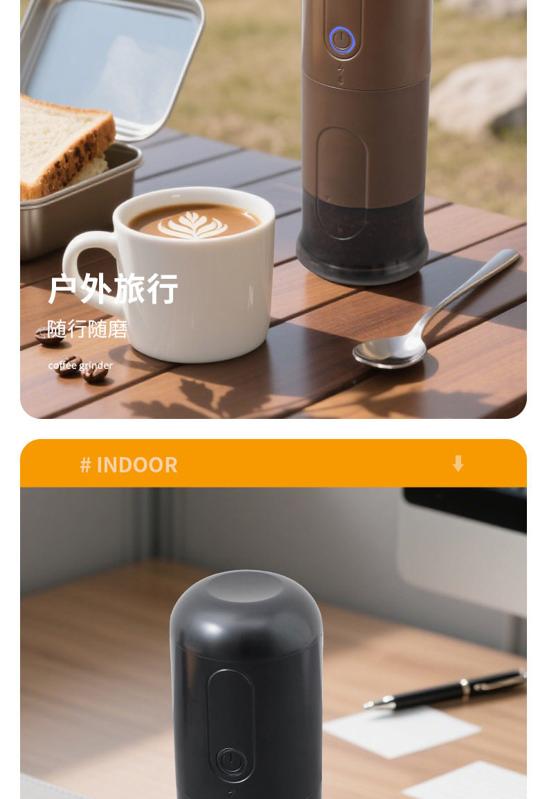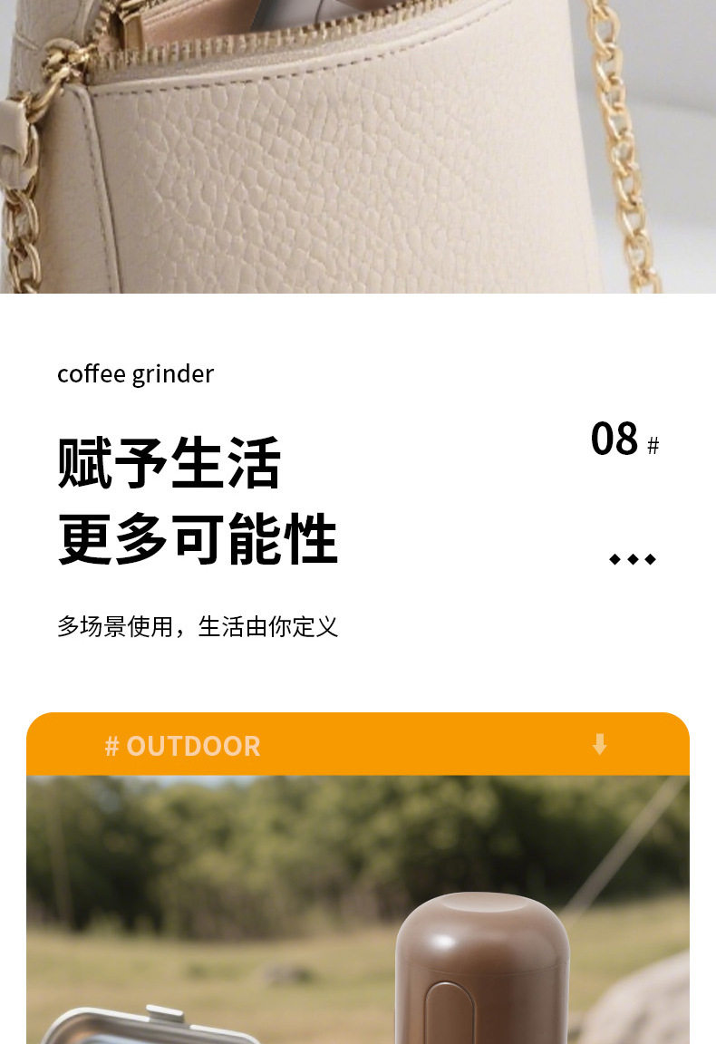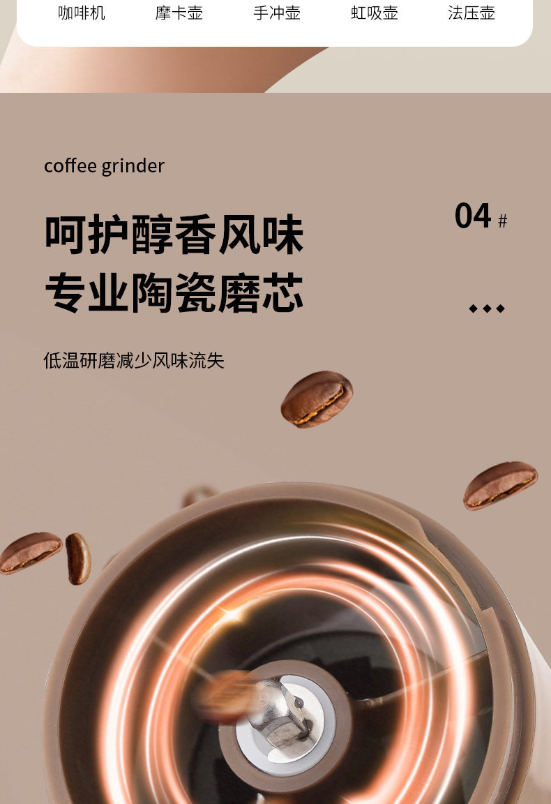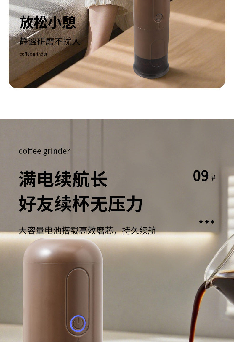 Italian Small Household Portable Automatic Bean Grinder Electric Coffee Grinder Adjustable Thickness Rechargeable Bean Grinder