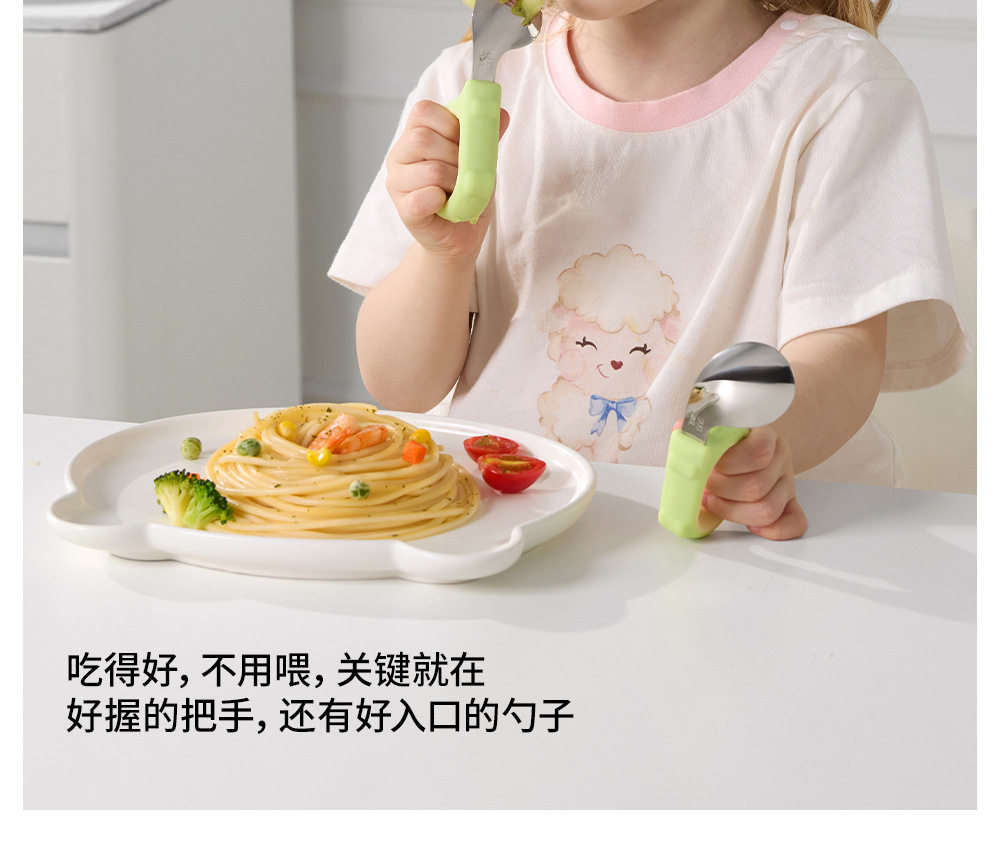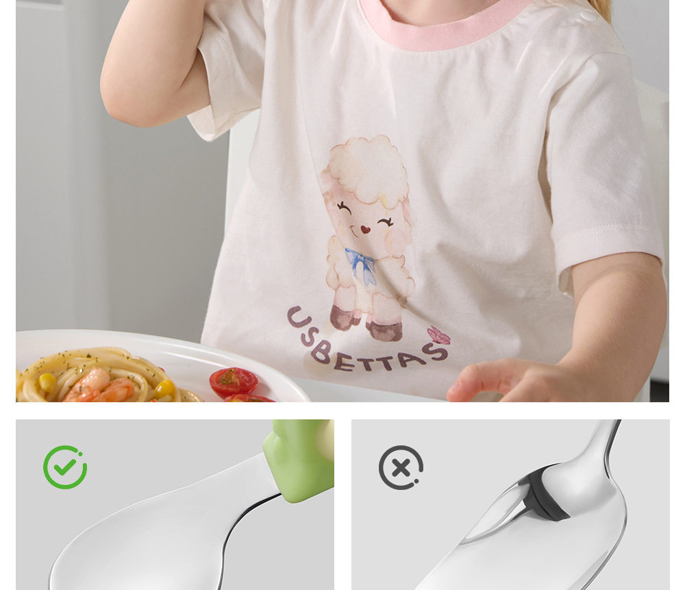 Betis Baby Spoon Stainless Steel Baby Learning to Eat Training Independent Eating Fork Food Supplement Kidsren's Special Short Handle