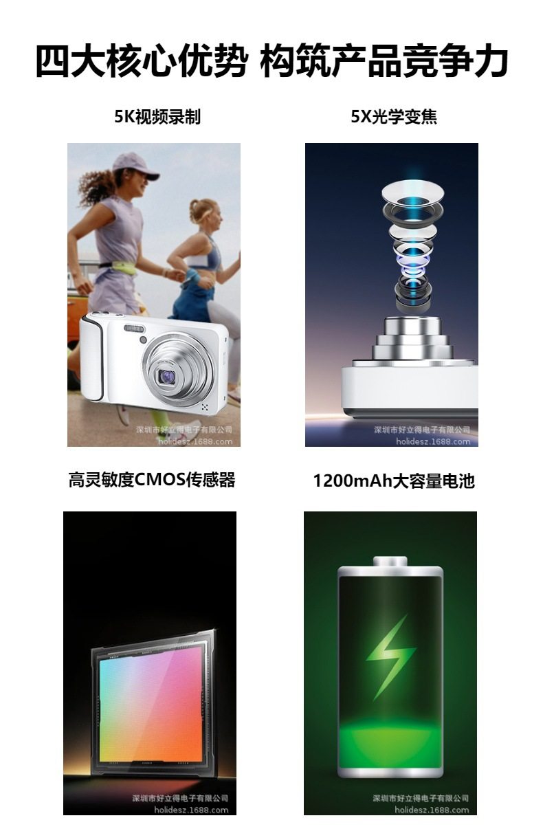 [Cross-Border Hot Model] 5K High-Definition Digital Camera 5X Optical Zoom Portable Camera for Students