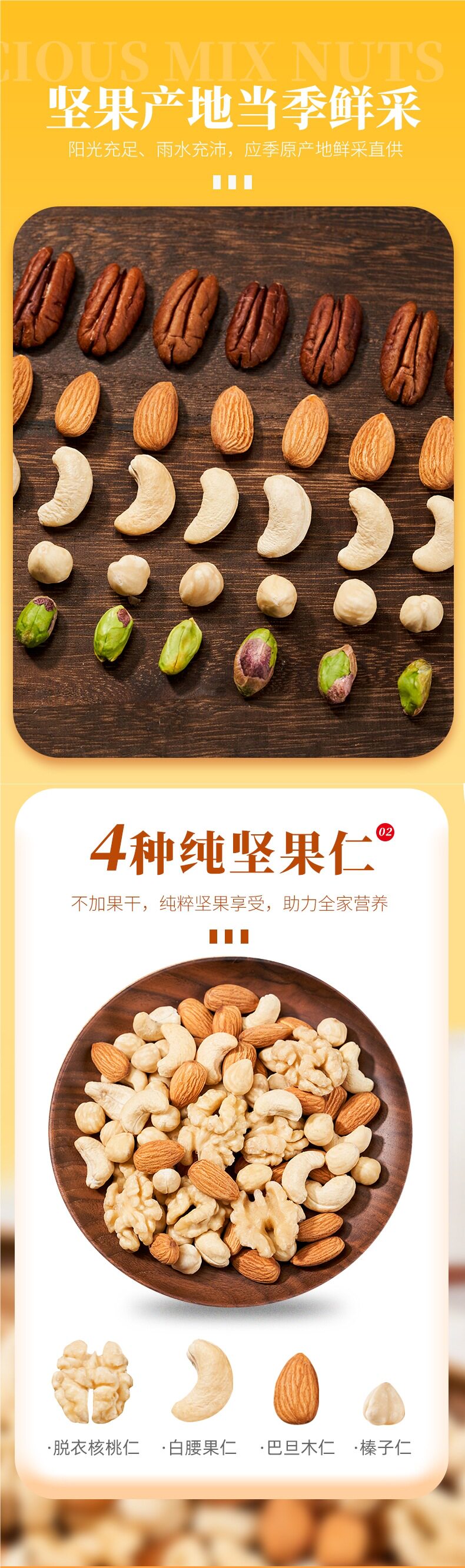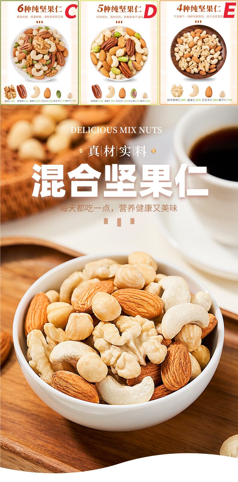 | Packaging specifications | [type c] 6 kinds of pure nuts 250g*1 bag (early taste pack),[type c] 6 kinds of pure nuts 250g*2 bags (high cost performance),[type c] 6 kinds of pure nuts 250g*4 bags (for sharing with the whole family),[type e] 4 kinds of pure nuts 250g*1 bag (low temperature baking),[type e] 4 kinds of pure nuts 250g*2 bags (recommended by the shopkeeper),[type e] 4 kinds of pure nuts 250g*4 bags (original flavor),[type d] 5 kinds of pure nuts 250g*1 bag (proportion),[type d] 5 kinds of pure nuts 250g*2 bags (pure fruity aroma),[type d] 5 kinds of pure nuts 250g*4 bags (high quality pure nuts) |