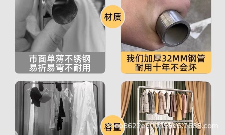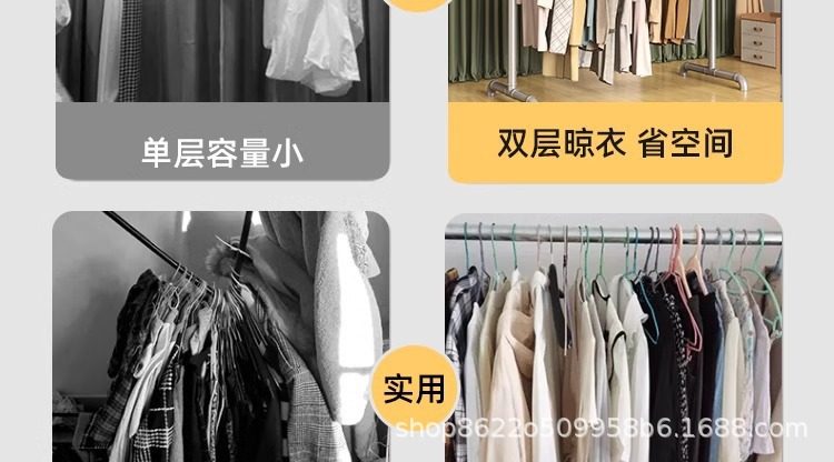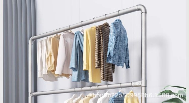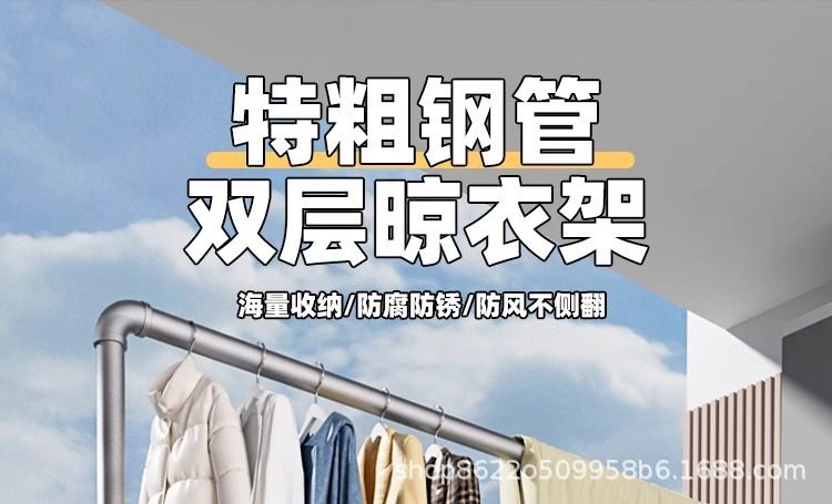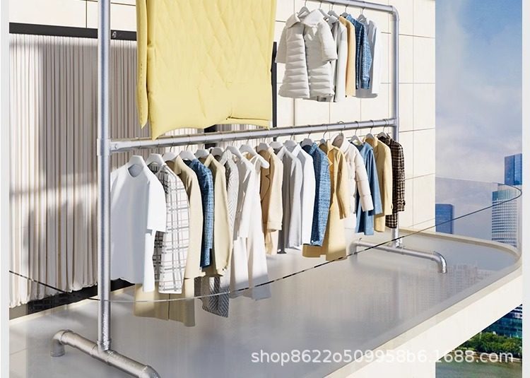 ♔ Double-Layer Steel Pipe Clothes Drying Rack, Hanging Rack with Upper and Lower Poles, Floor-Standing Rack for Indoor Balcony, Extra Thick for Clothing Display