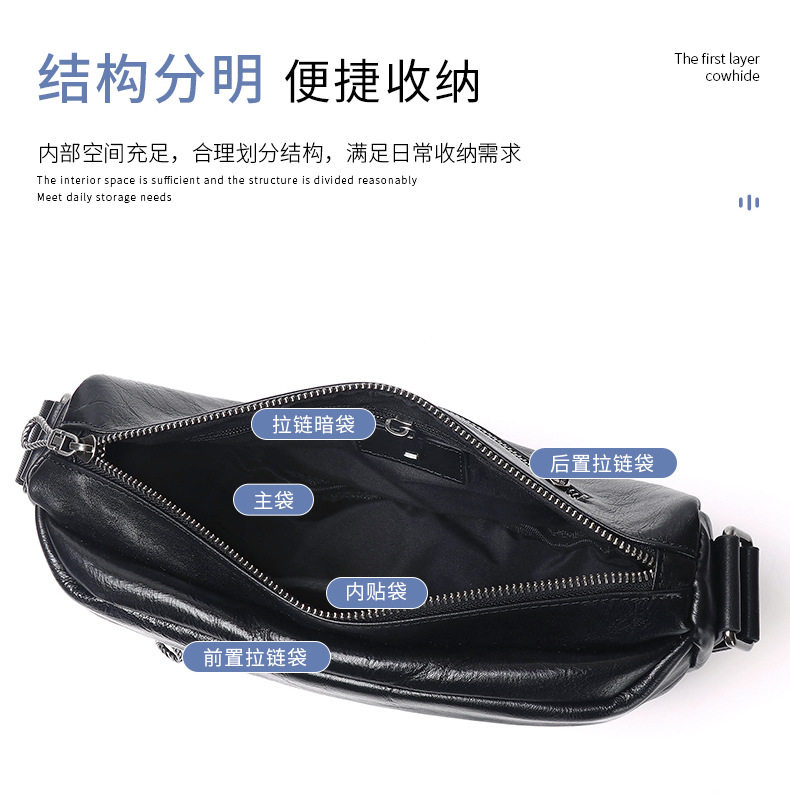 2025 New Autumn and Winter Men's Outing Portable Bag Genuine Leather Commuter Chest Bag Men's Vegetable Tanned Cowhide Crossbody Bag Men's