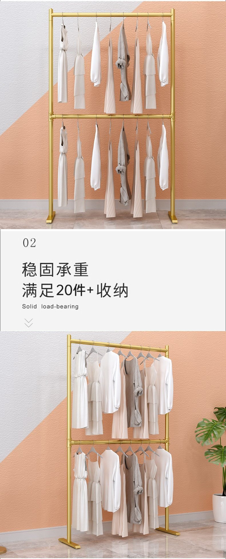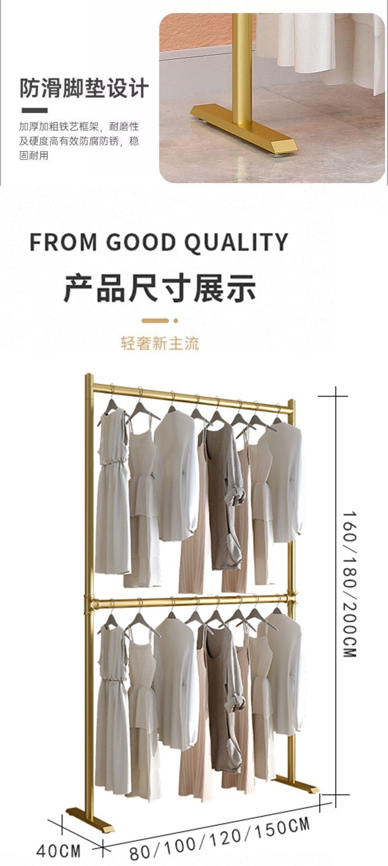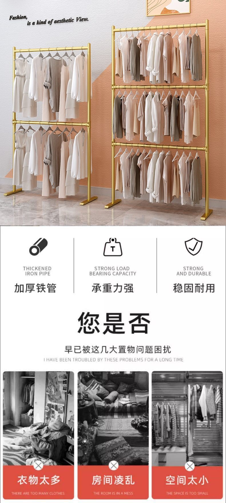 Simple Double-Layer Clothing Store Floor-Standing Clothes Rack Iron Double-Pole Folding Clothes Hanging Rod Floor-Standing Adjustable Balcony Clothes Drying Rack