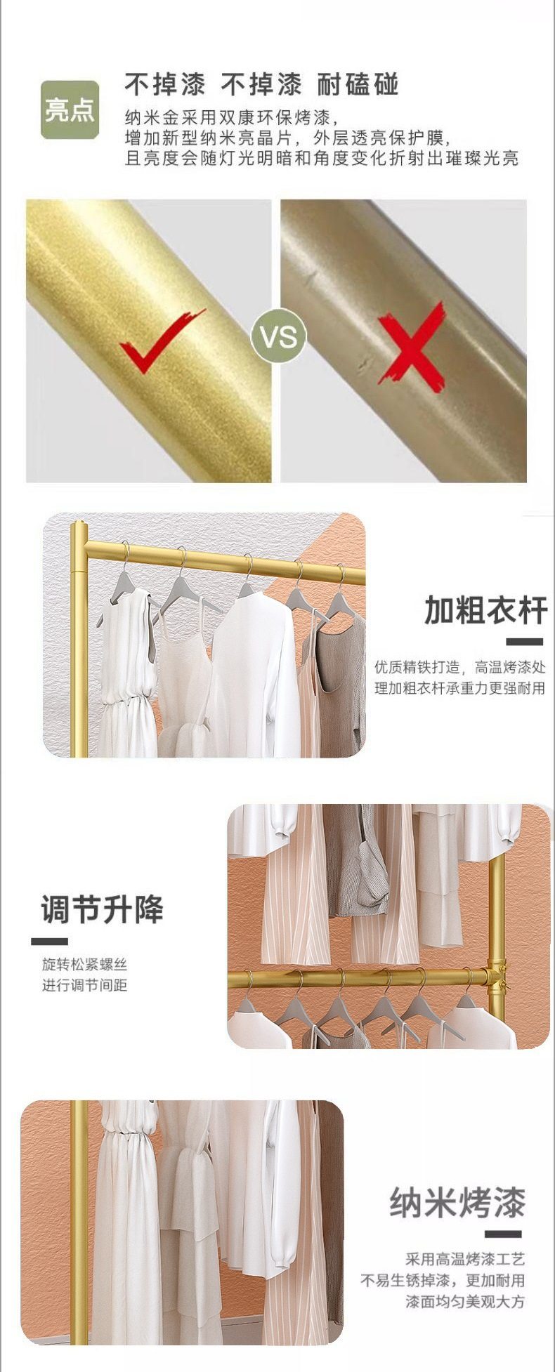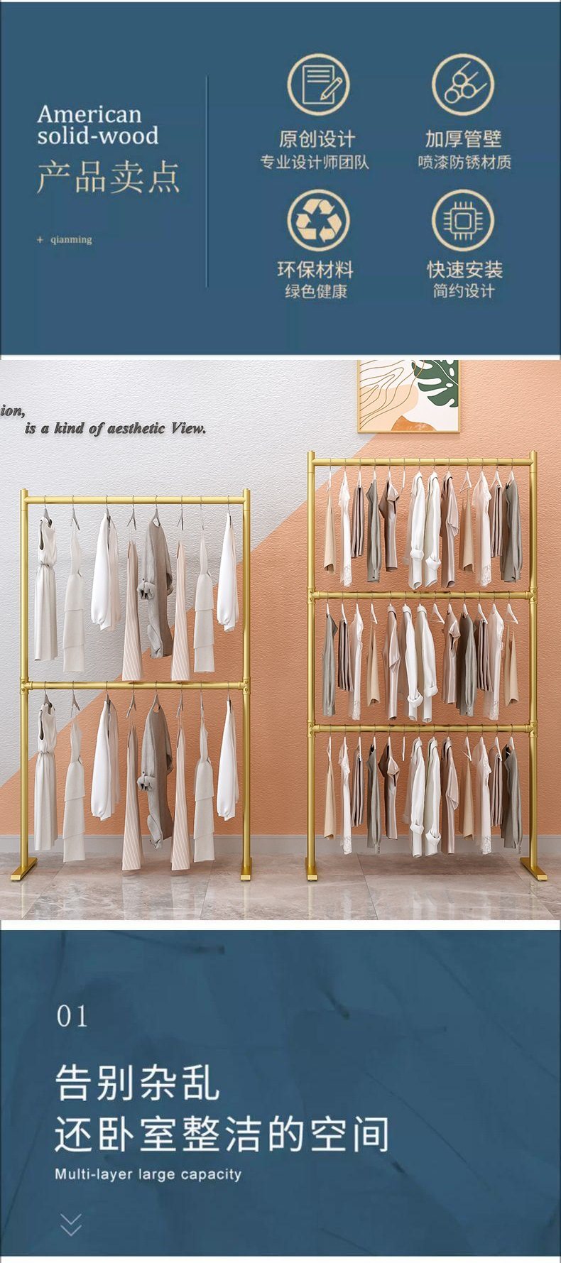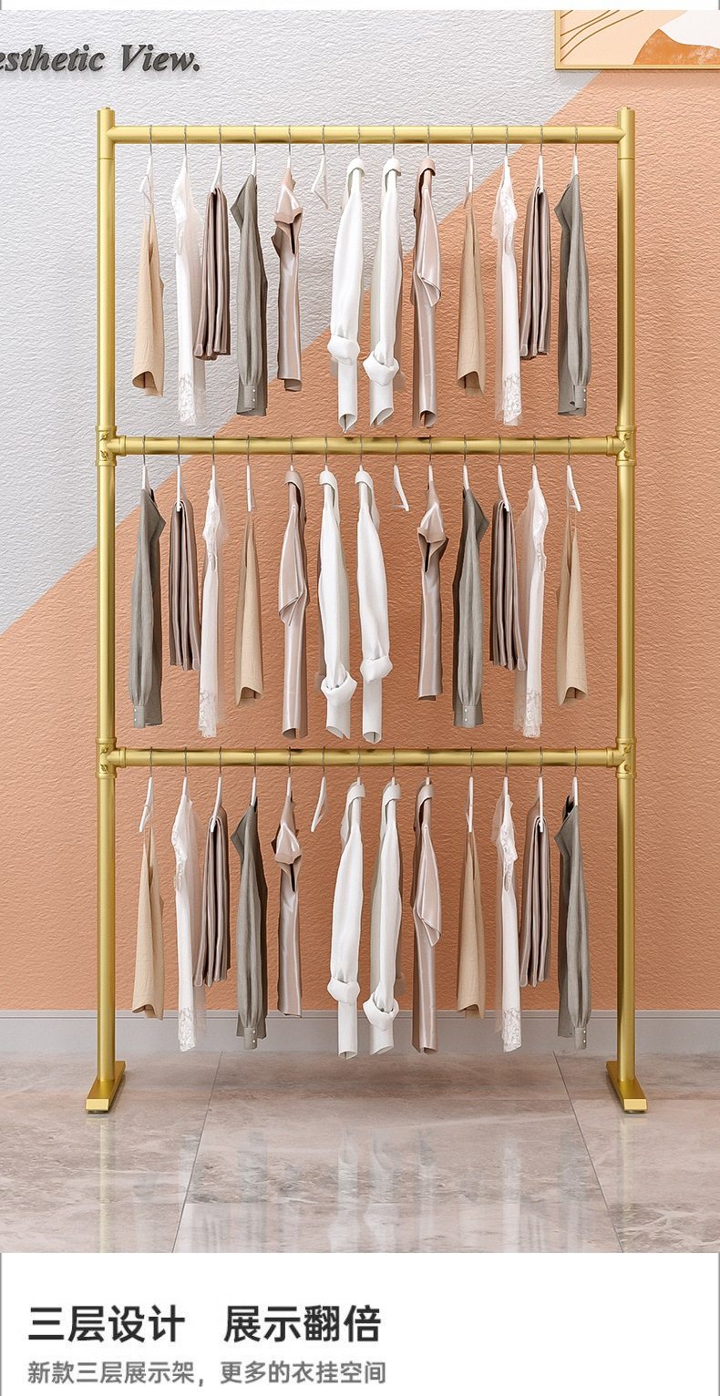 Simple Double-Layer Clothing Store Floor-Standing Clothes Rack Iron Double-Pole Folding Clothes Hanging Rod Floor-Standing Adjustable Balcony Clothes Drying Rack