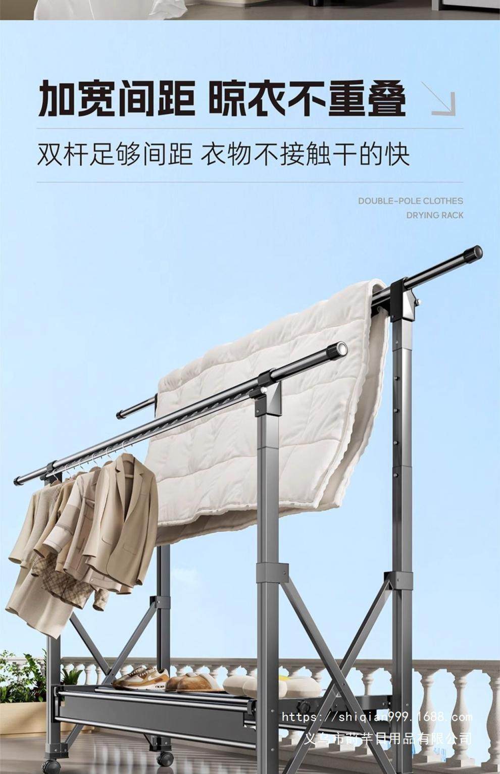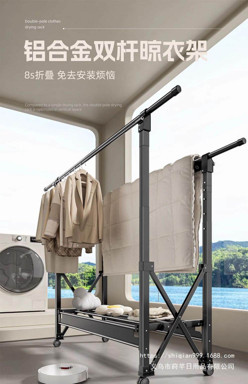 Floor-Standing Folding Clothes Drying Rack for Indoor Home Use, Balcony, Outdoor Bedroom, Quilt Drying, Adjustable Clothes Rack, Clothes Rod