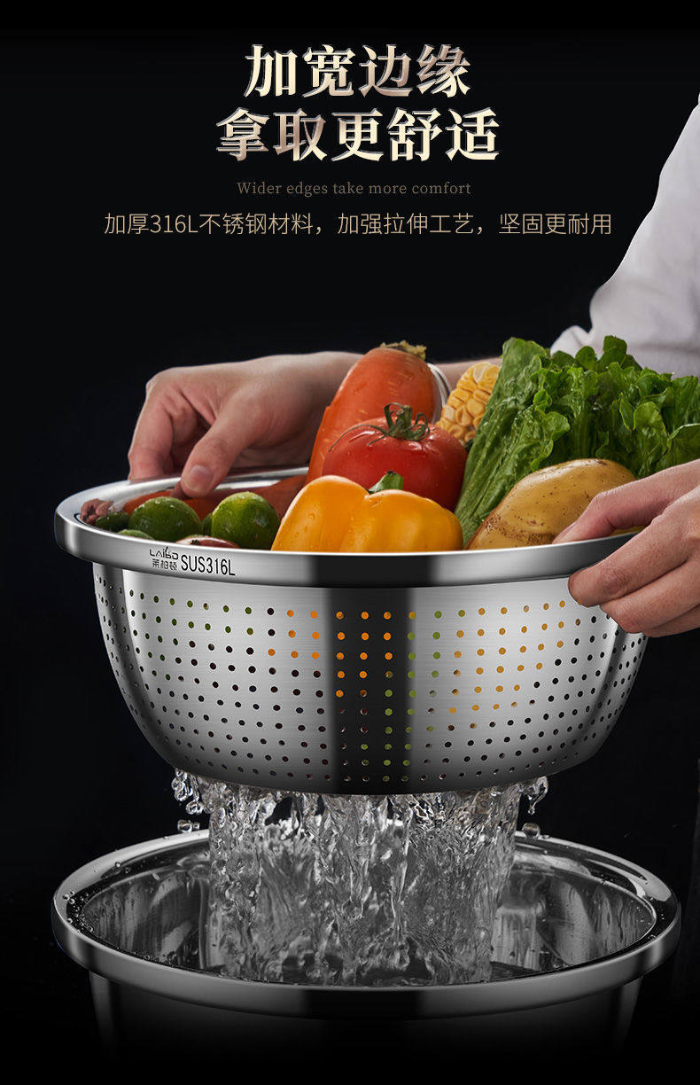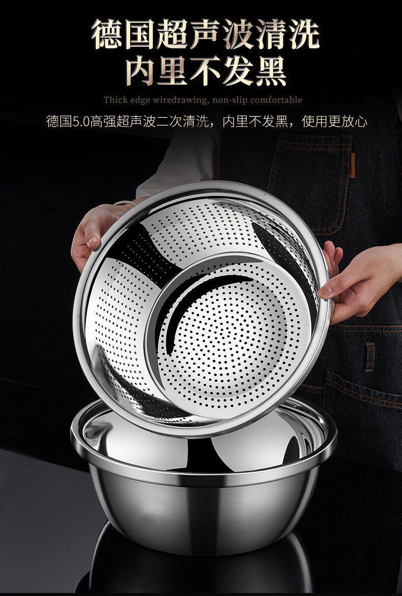 304 Stainless Steel Basin Vegetable Washing Basin Drain Basket Kitchen Household Rice Washing Drain Basket Water Basin Manufacturer Wholesale