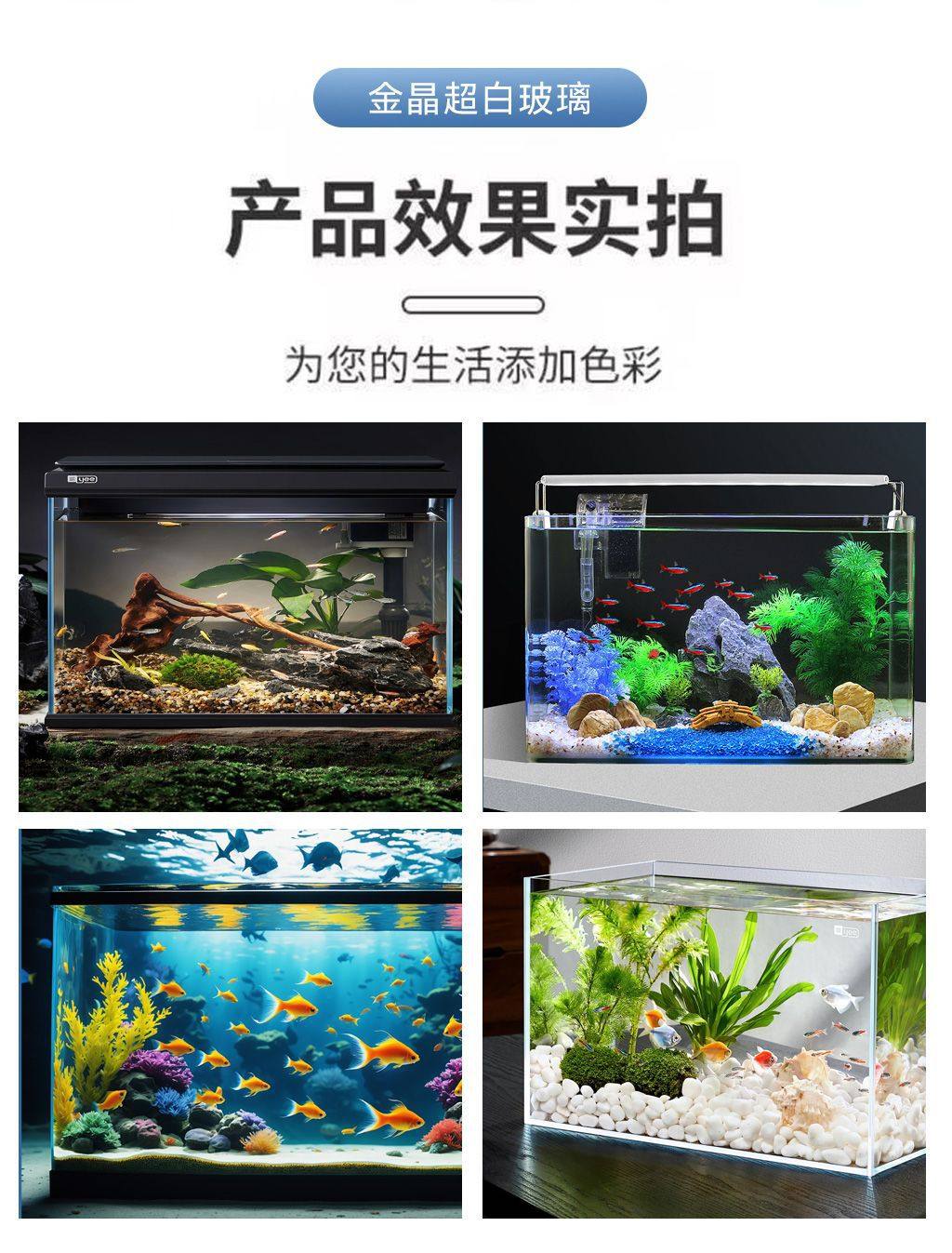 | Specifications | Ultra white fish tank + black fish tank mat + use wacker glue |