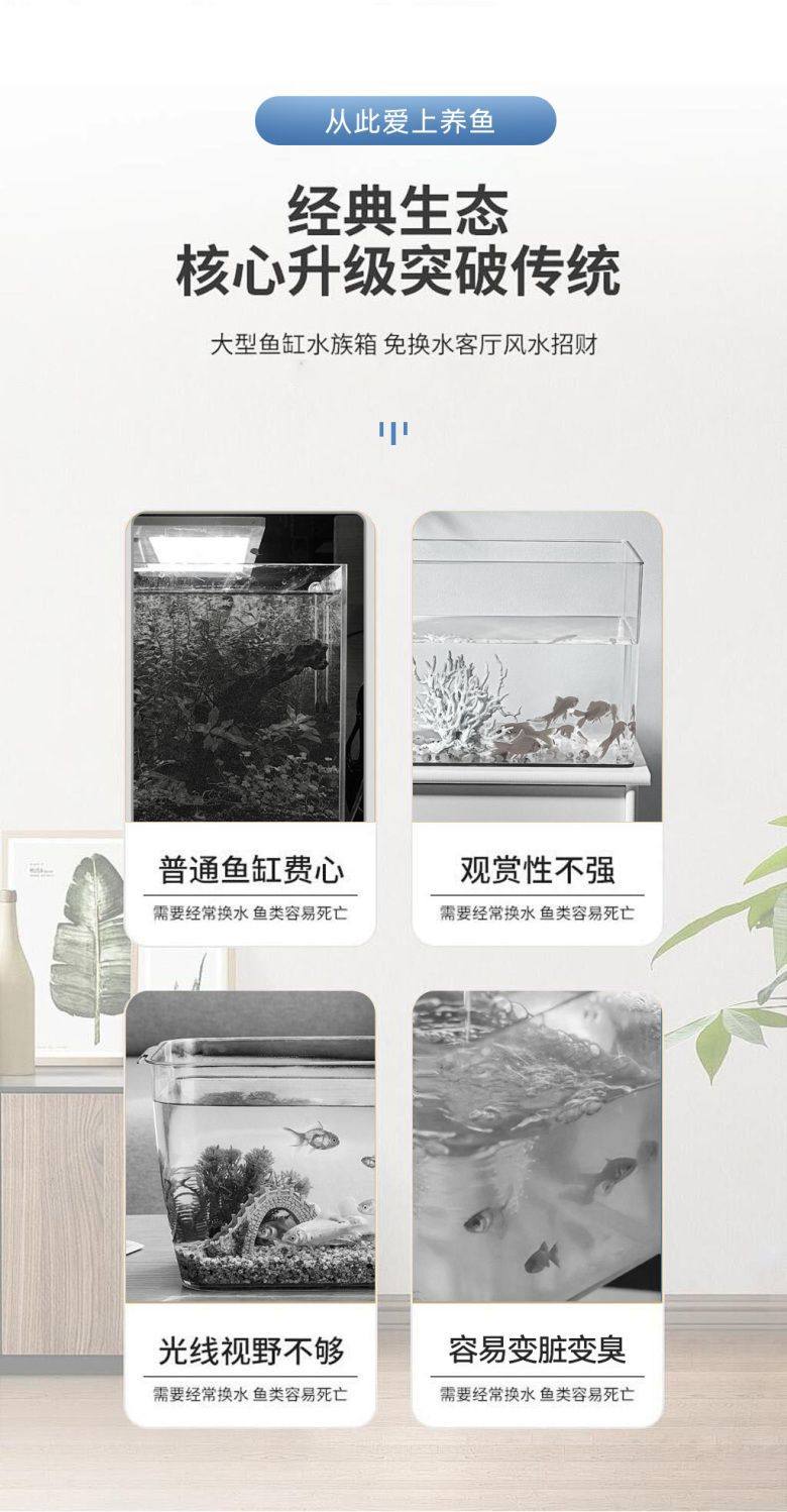 Ultra-Clear Glass Aquarium for Home Use, Available in Large, Medium, and Small Sizes, Suitable for Living Room, Long Fish Tank, Stream Tank, Aquatic Plant Landscaping, or Bare Tank