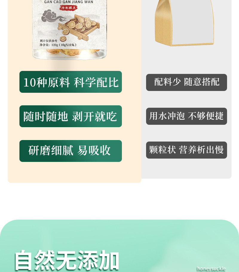 | Packaging specifications | [dried licorice and ginger pills] 1 can (10g*12 pieces) |