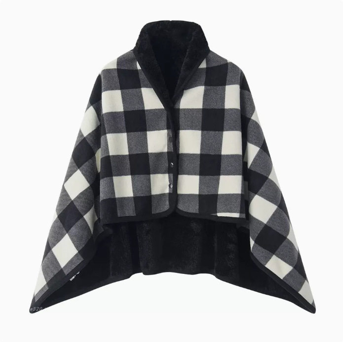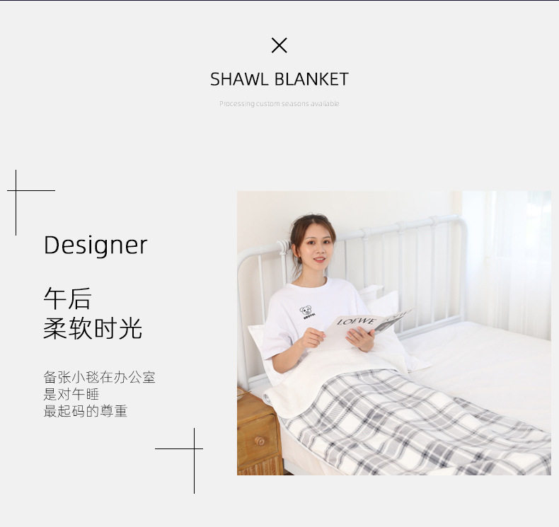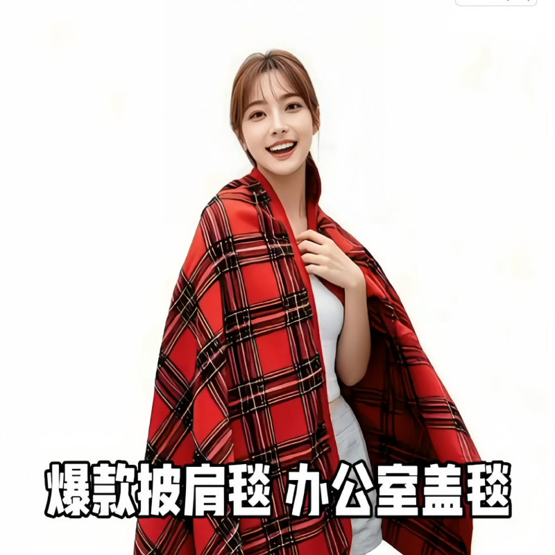 Wholesale In-Stock Christmas Cross-Border Trendy Women's Gray and White Checkered Shawl Blanket Double-Layer Thickened Warm Nap Blanket Cover Blanket
