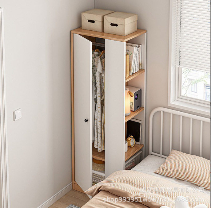 Small Room Wardrobe Bookshelf Integrated Rental Room Girl Single Wardrobe Bedside Corner Single Door Hanging Wardrobe Storage Cabinet