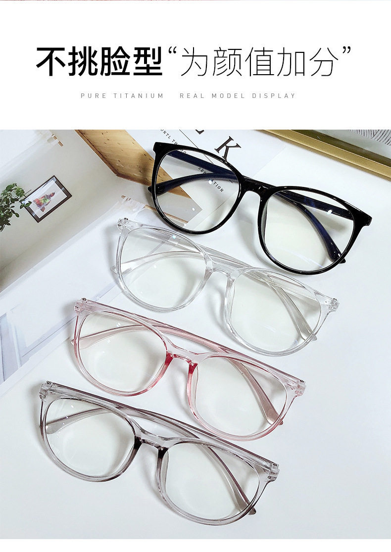 | Lens color | Bright black - anti-blue light without prescription,Transparent powder-anti-blue light without degree,Transparent white-anti-blue light without degree,Transparent gray-anti-blue light without degree |