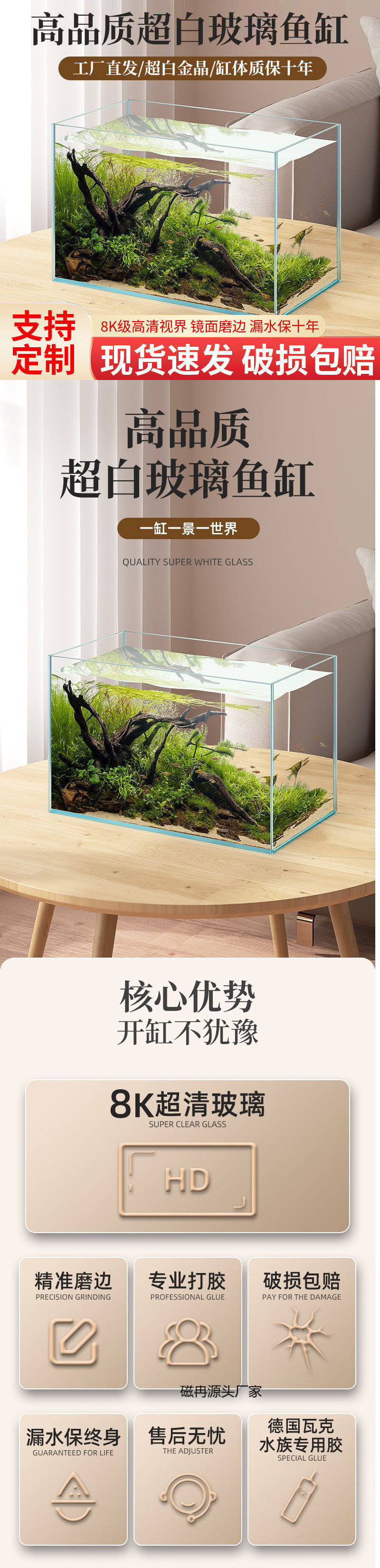 Ultra-Clear Glass Aquarium Rectangular Small to Medium-Sized Living Room Home Bare Tank Desktop Tank Turtle Tank Factory Direct