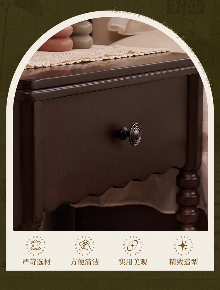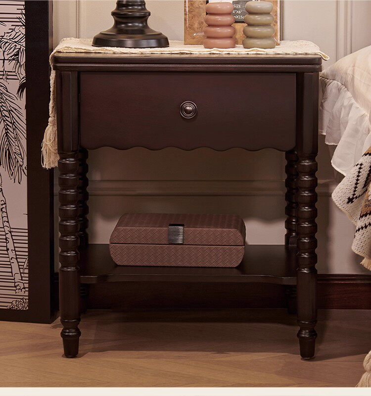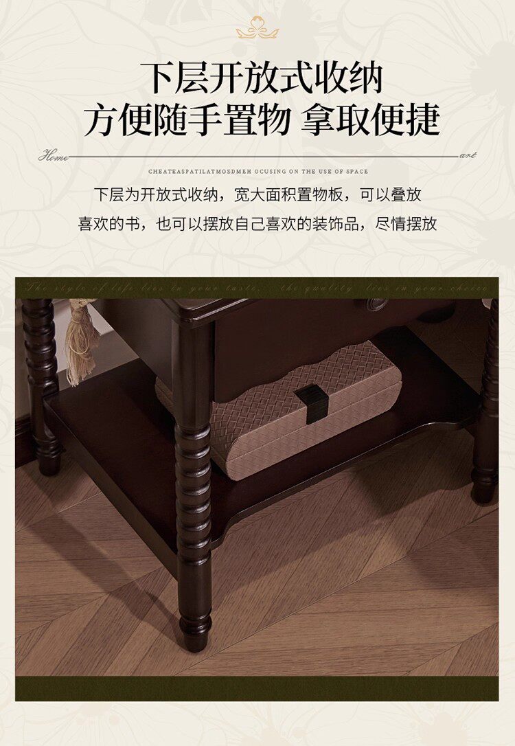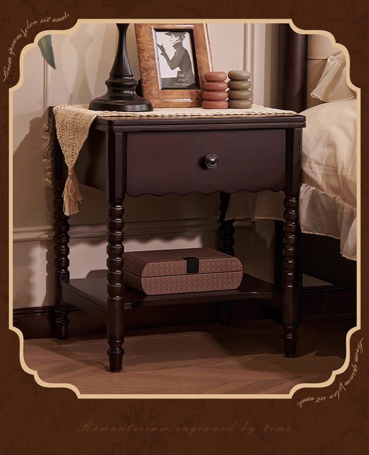 French Medieval Solid Wood Bedside Table Home Bedroom Storage Cabinet American Retro Storage Cabinet Bedside Cabinet