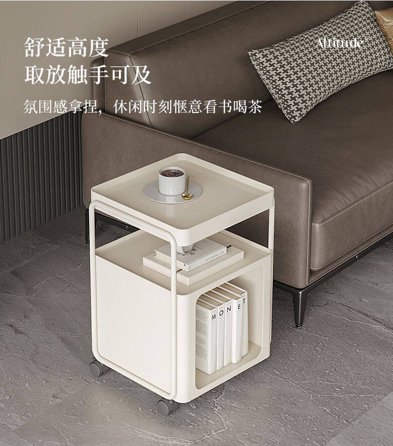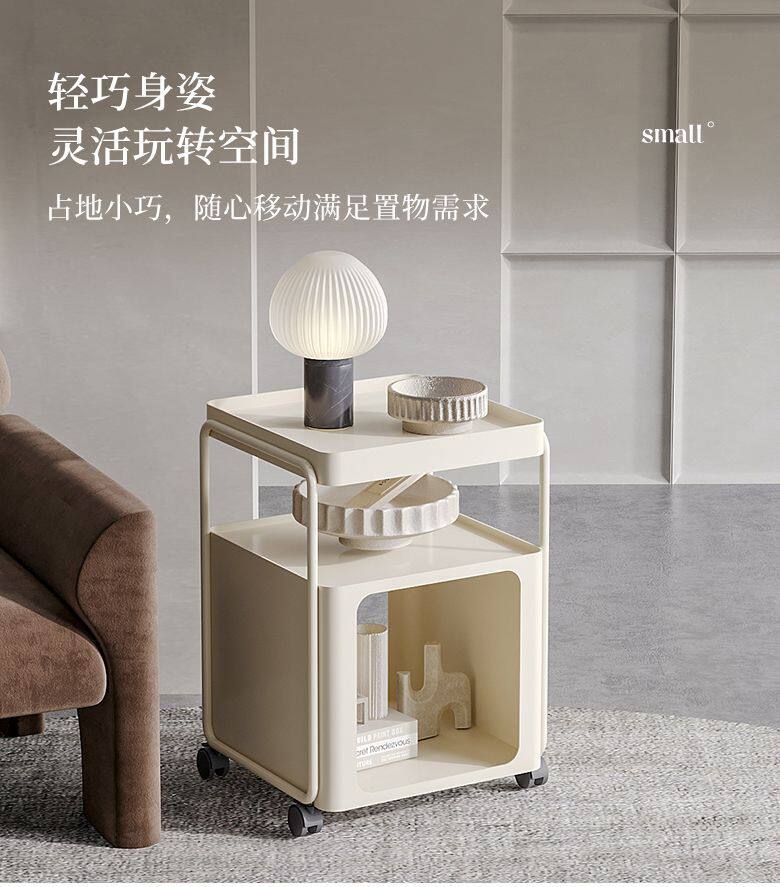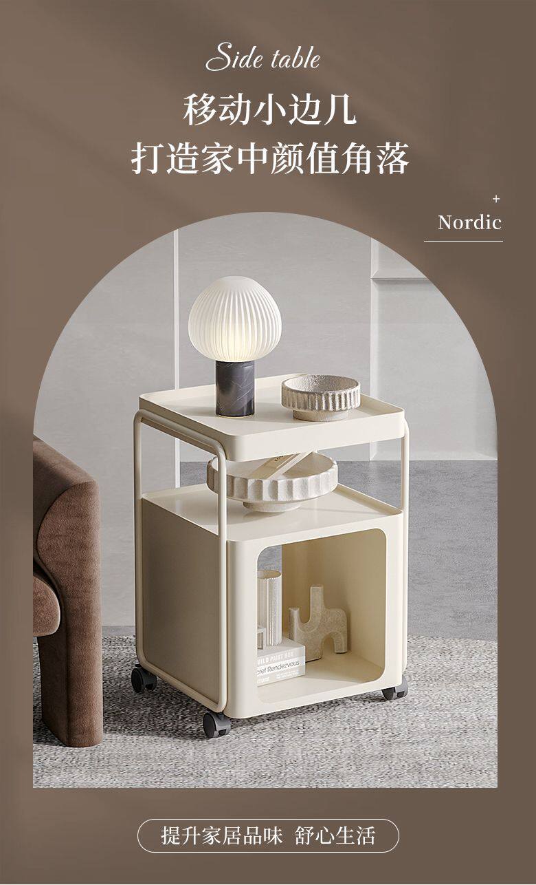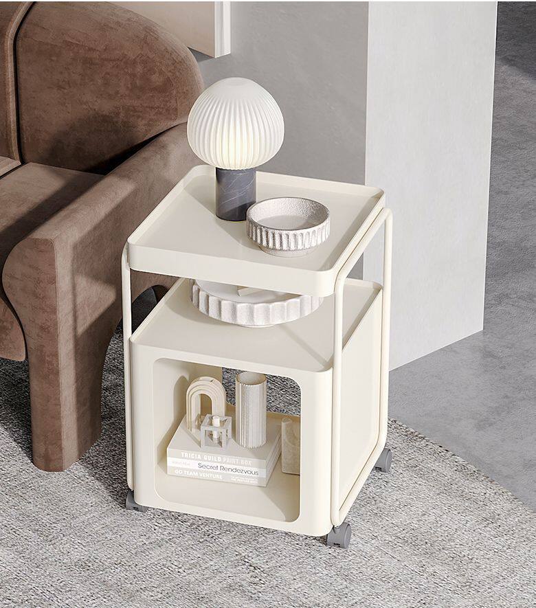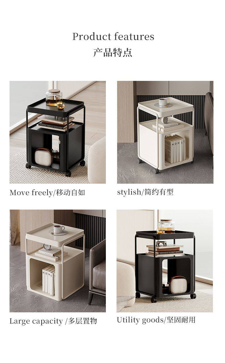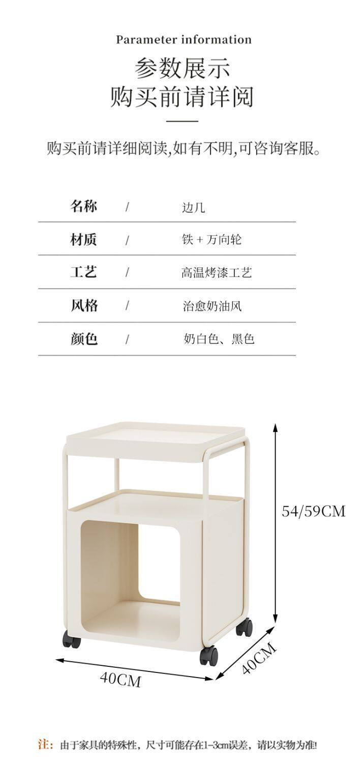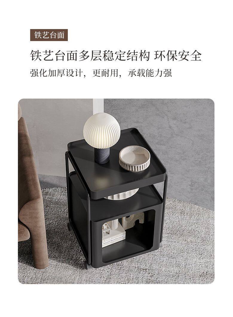 Simple Modern Movable Iron Bedside Table with Wheels Bedside Storage Rack Bedroom Bedside Cabinet Side Cabinet Small Side Table