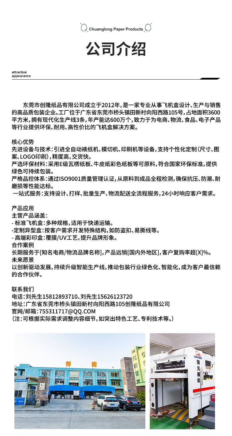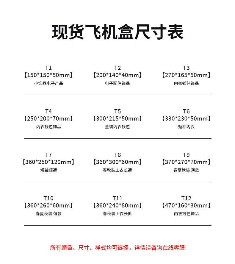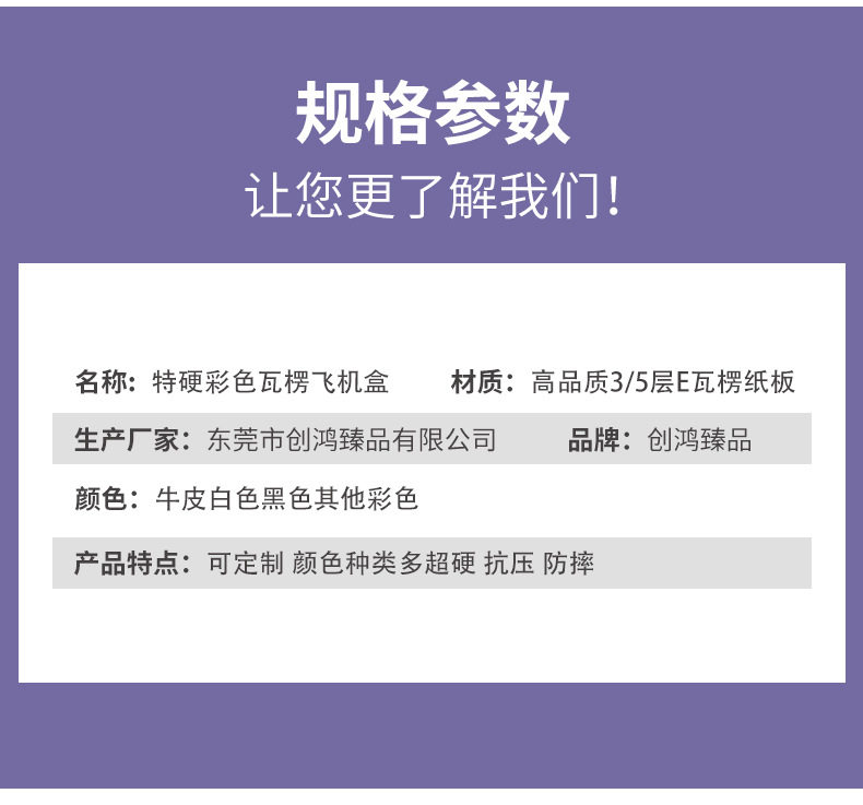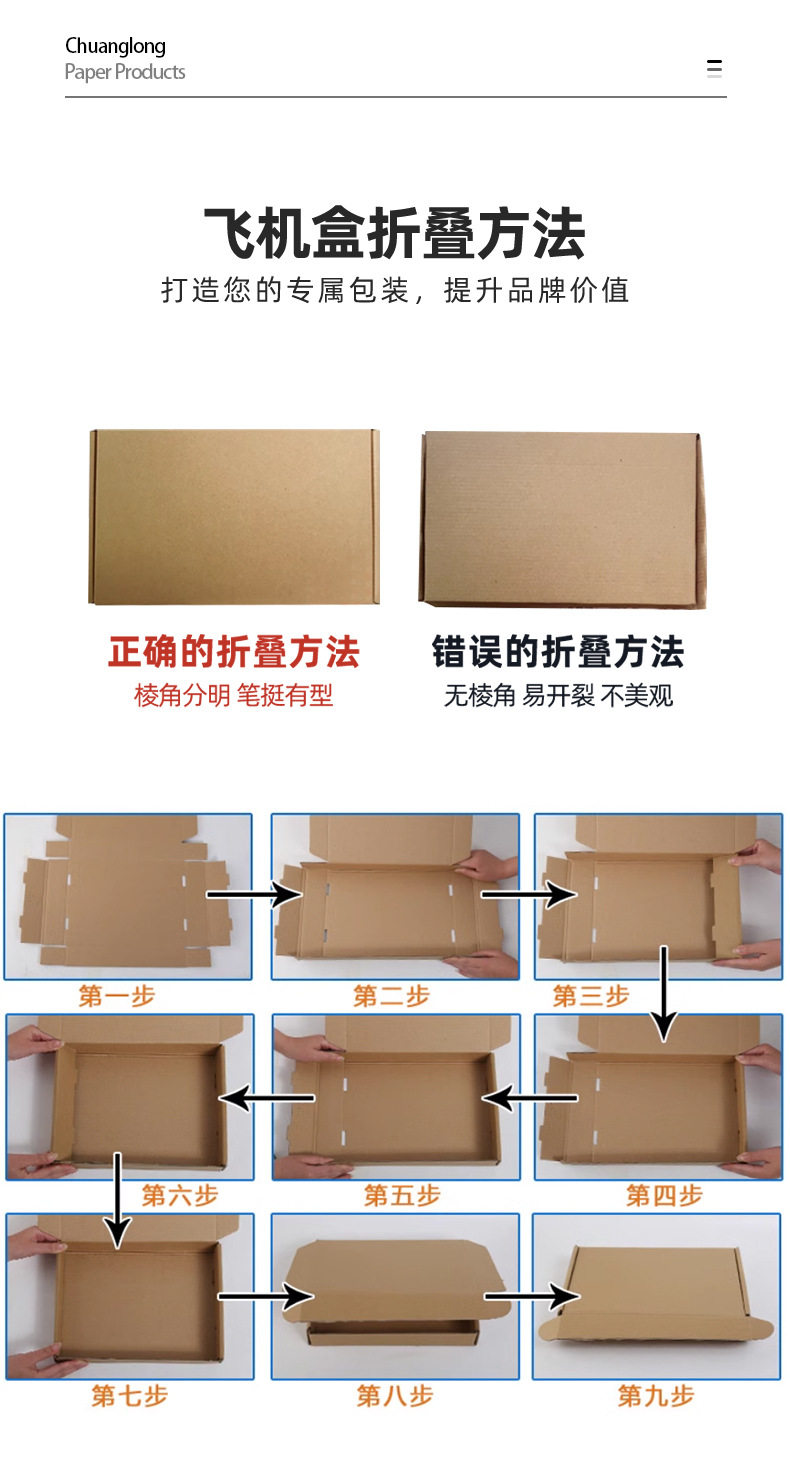 | Specifications and models | T1 [150*150*50mm]; extra hard; kraft paper airplane box,T2 [200*140*40mm]; extra hard; kraft paper airplane box,T3 [270*165*50mm]; extra hard; kraft paper airplane box,T4【250*200*70mm】; extra hard; kraft paper airplane box,T5【300*215*50mm】; extra hard; kraft paper airplane box,T6【330*230*50mm】; extra hard; kraft paper airplane box,T7【360*250*120mm】; extra hard; kraft paper airplane box,T8【360*300*60mm】; extra hard; kraft paper airplane box,T9【370*270*70mm】; extra hard; kraft paper airplane box,T10【360*260*60mm】; extra hard; kraft paper airplane box,T11【360*240*80mm】; extra hard; kraft paper airplane box,T12【470*160*30mm】; extra hard; kraft paper airplane box,Other sizes; extra hard; brown packing paper airplane box |