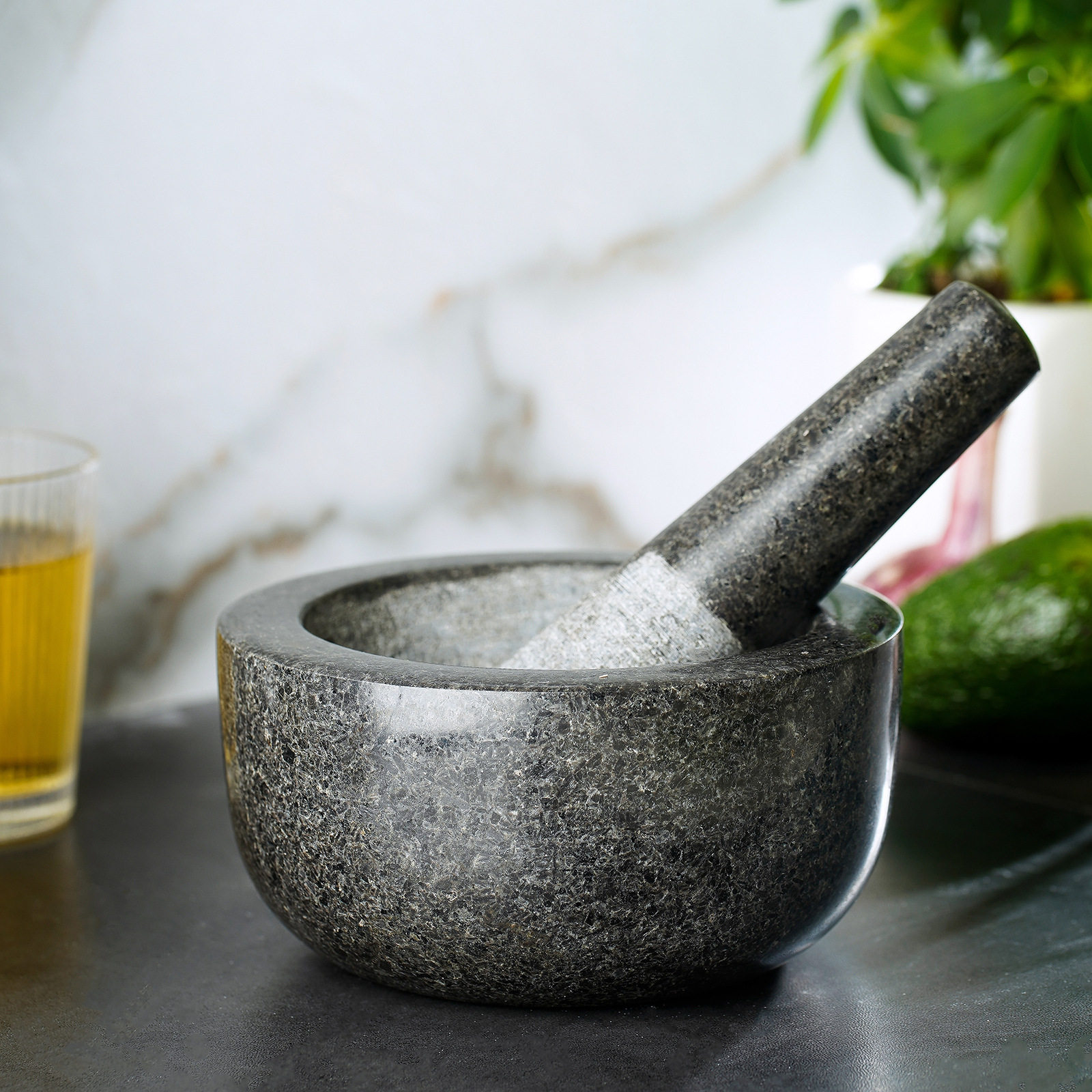 Medium-Sized Granite Mortar Household Garlic Mortar Garlic Crusher Spice Grinder Food Garlic Masher