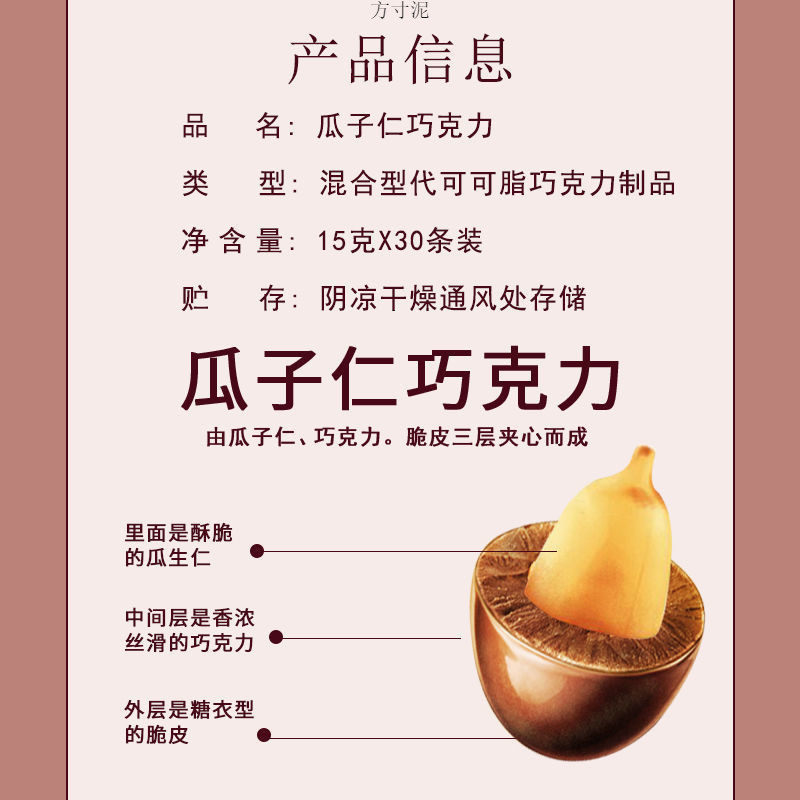 | Packaging specifications | Auspicious fruit seeds and chocolate [5 pieces],Auspicious fruit seeds and chocolate [15 pieces],Auspicious fruit and melon seed chocolate [20 pieces],Auspicious fruit seed kernel chocolate [1 box of 30 pieces],Auspicious fruit seed kernel chocolate [2 boxes of 60 pieces],Auspicious fruit and melon seed chocolate [3 boxes of 90 pieces],Auspicious fruit and melon seed chocolate [10 pieces] |
