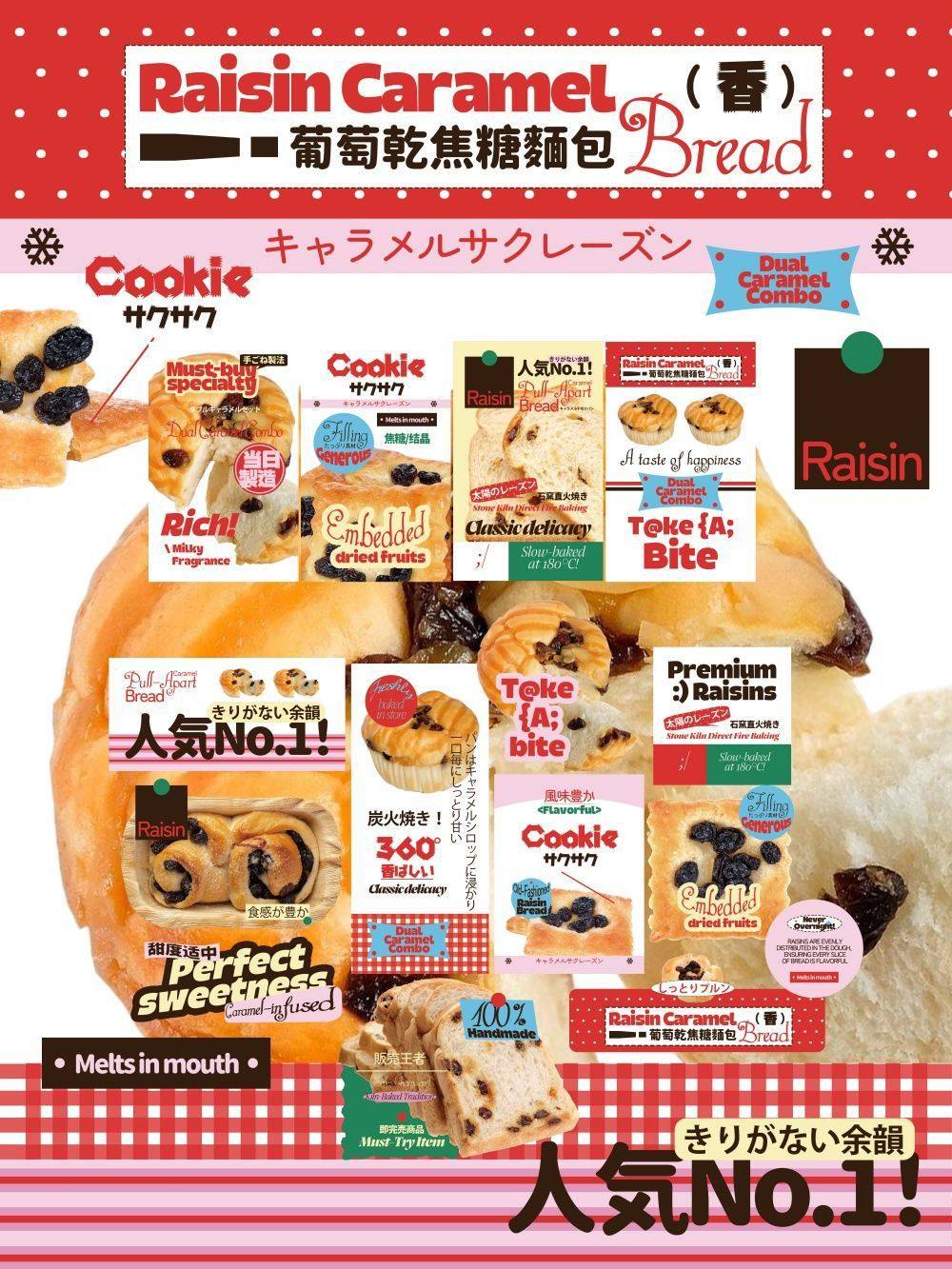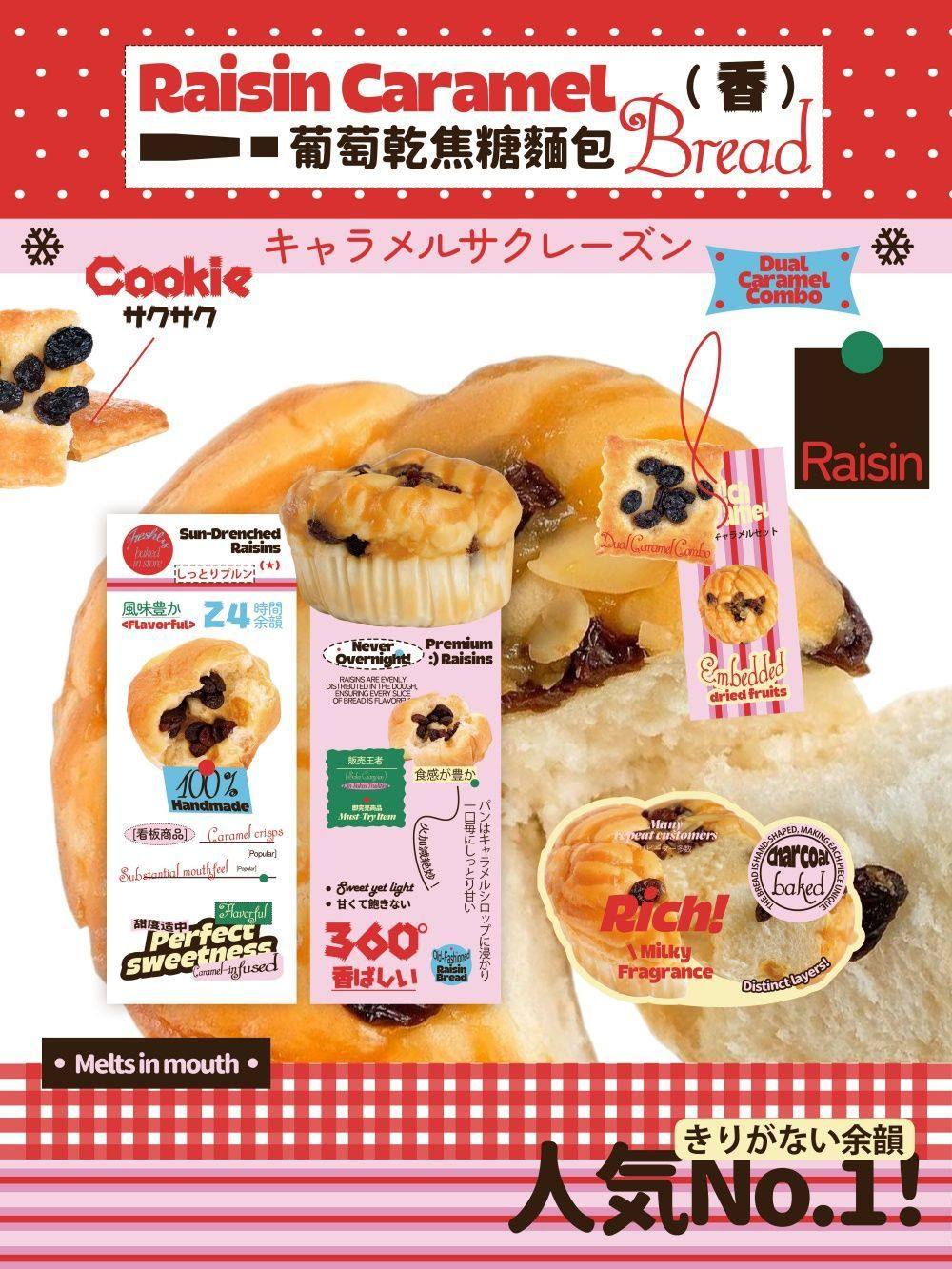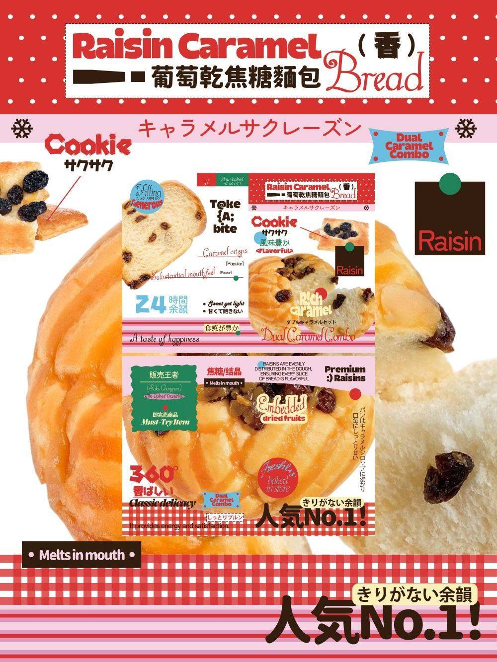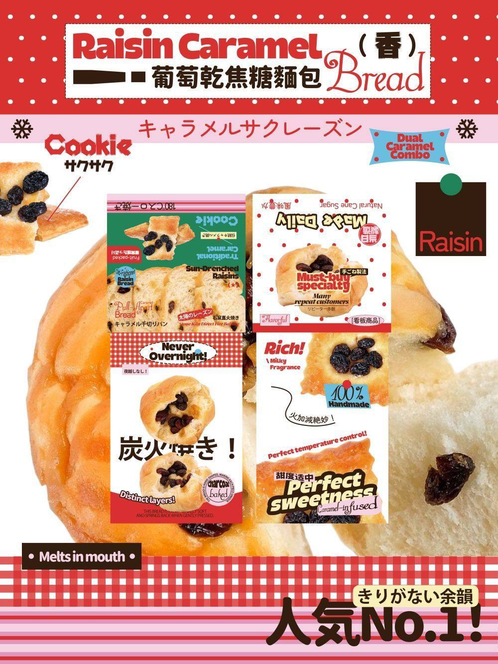 | Specifications | Each type of raisin bread is 10p (large food allowance),Each type of raisin bread is 5p (small food amount is adjusted),Each type of raisin bread is 1p (folded hair for tasting),Each type of raisin bread cultural creation is 5p including packaging bag |