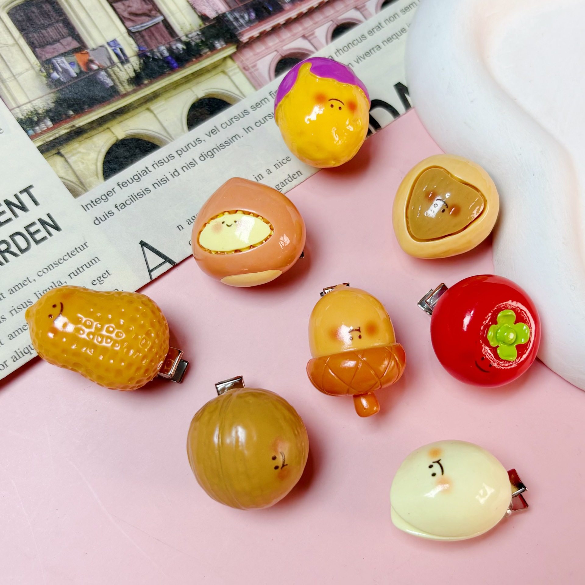 | Color | Pistachio hairpin,Hazelnut hairpin,Almond hairpin,Macadamia nut hairpin,Acorn hairpin,Peanut hairpin,Purple potato hairpin,Persimmon hairpin |