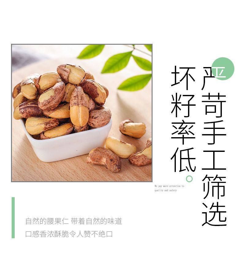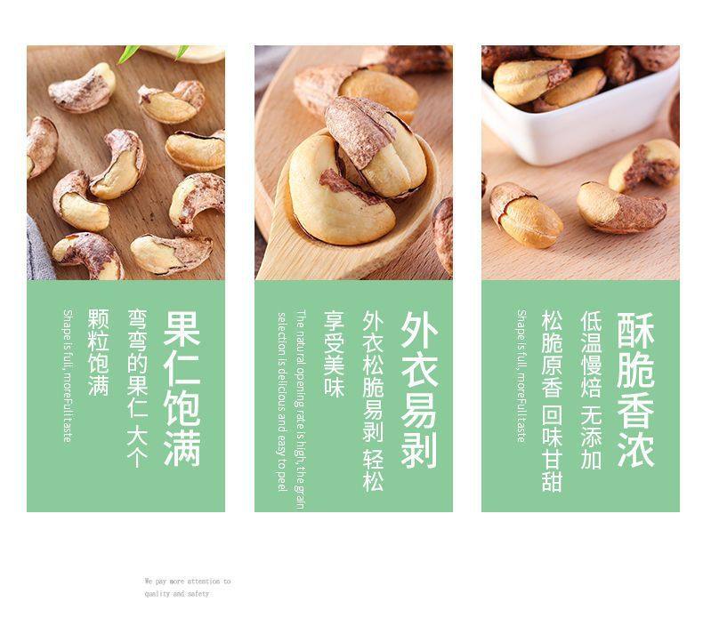 | Packaging specifications | [try a small bag] 100g,[try half a catty] net weight 250g*1 bag,[new cashew nuts 0.5kg ] net weight 500g*1 bag,[a180 large particles] net weight 500g*1 bag,[new cashew nuts 1.0kg ] net weight 500g*2 bags,[a180 large particles] net weight 500g*2 bags |