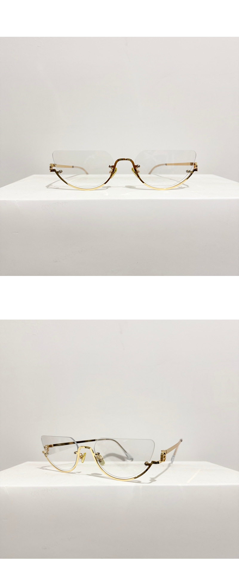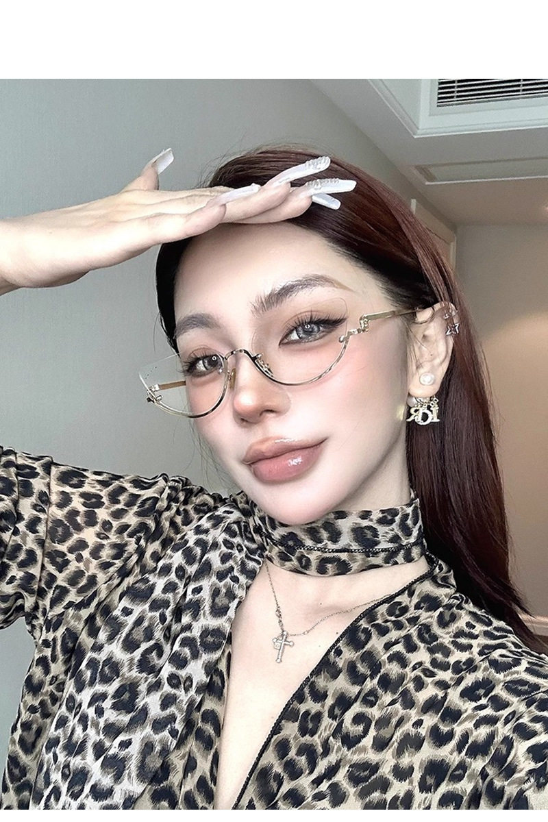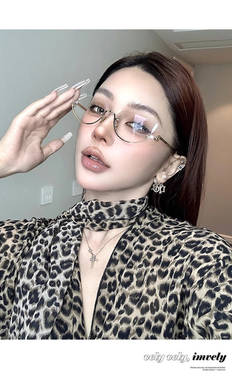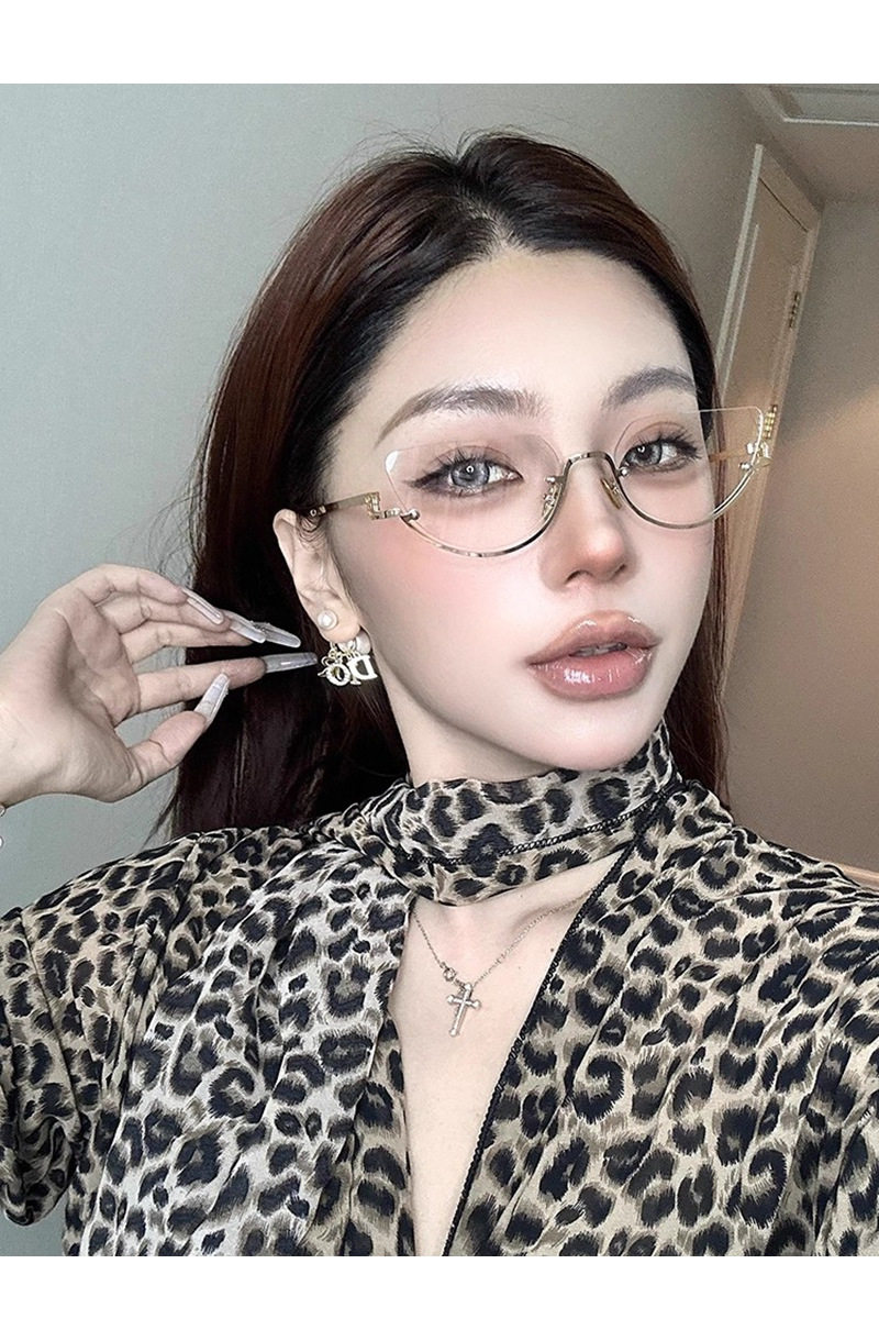 Korean-Style Gold Half-Frame Metal Glasses for Women, High-Intelligence Ins Rimless Anti-Blue Light Non-Prescription Frames, Customizable Prescription