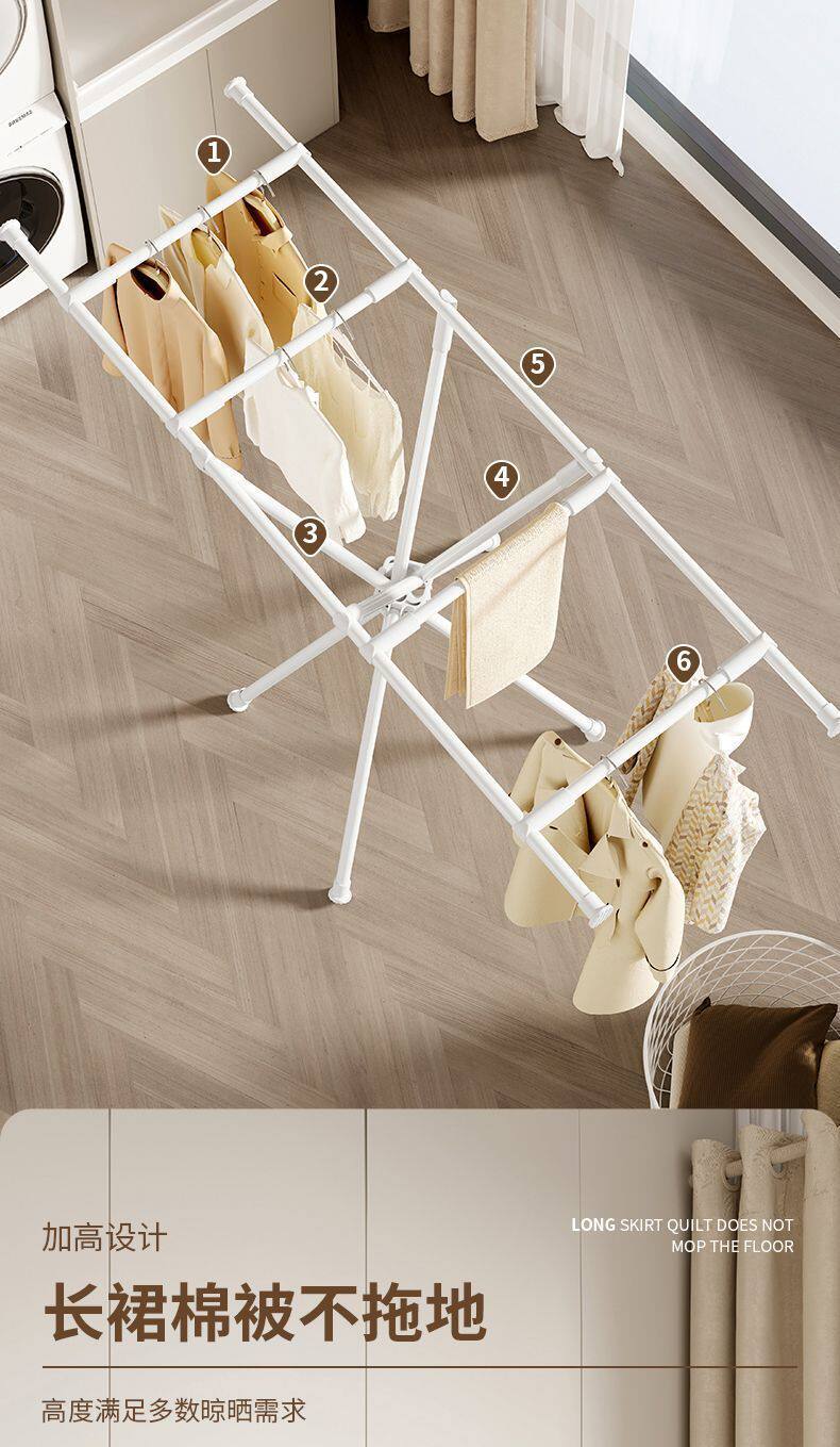 Foldable Floor-Standing Clothes Drying Rack for Home Use, Suitable for Bedroom and Balcony, Retractable and Invisible Indoor Clothes Rack