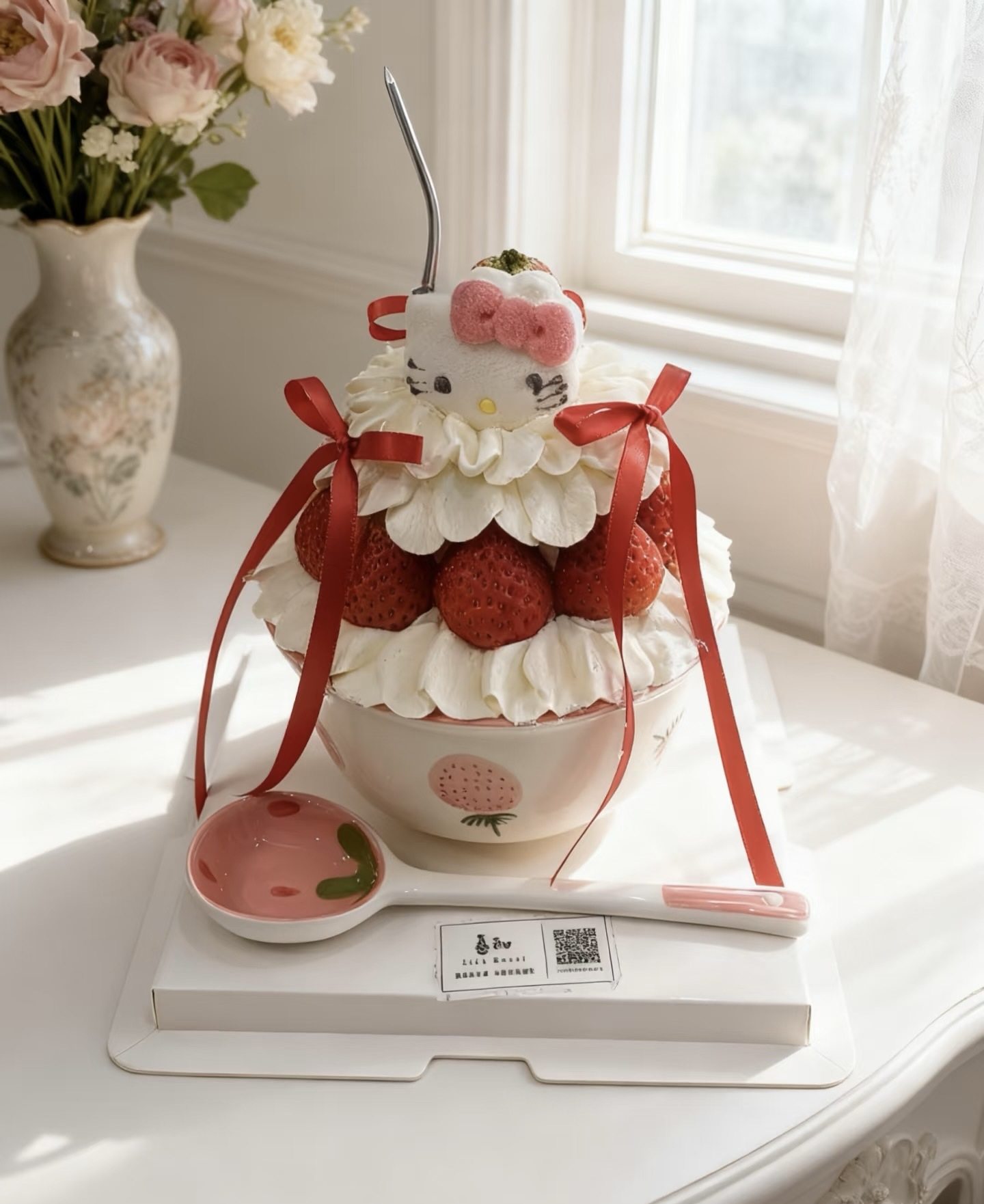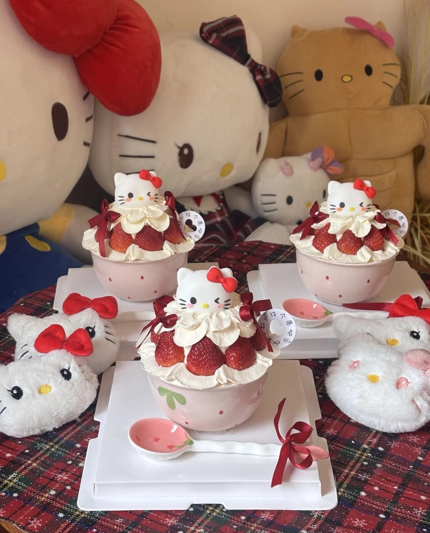 2026 Christmas Hellokitty Strawberry Bow Cake Bowl 4.5inch Creative Strawberry Decorated Cake Bowl