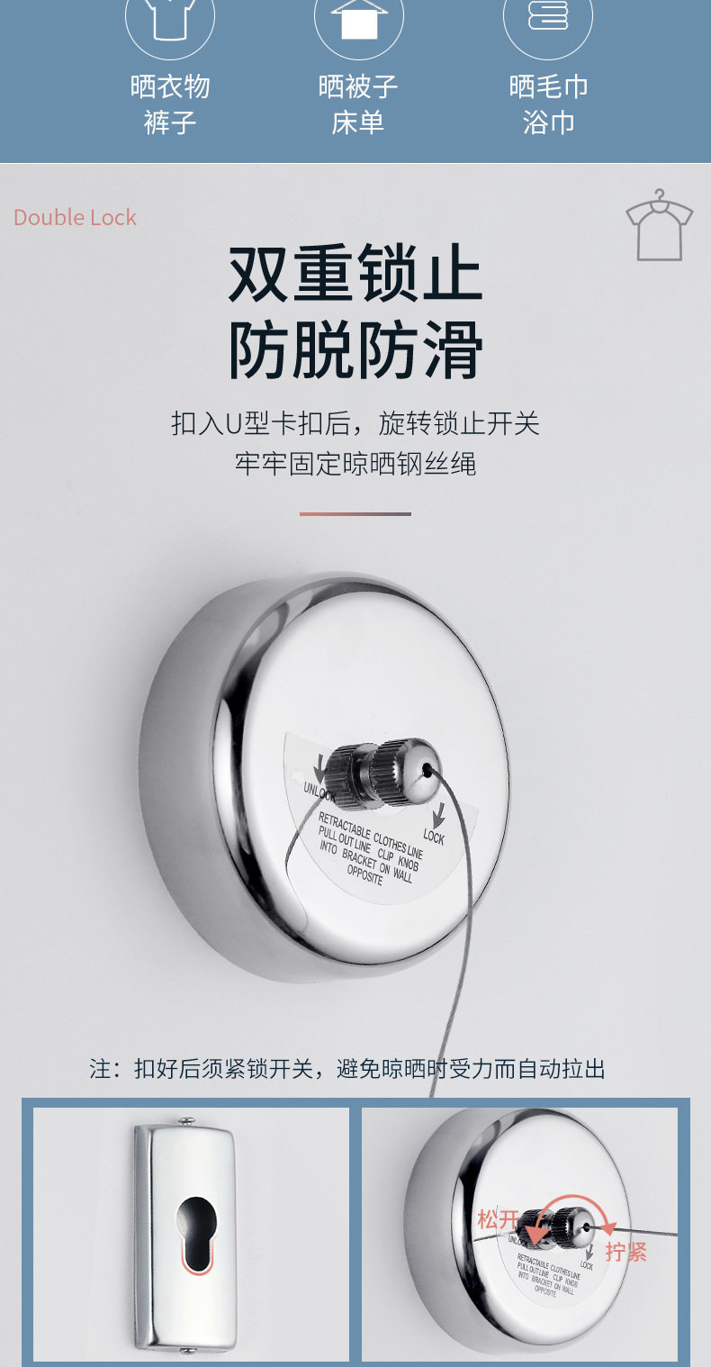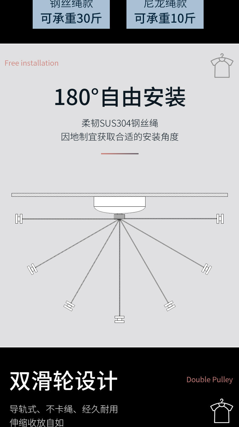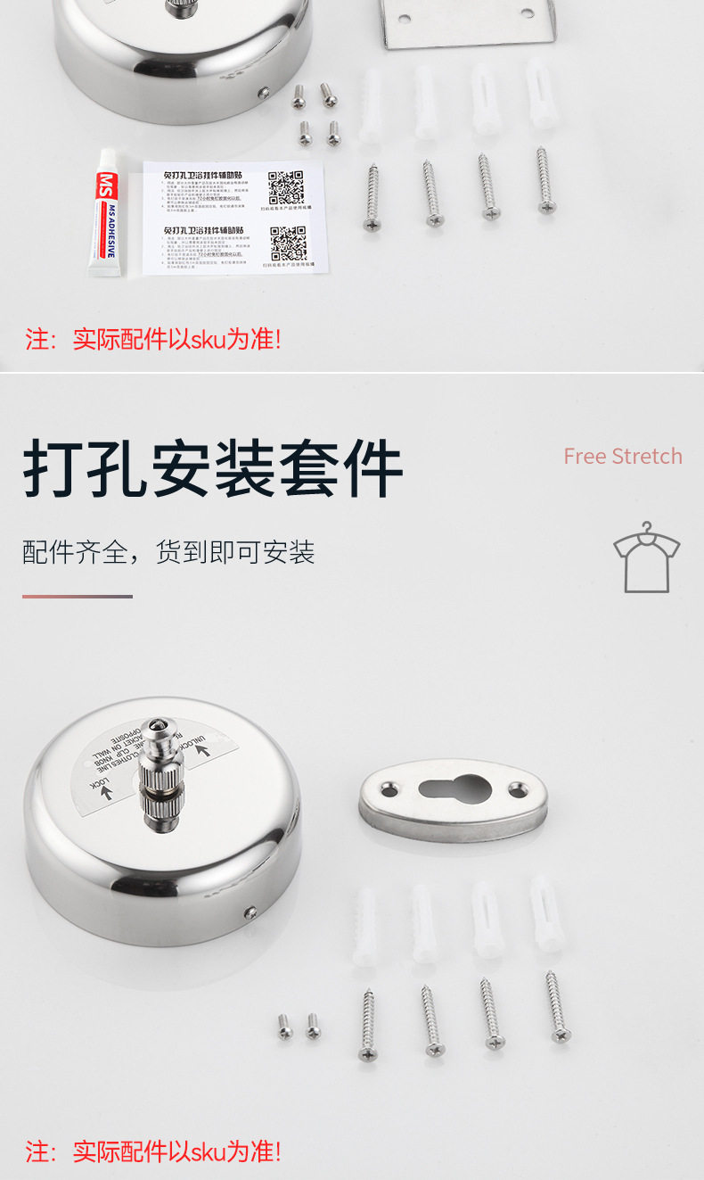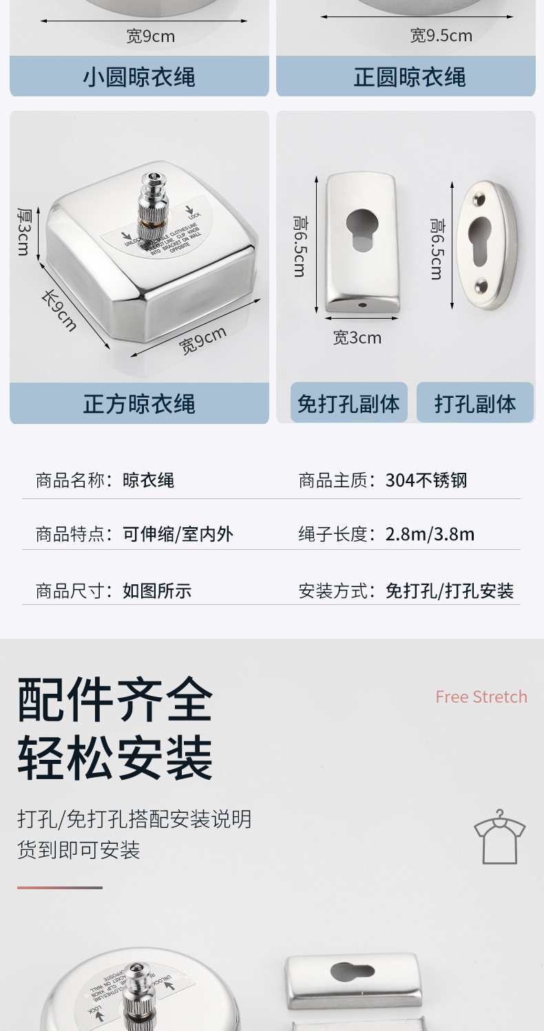 | Color | Round [stainless steel] [no pulley] [2.8m nylon rope] [punched installation],Round [stainless steel] [2.8m nylon rope] [punched installation],Round [304] [2.8m nylon rope] [punch installation],Round [304] [2.8m steel wire rope] [punched installation],Square [304] [2.8m nylon rope] [punch installation],Square [304] [2.8m steel wire rope] [punch installation],Square [304] [3.8m steel wire rope] [punch installation],Perfect circle [304] [2.8m nylon rope] [punch installation],Zhengyuan [304] [2.8m steel wire rope] [punch installation],Zhengyuan [304] [3.8m steel wire rope] [punch installation],Round [stainless steel] [no pulley] [2.8m nylon rope] [no punch/punch dual installation],Round [stainless steel] [2.8m nylon rope] [no punch/punch double installation],Round [304] [2.8m nylon rope] [no punching/double installation with punching],Round [304] [2.8m steel wire rope] [no punching/punching dual installation],Square [304] [2.8m nylon rope] [no punching/punching installation],Square [304] [2.8m steel wire rope] [no punching/punching installation],Square [304] [3.8m steel wire rope] [no punching/punching installation],Zhengyuan [304] [2.8m nylon rope] [no punching/double installation with punching],Zhengyuan [304] [2.8m steel wire rope] [no punching/double installation with punching],Zhengyuan [304] [3.8m steel wire rope] [double installation without punching/punching] |