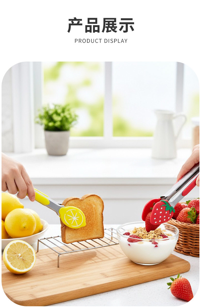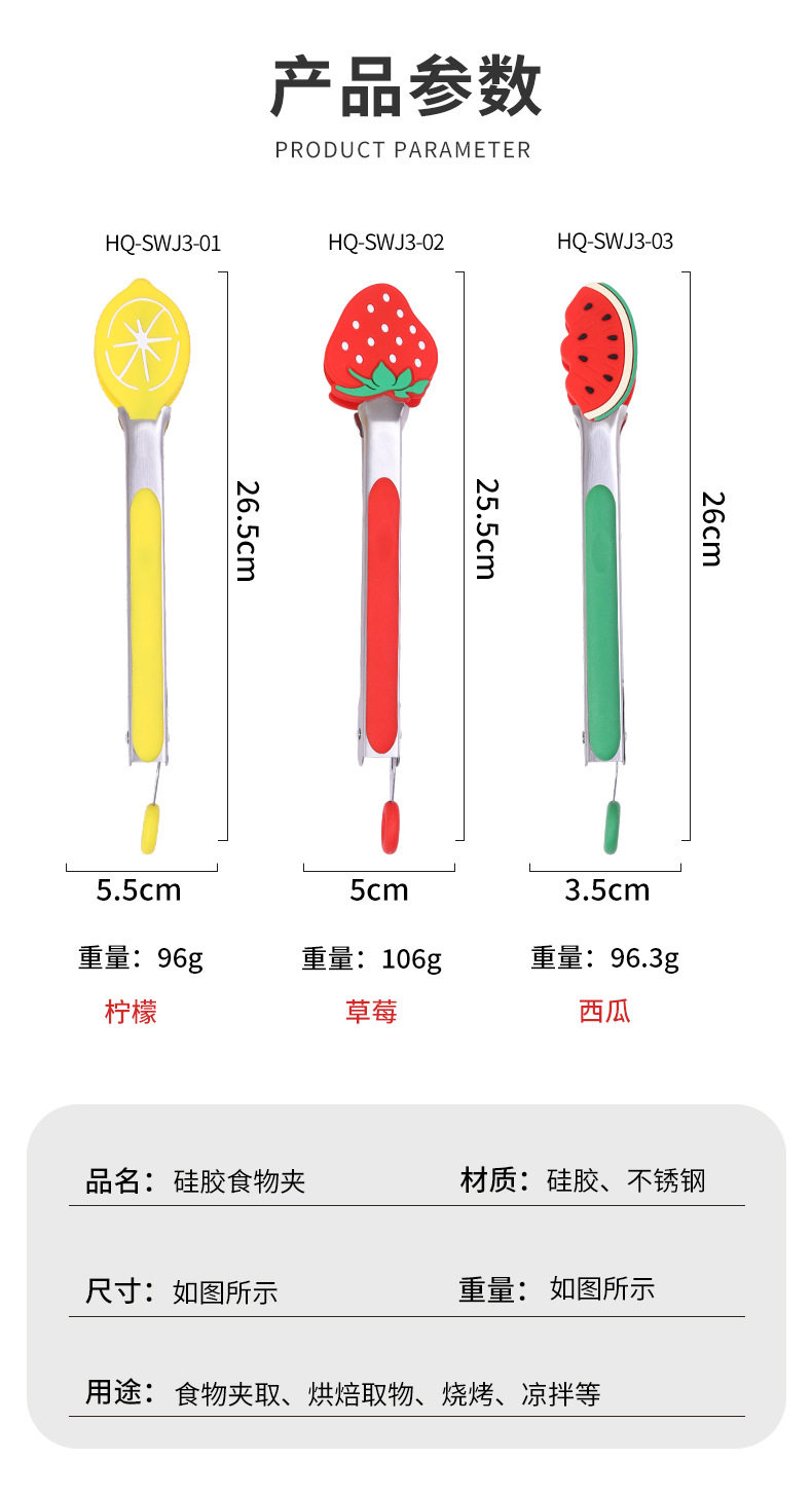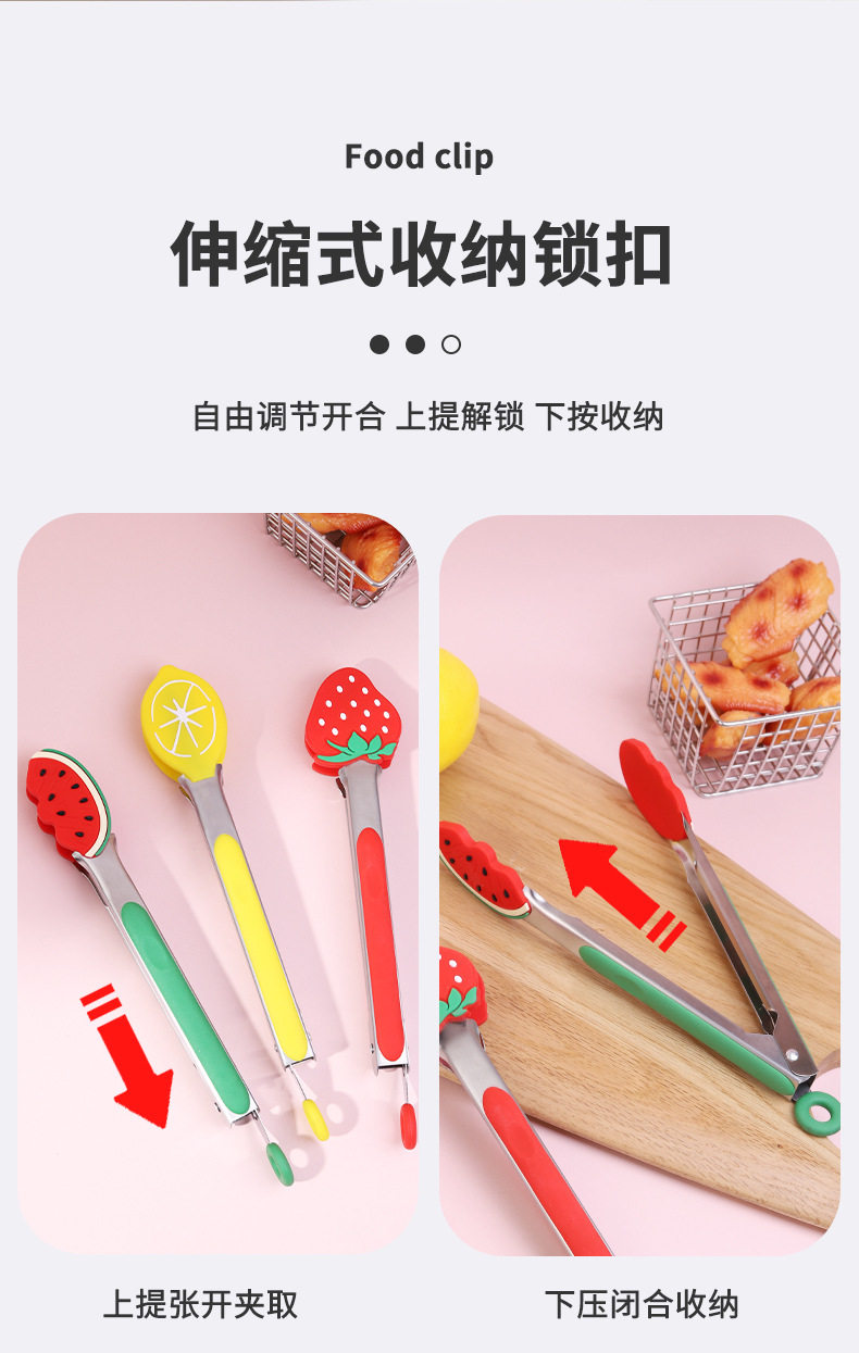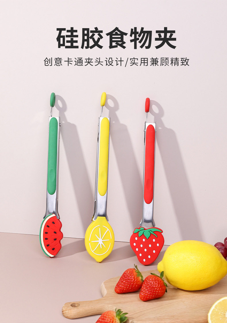 Cross-Border Stainless Steel Fruit Food Clips Silicone Food Clips Barbecue Clips Household Kitchen Utensils Cooking Clips Multi-Functional Clips