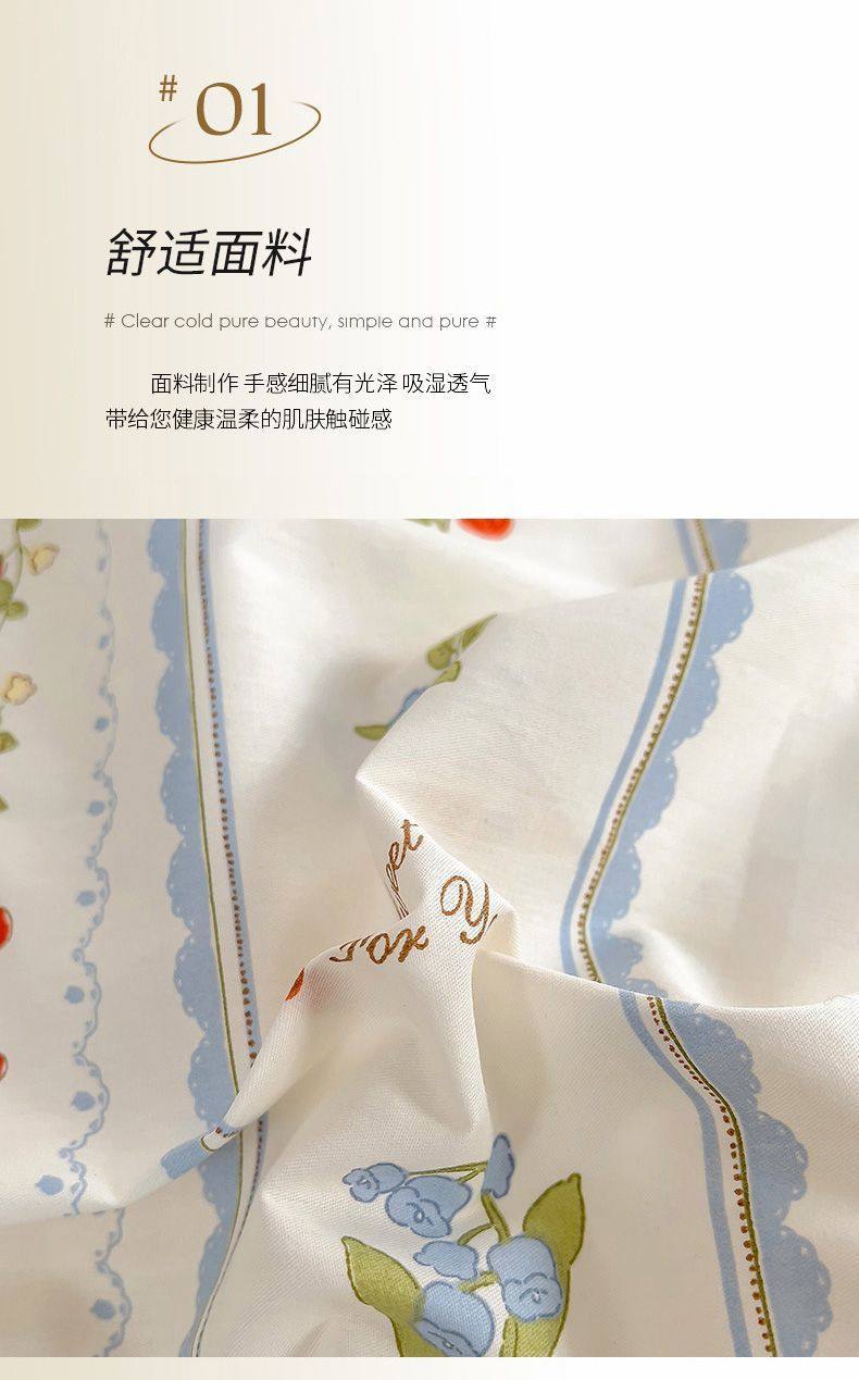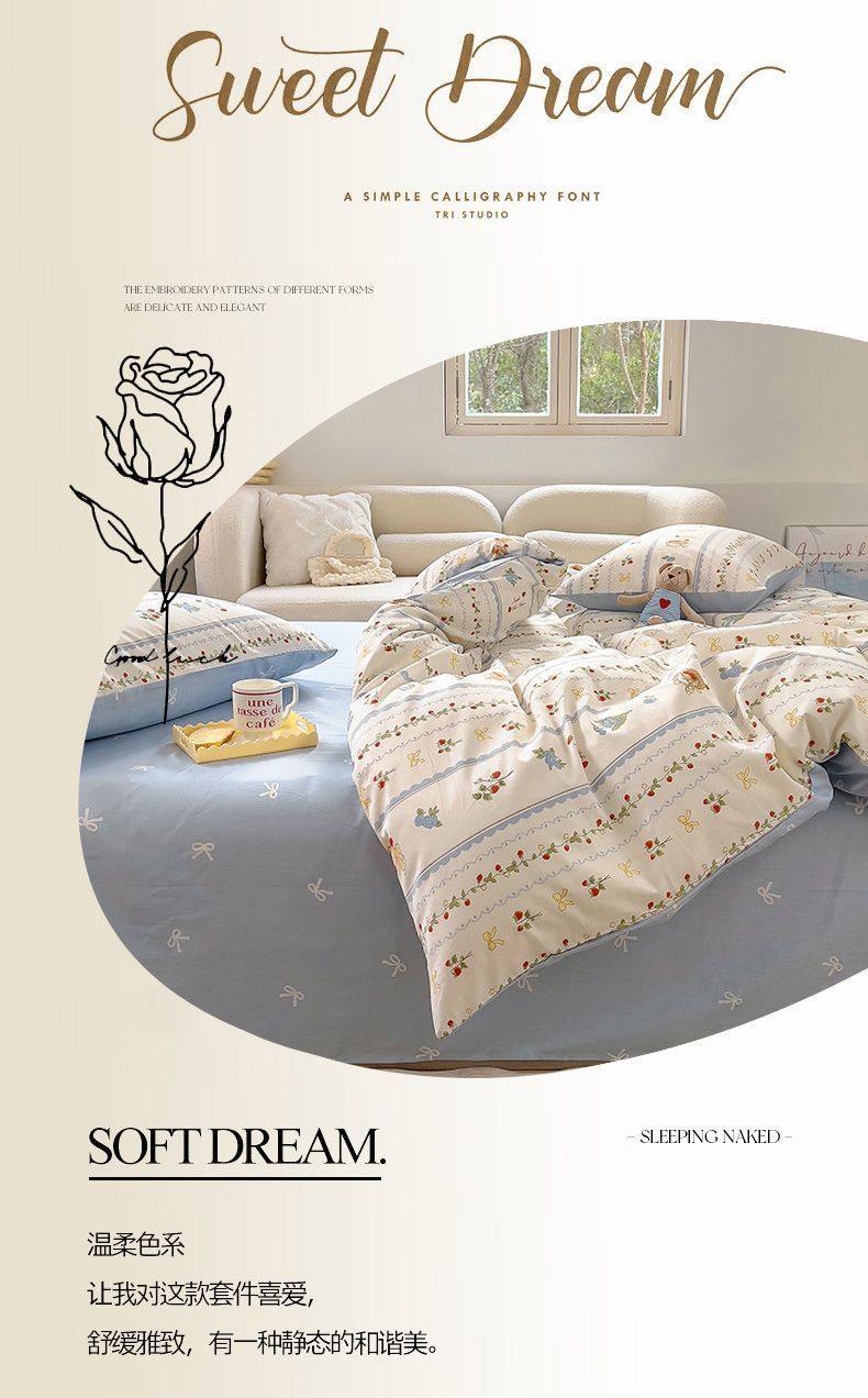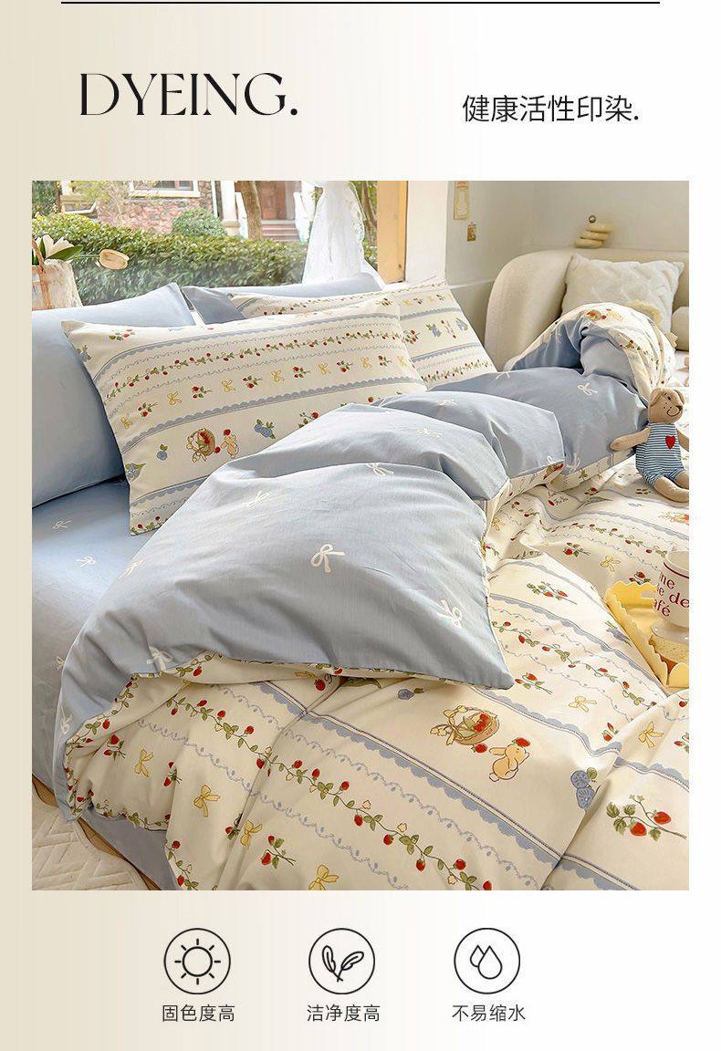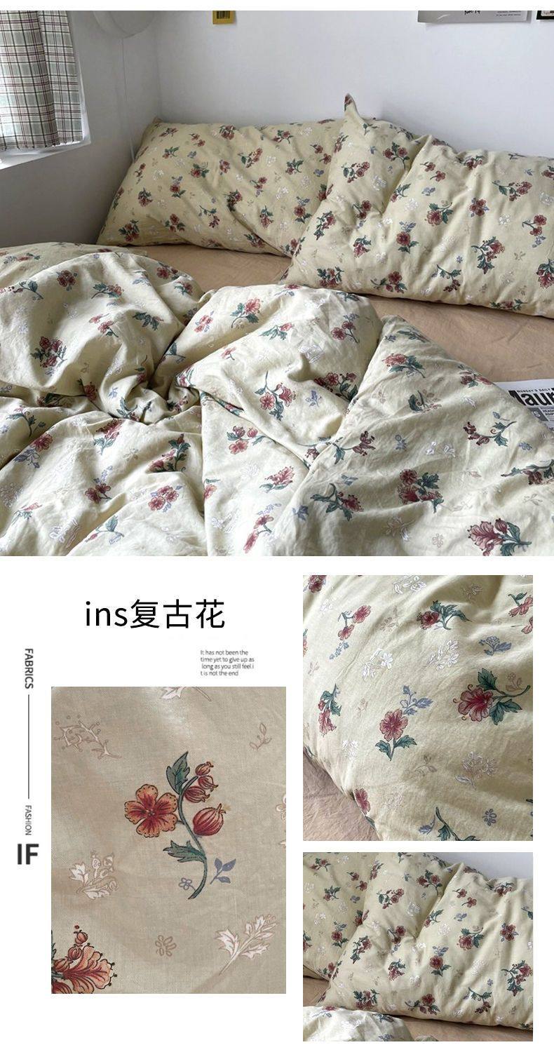 Four-Season Universal Small Floral Four-Piece Set Pure Washed Cotton Quilt Cover Student Dormitory Single and Double Three-Piece Bedding Set
