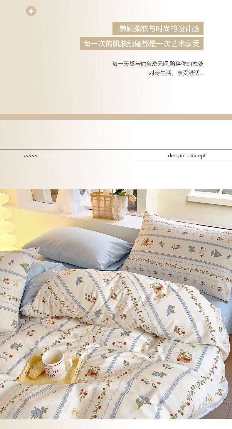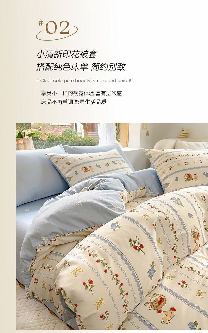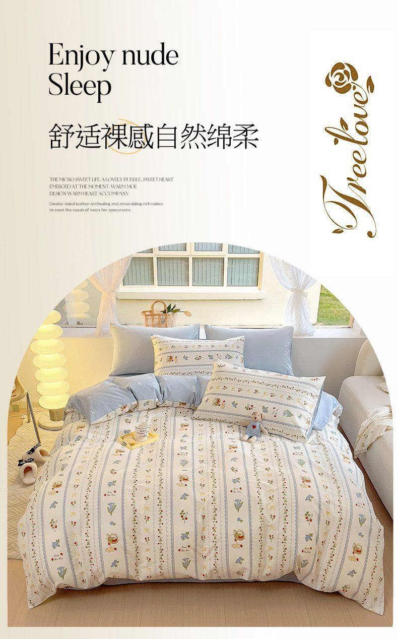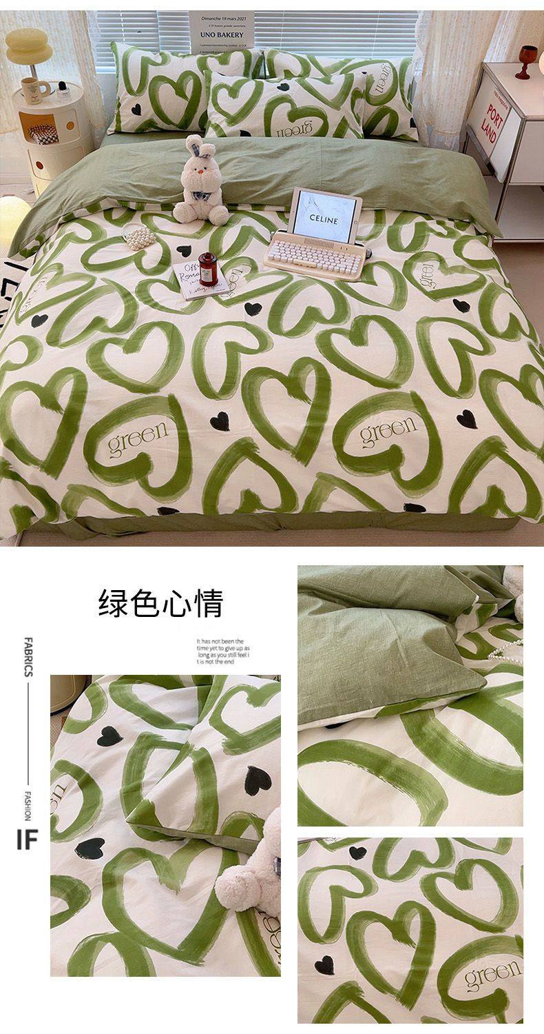 Four-Season Universal Small Floral Four-Piece Set Pure Washed Cotton Quilt Cover Student Dormitory Single and Double Three-Piece Bedding Set