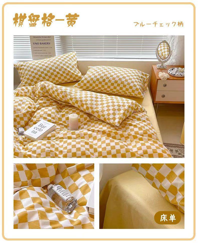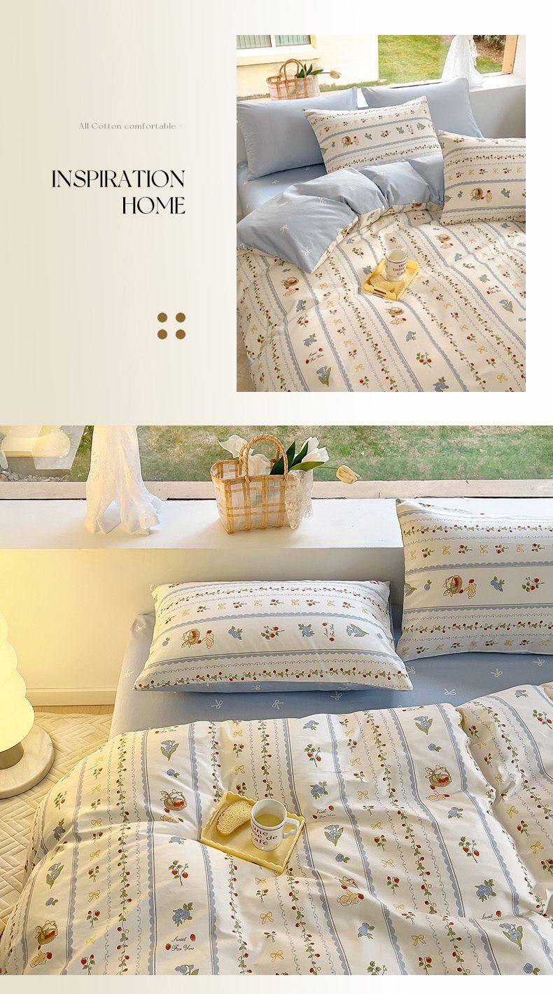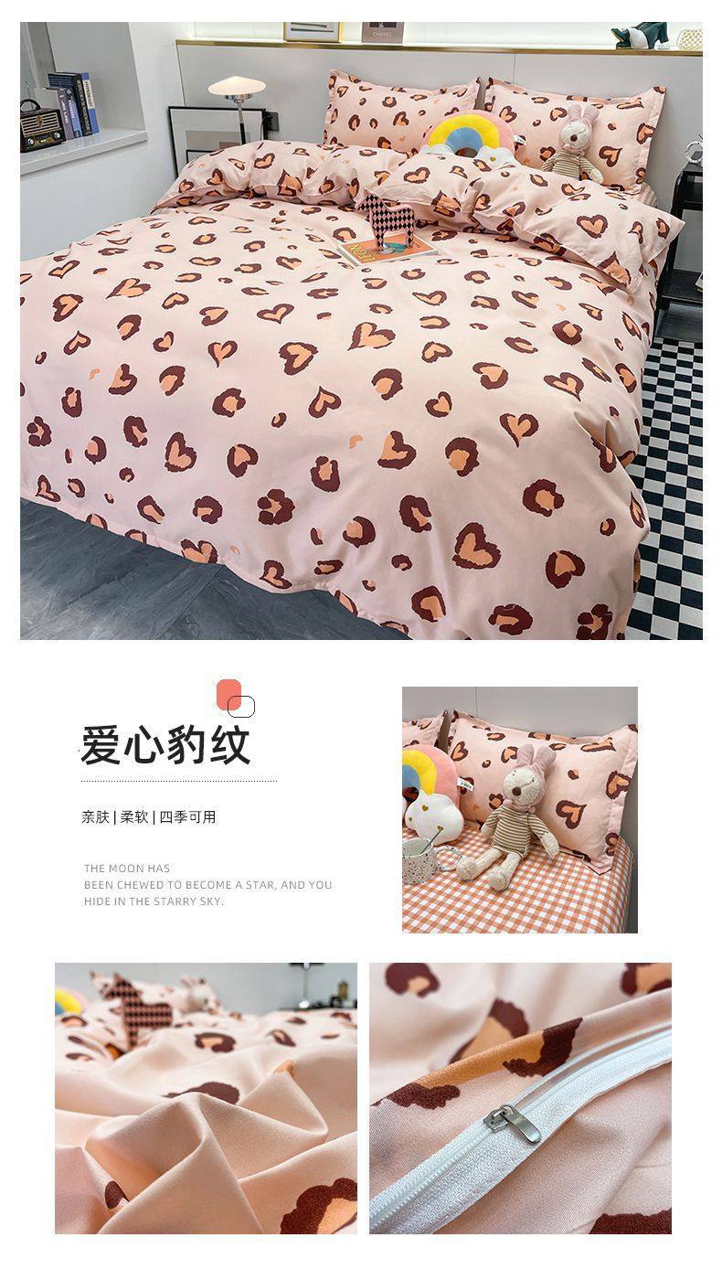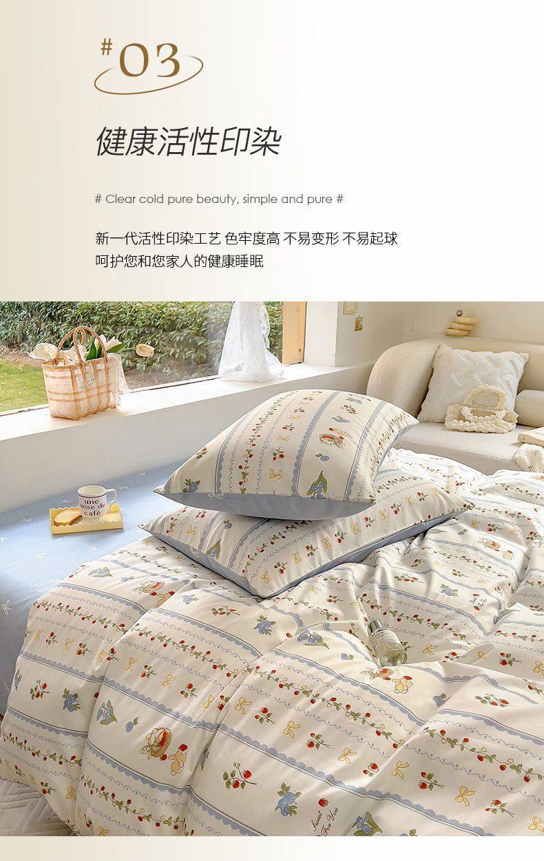 Four-Season Universal Small Floral Four-Piece Set Pure Washed Cotton Quilt Cover Student Dormitory Single and Double Three-Piece Bedding Set