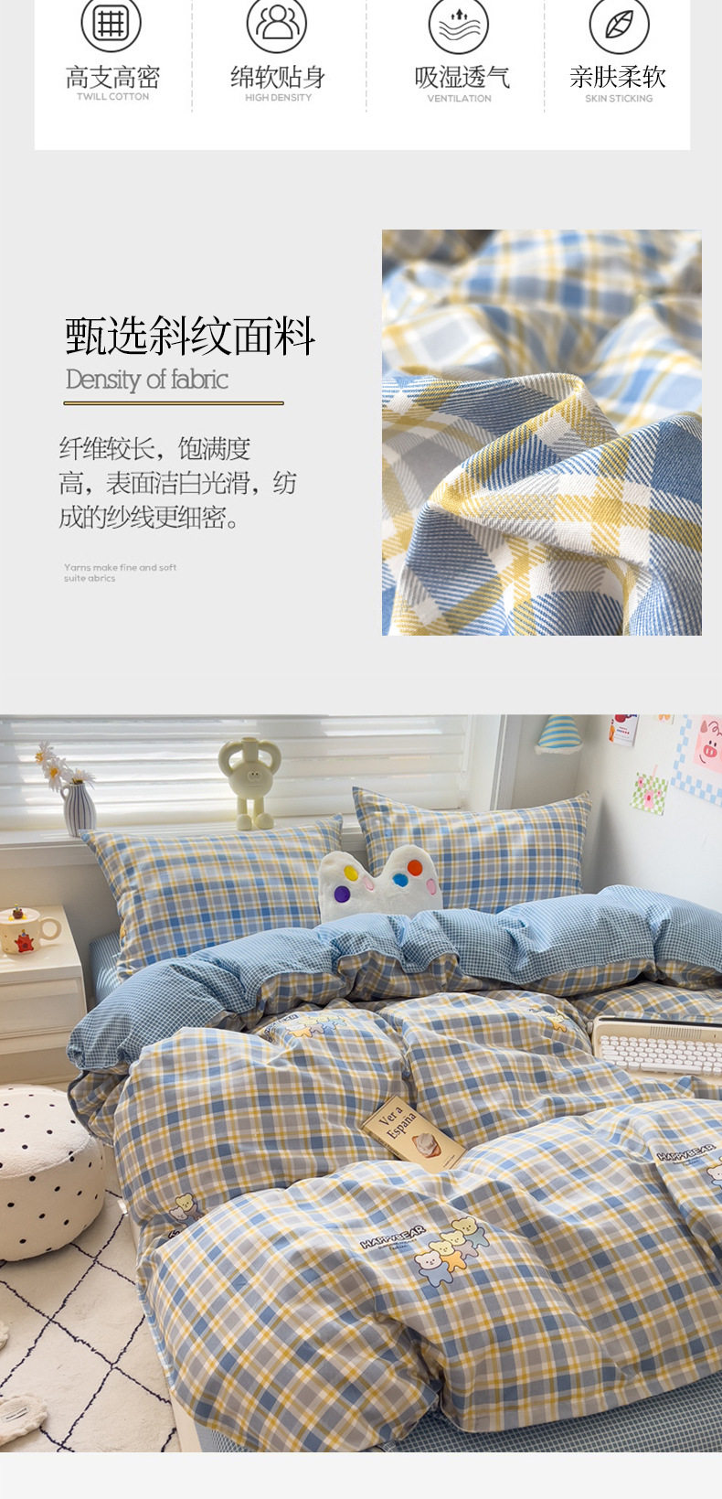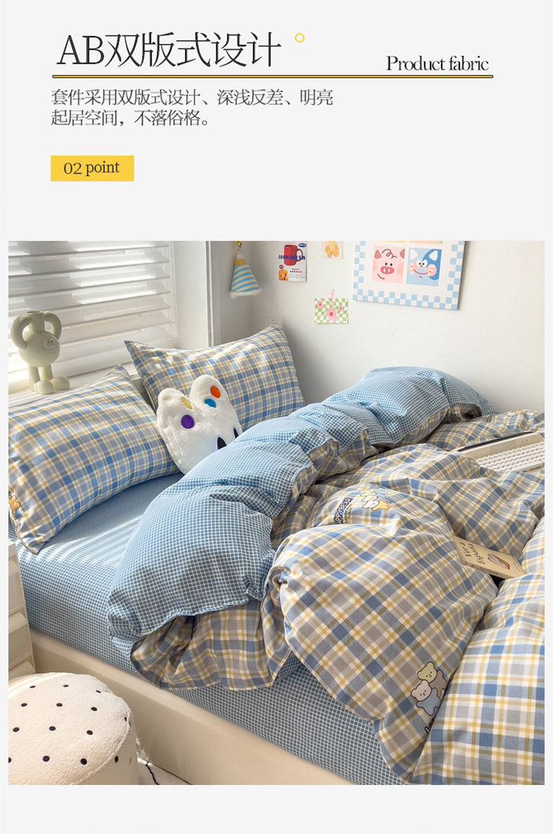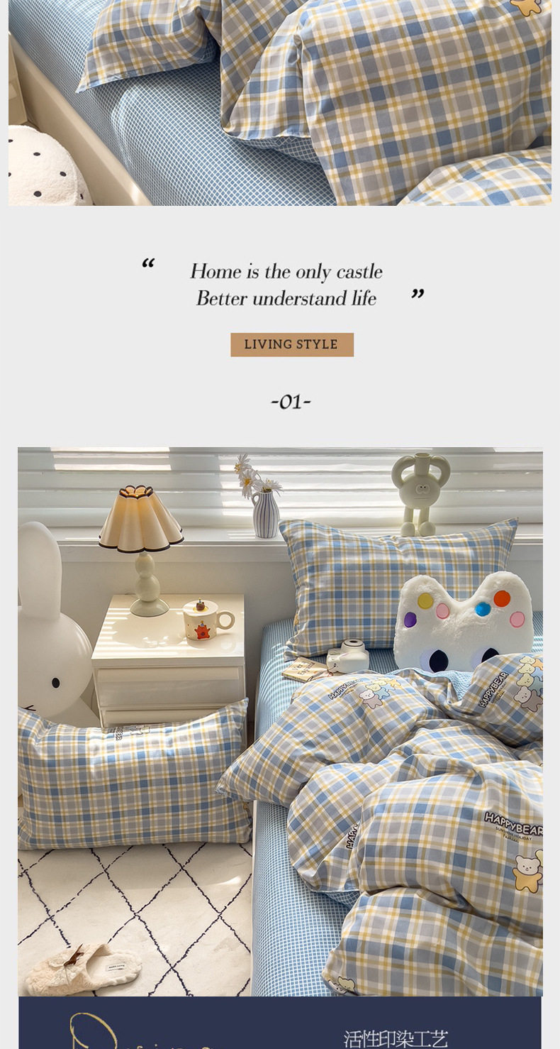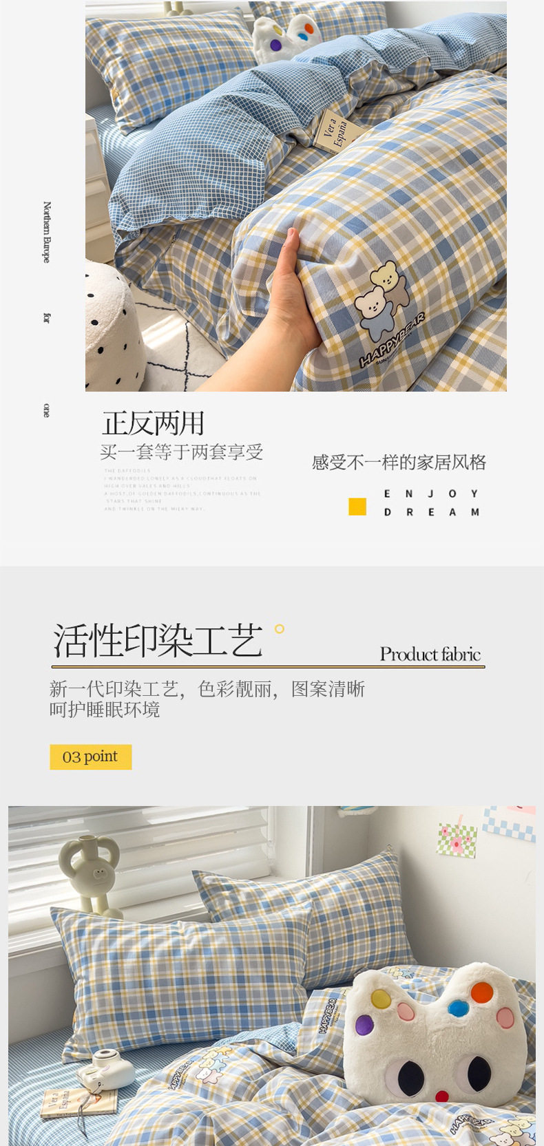 Autumn and Winter Thickeneded Cotton Four-Piece Set Ins Naked Sleeping Pure Cotton Bed Bed Sheets Quilt Cover Class a Dormitory Bed Brushed Three-Piece Set
