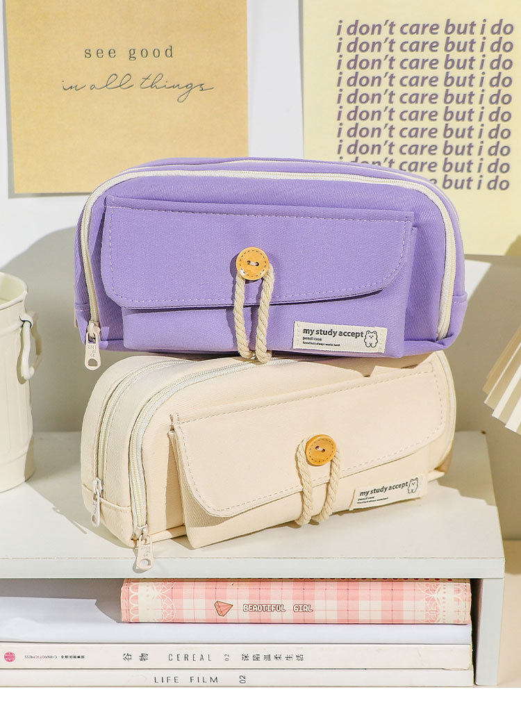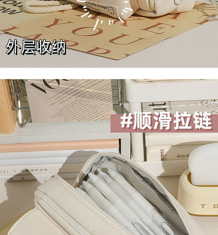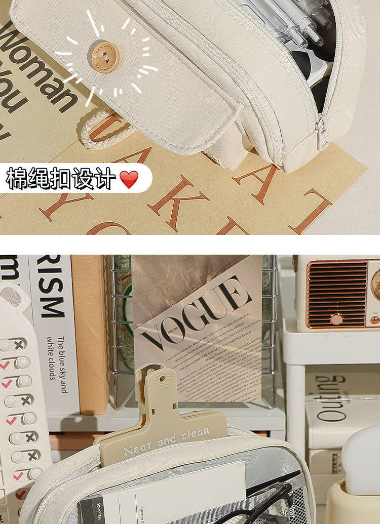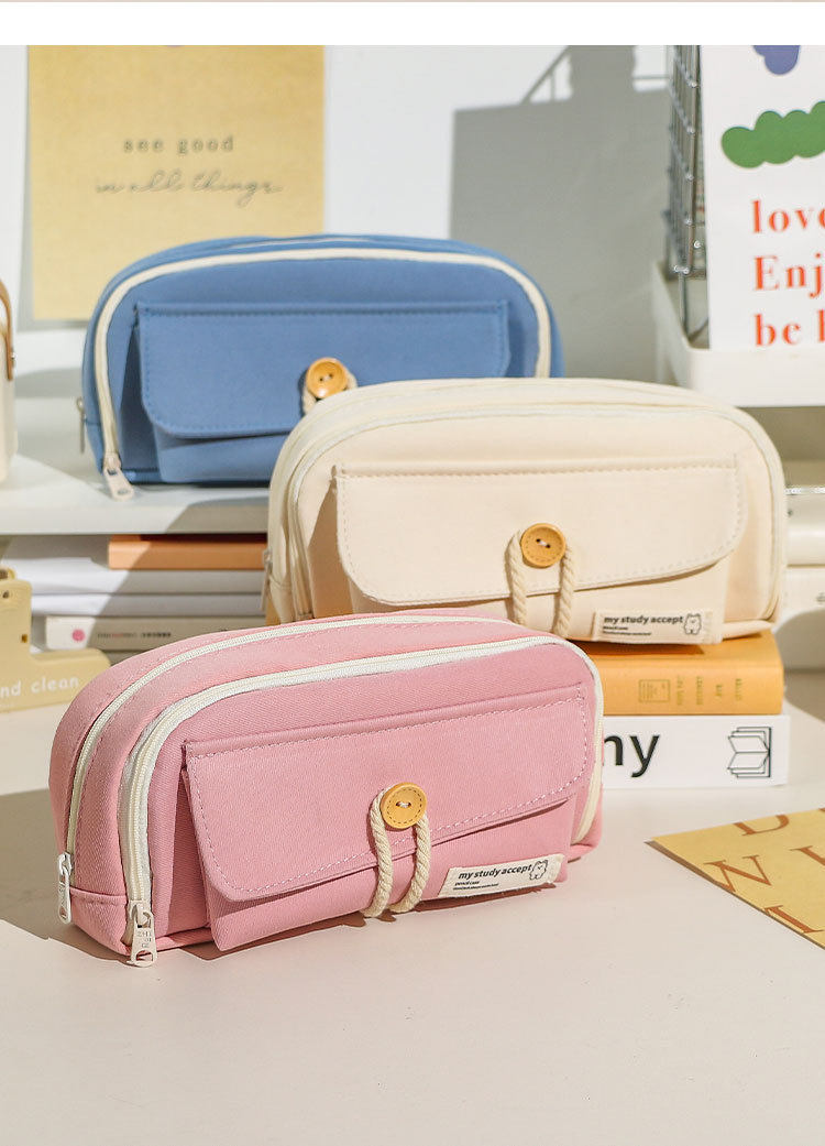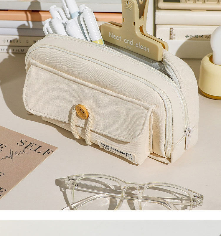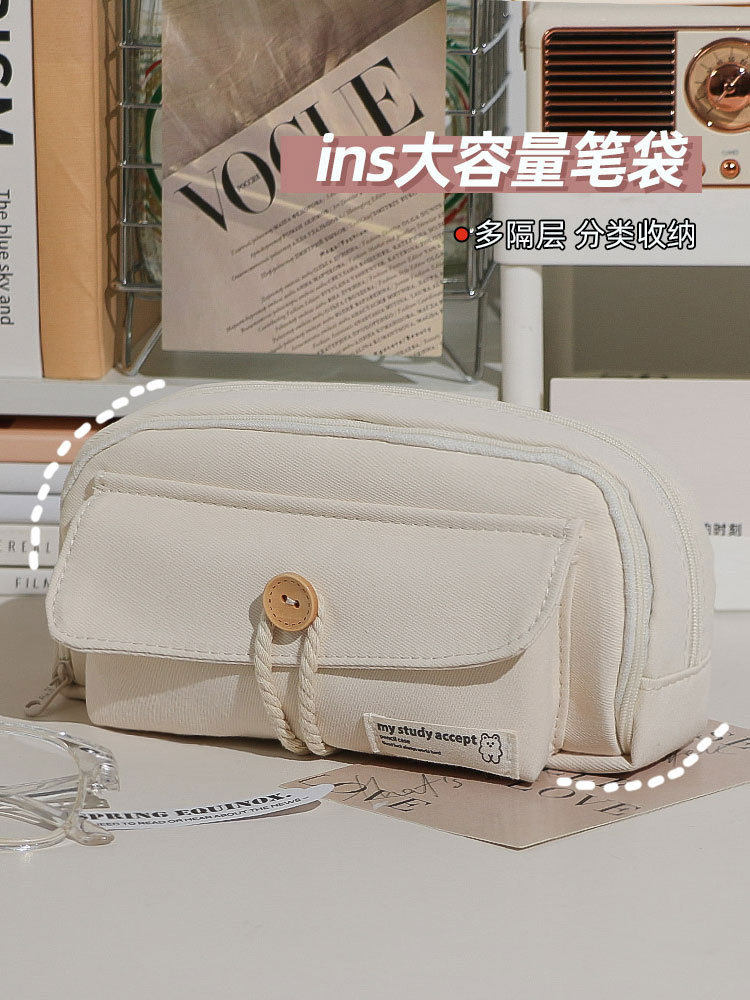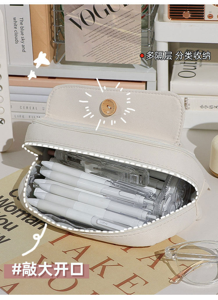 [Factory Direct Sales] Four-Layer Button Pencil Bag, High-Looking Ins Style Pencil Bag, Cute Pencil Bag for Primary School Girls