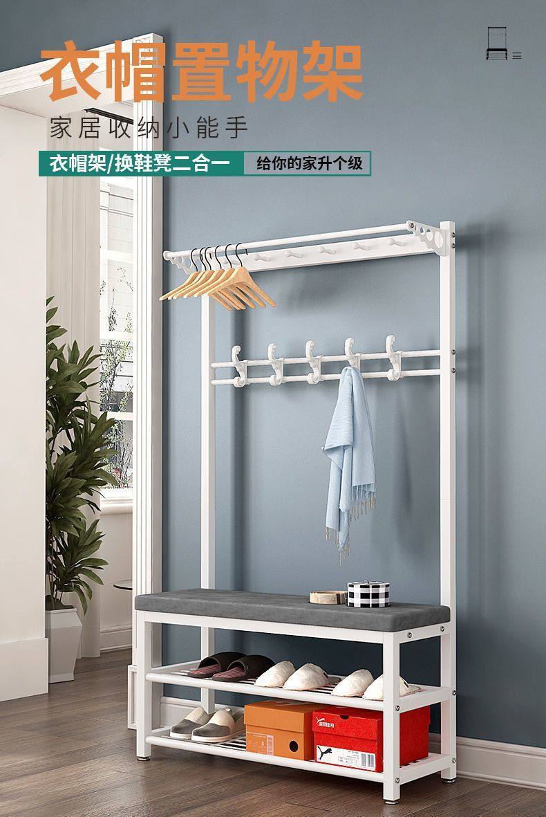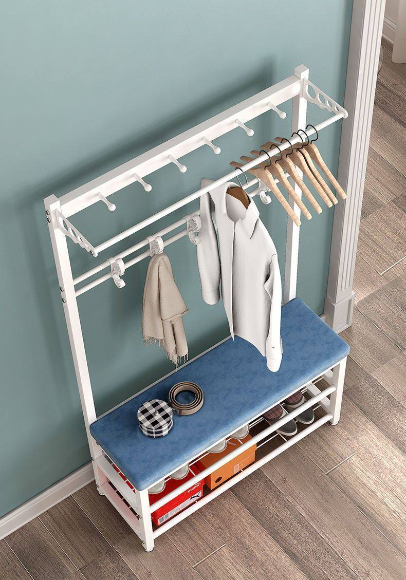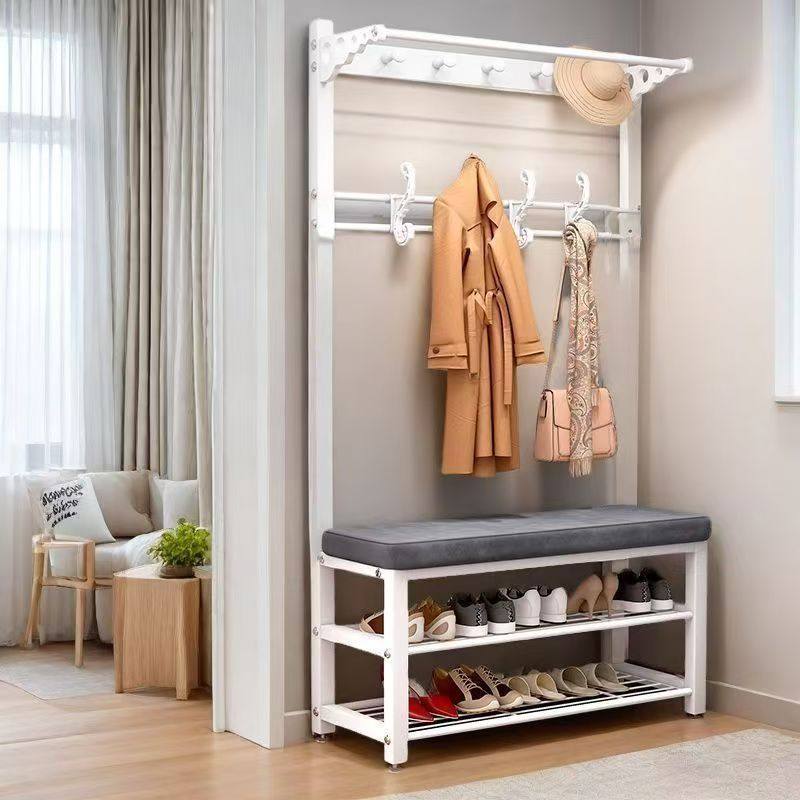 Shoe-Changing Bench and Coat Rack, Multifunctional Floor-Standing Coat Rack, Household Doorway Shoe Bench, Simple Storage Rack, Clothes Hanger
