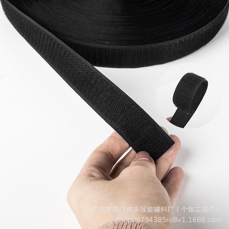 Velcro Accessories with Hook and Loop Fasteners, Nylon Plastic Hooks, Elastic Hair-Backed Velcro, Ready-Made Black and White