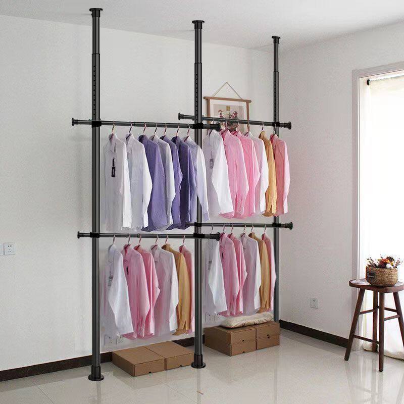 Floor-To-Ceiling Clothes Drying Rack, Easy to Store, Does Not Take up Space, Household Floor-Standing Bedroom, Punched Telescopic Balcony Clothes Hanging