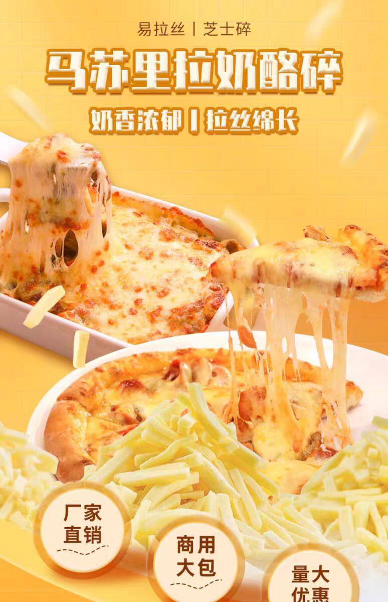 Shredded Mozzarella Cheese for Pizza and Baked Rice, Commercial and Household Large Packaging Frozen Cheese 2kg