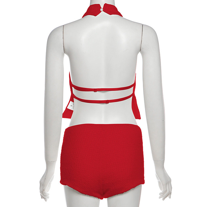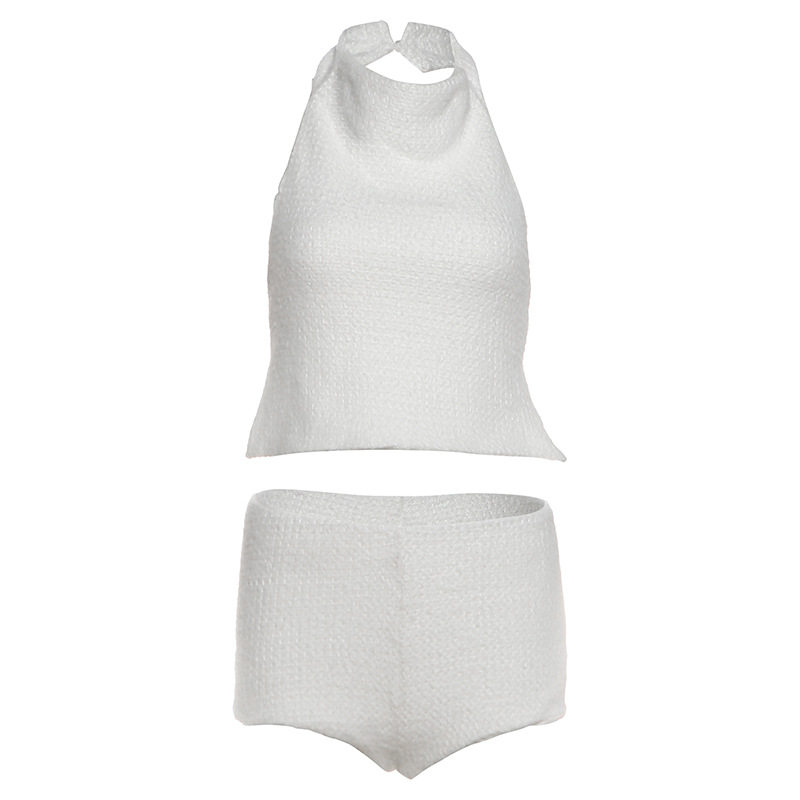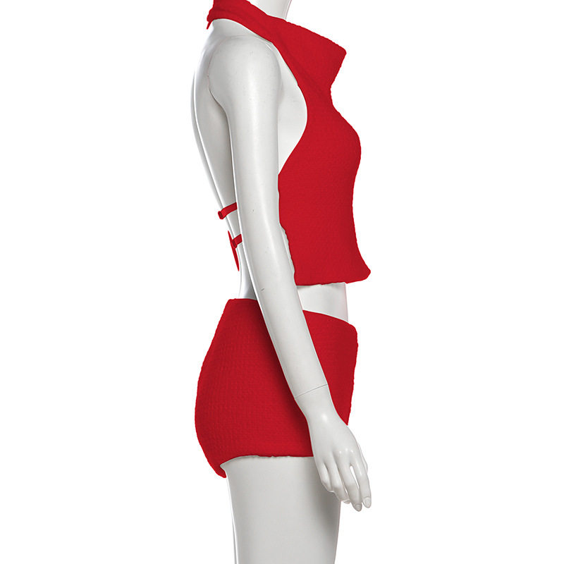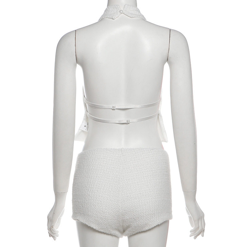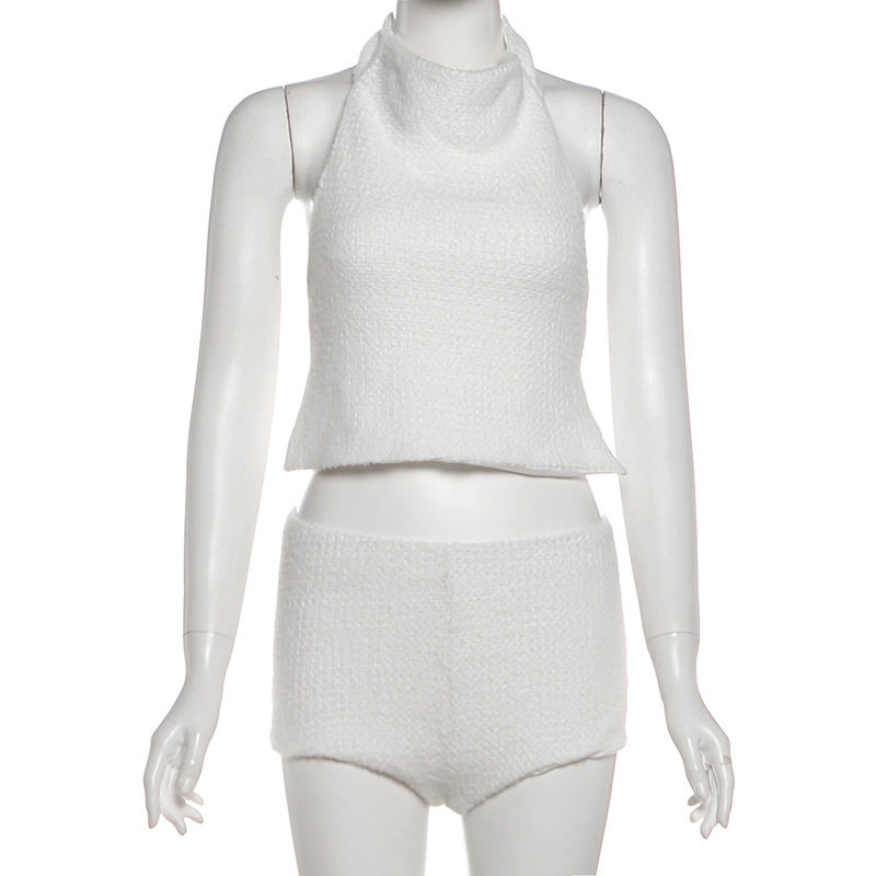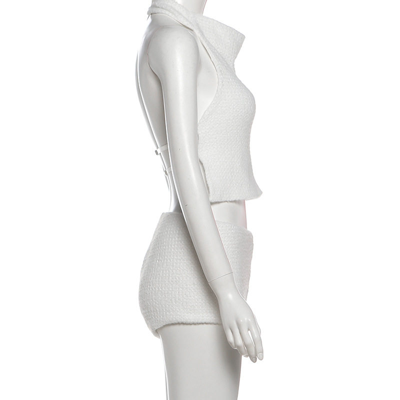 Cross-Border European and American Style 2025 Winter New Women's Halterneck Waistless Sleeveless Top High-Waisted Slim Shorts Two-Piece Set