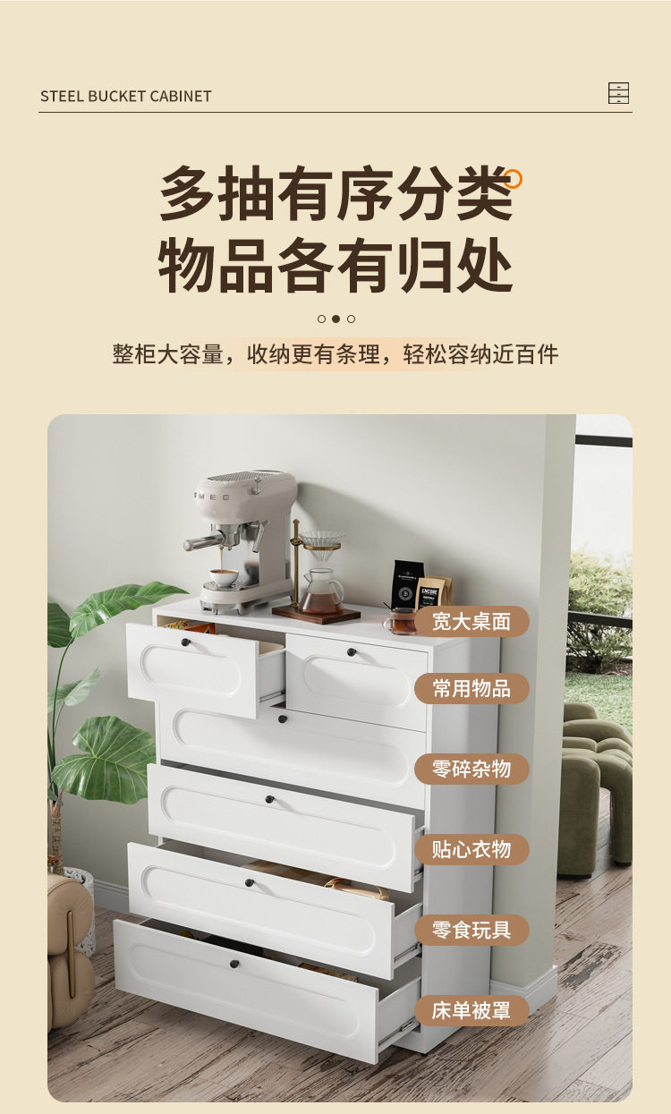 Iron Chest of Drawers Bedroom Bedside Steel Storage Cabinet Living Room Organizing Cabinet Modern Simple Multi-Layer Drawer Storage Cabinet