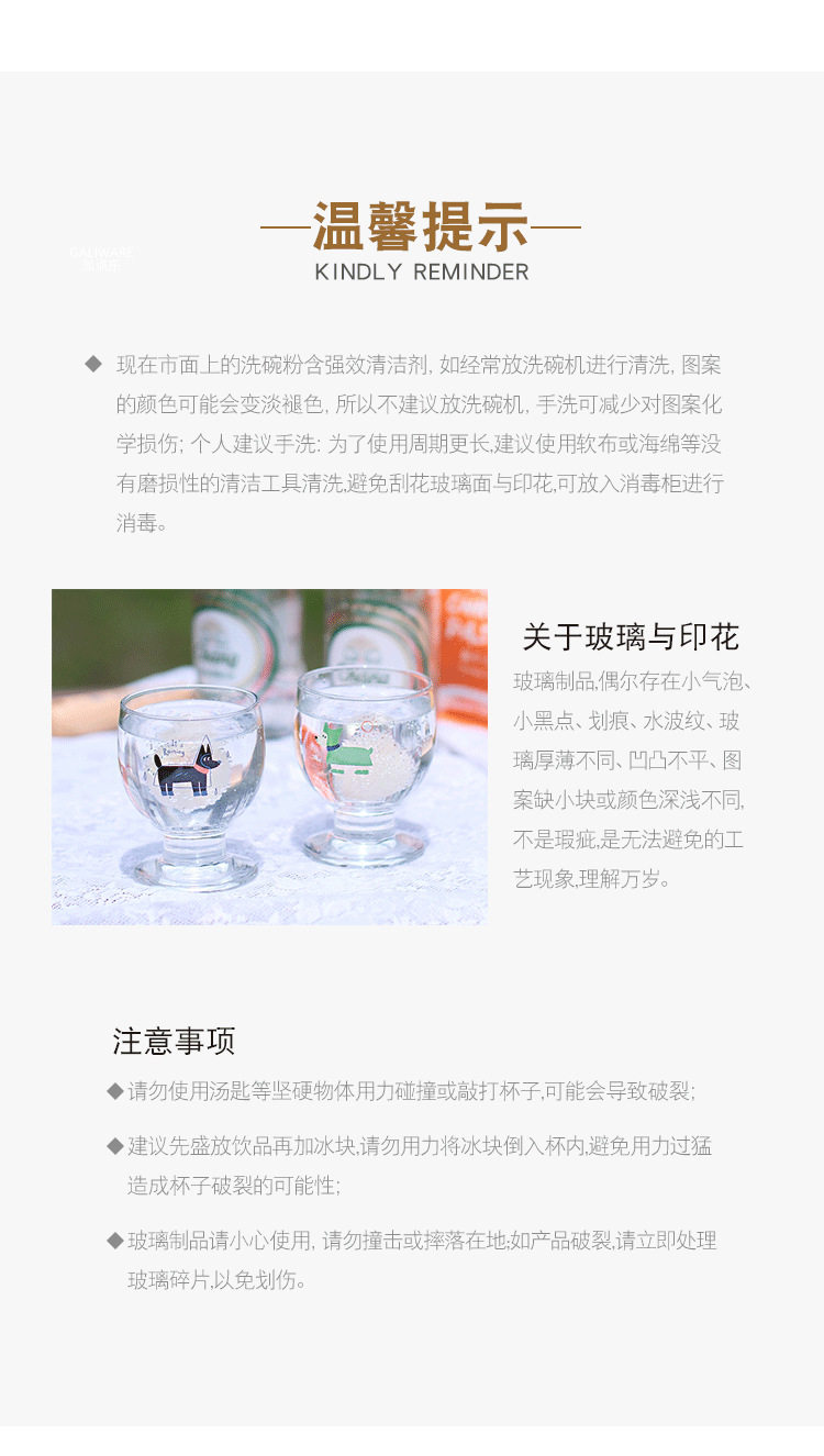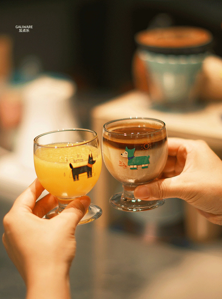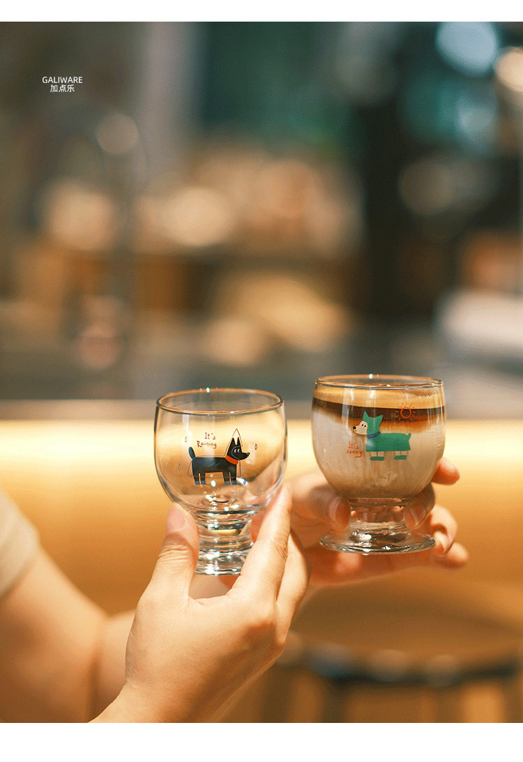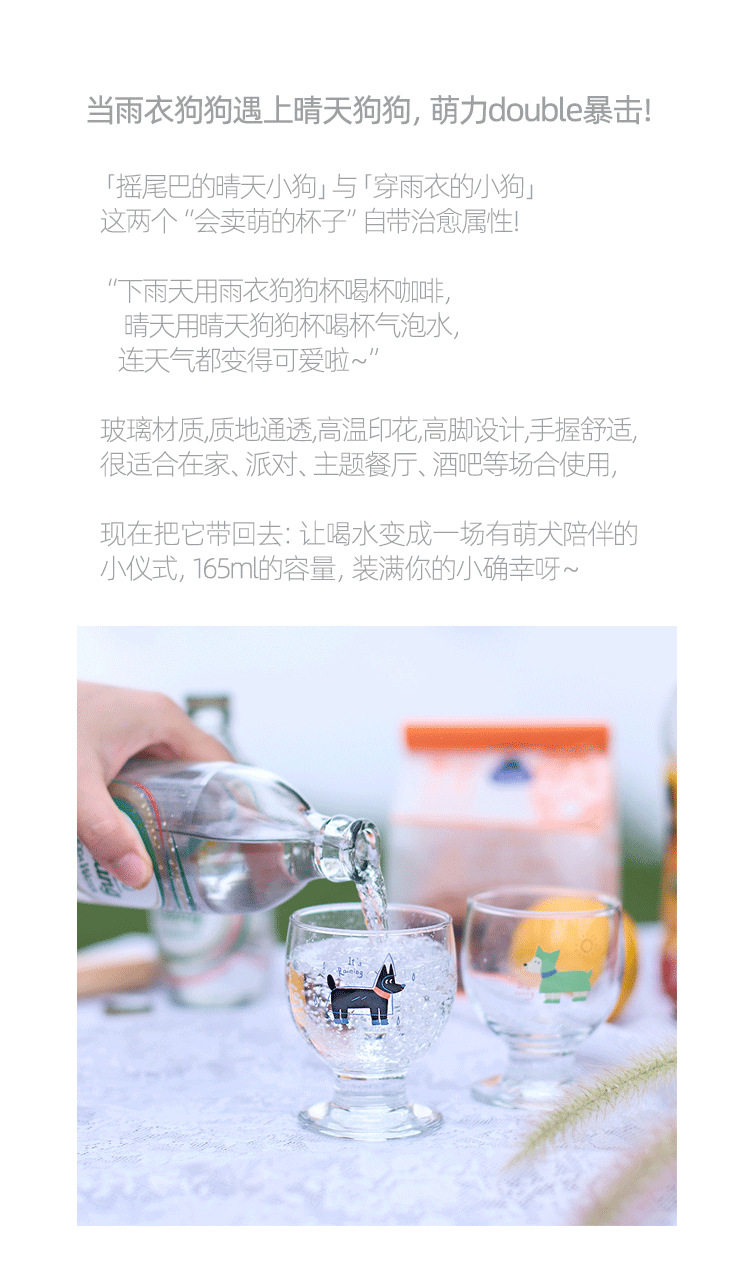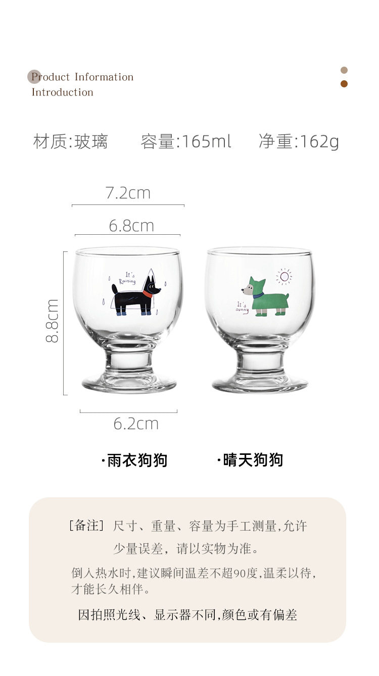 | Color | /raincoat dog glass (165ml)/,/sunny dog glass (165ml)/,/raincoat dog + sunny day dog 2 gift boxes/ |