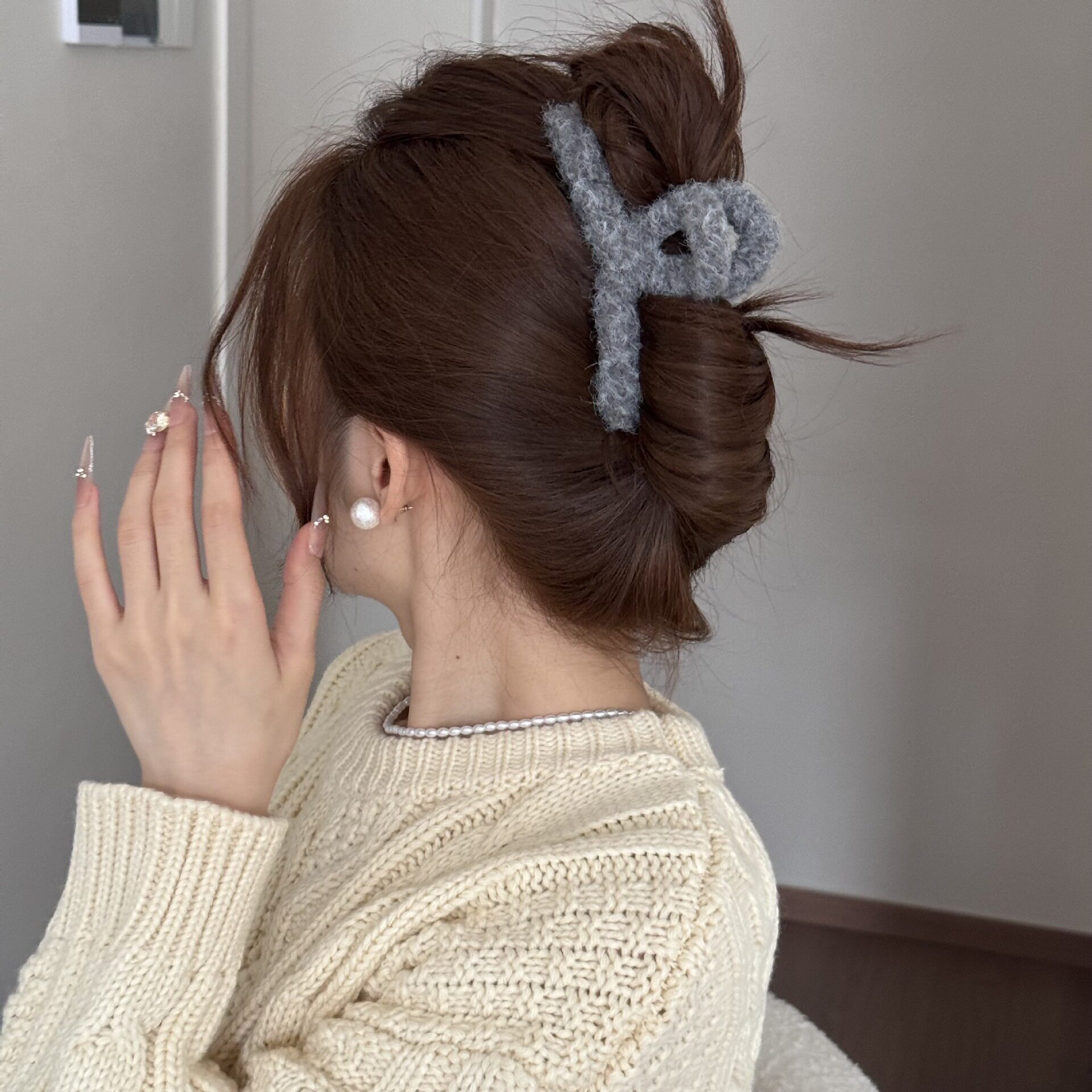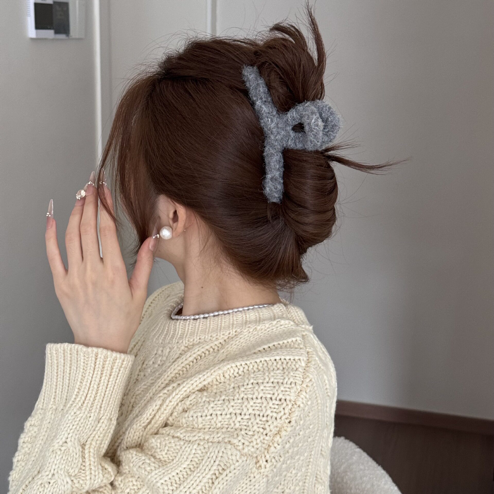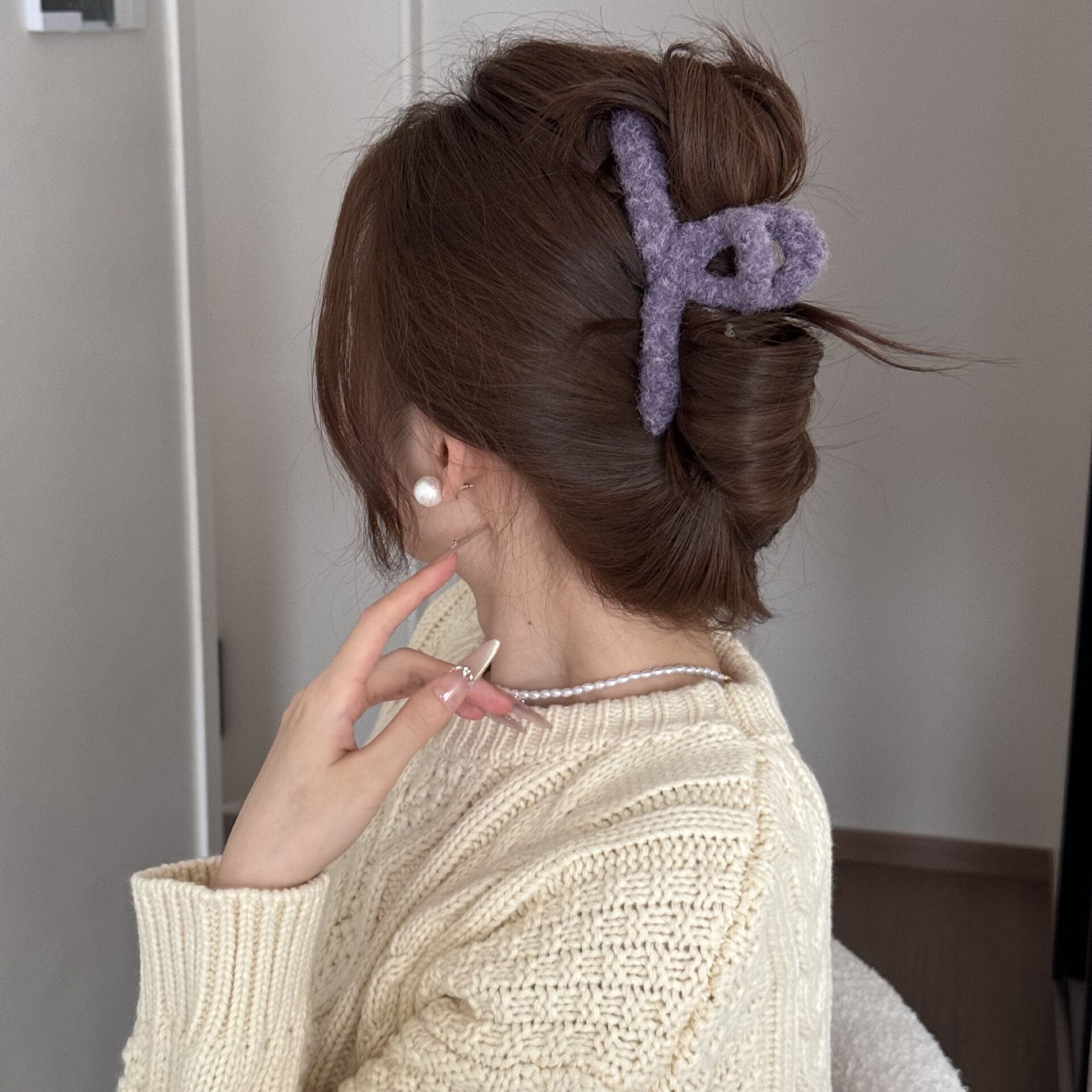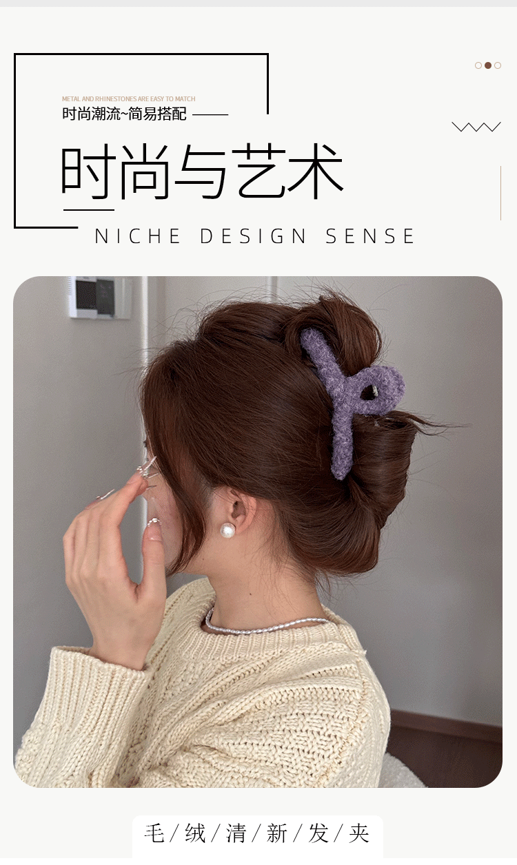 Korean Simple Autumn and Winter Plush Pure Color Hairpin New Half-Tied Hair Ball Head Elegant Elegant Shark Clip Hair Accessories