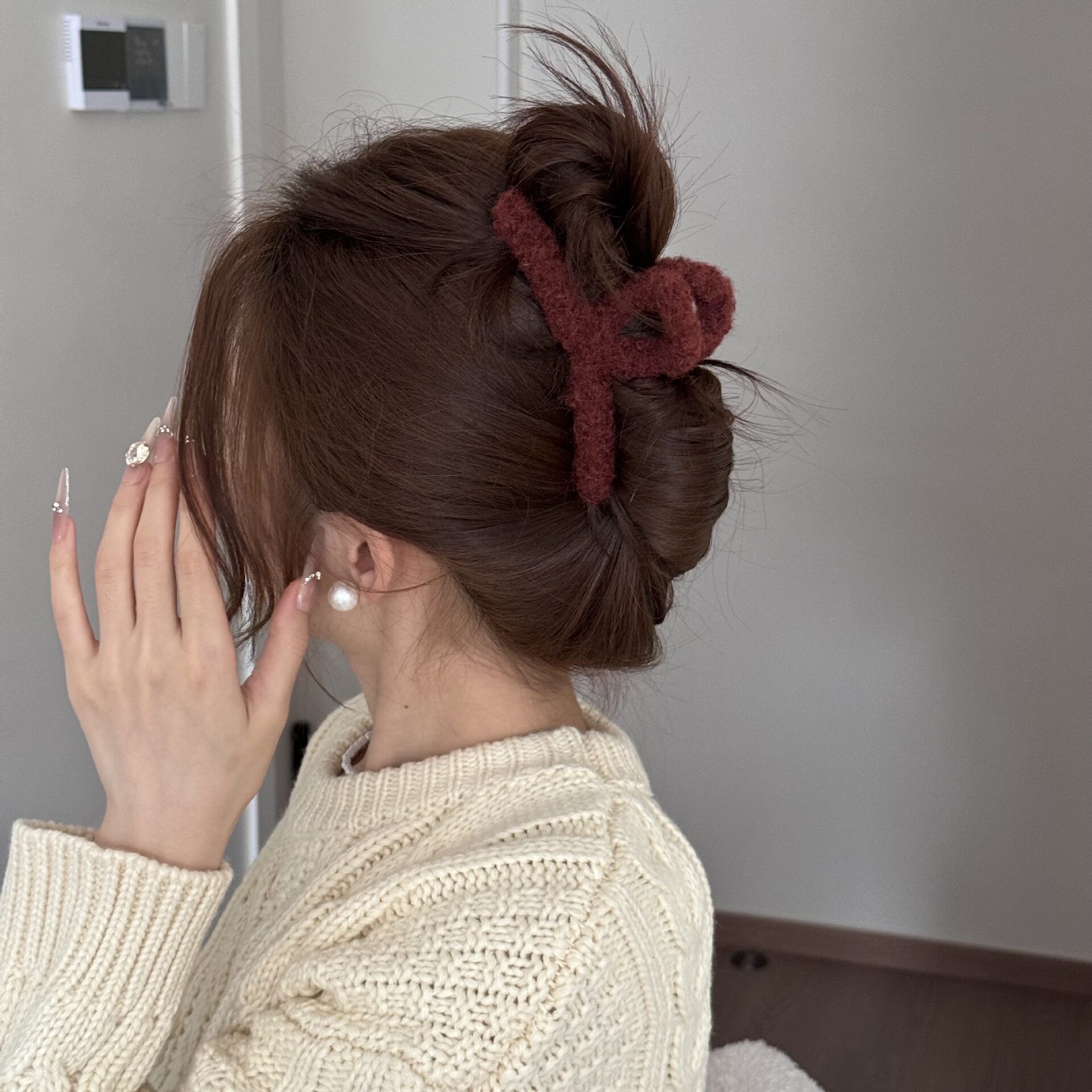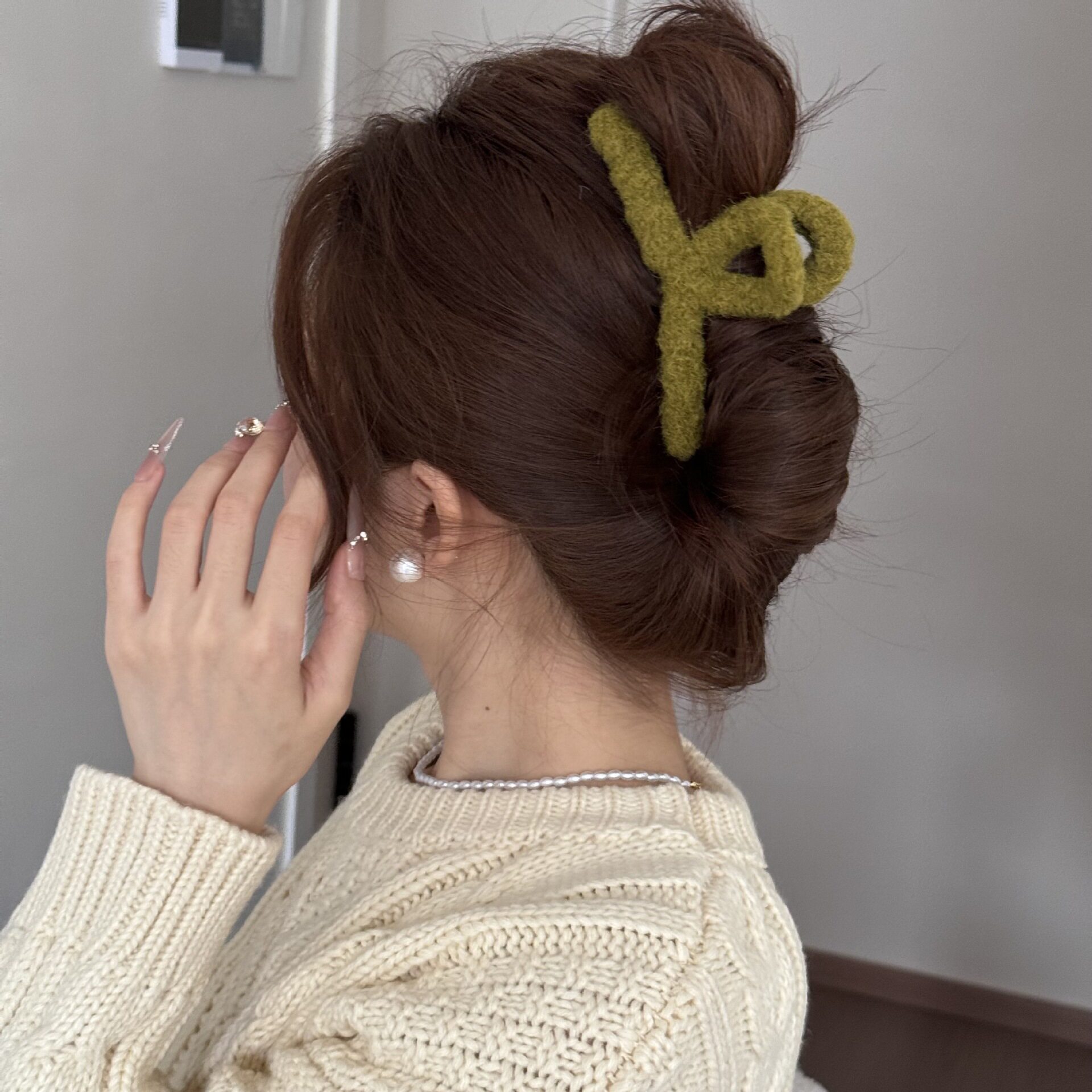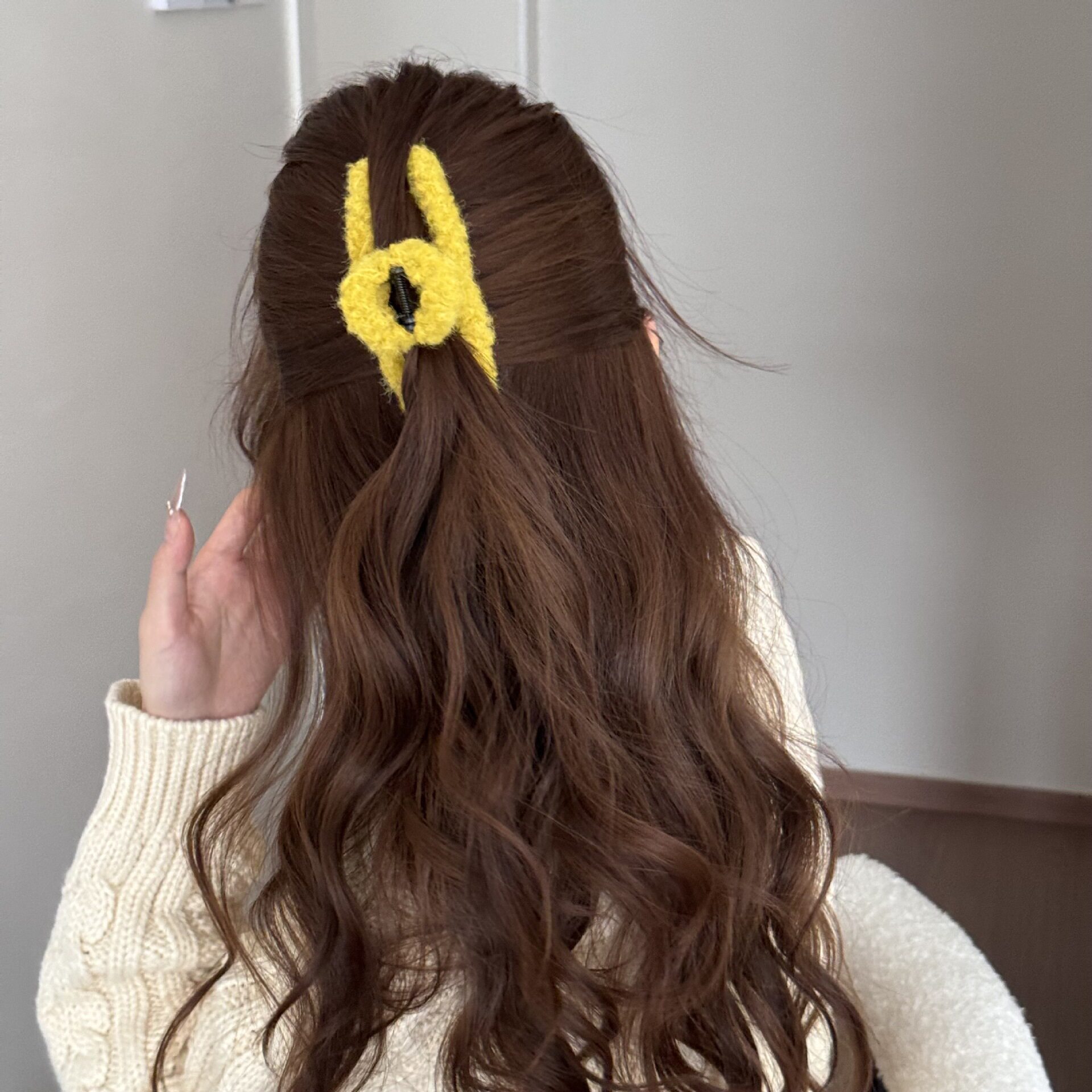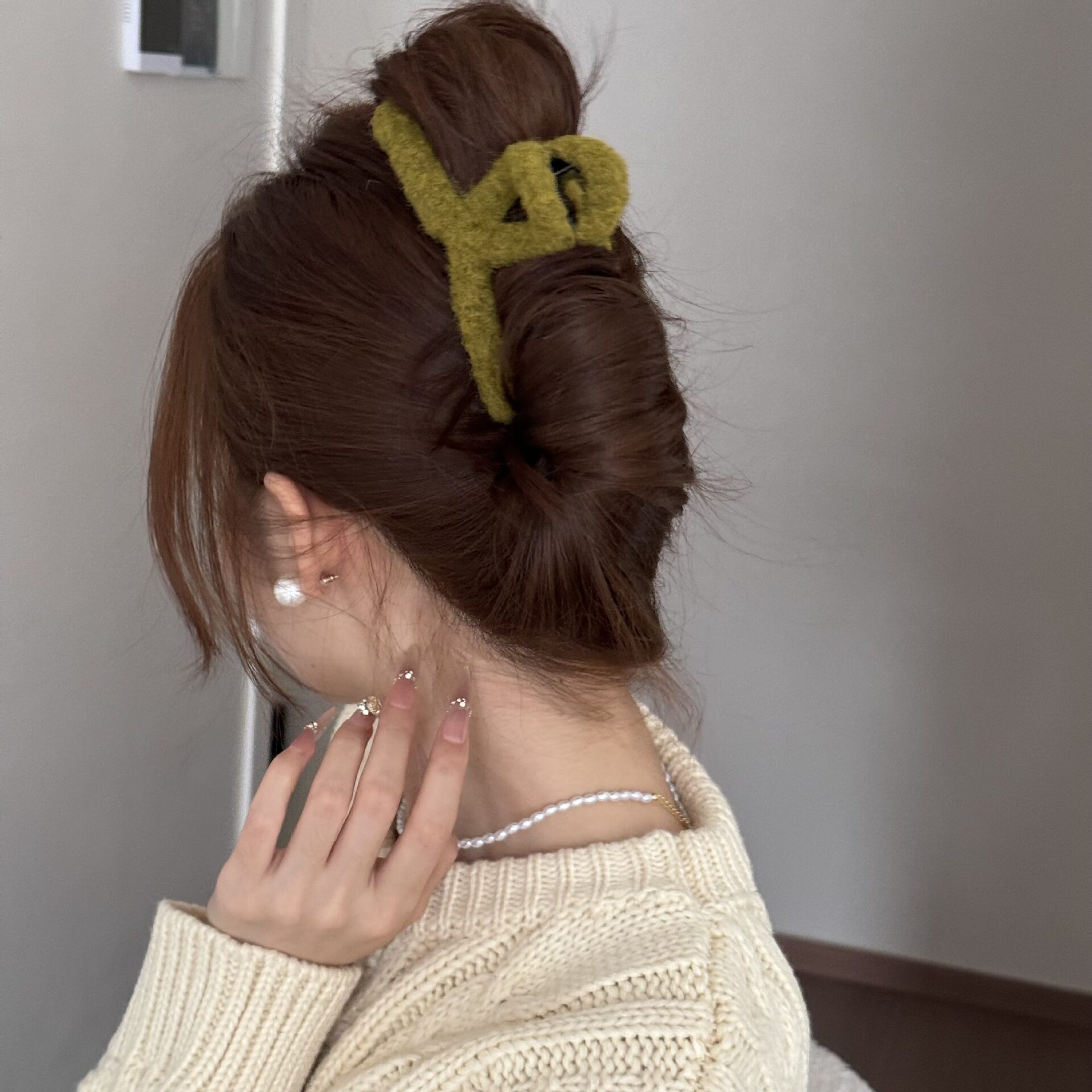 Korean Simple Autumn and Winter Plush Pure Color Hairpin New Half-Tied Hair Ball Head Elegant Elegant Shark Clip Hair Accessories