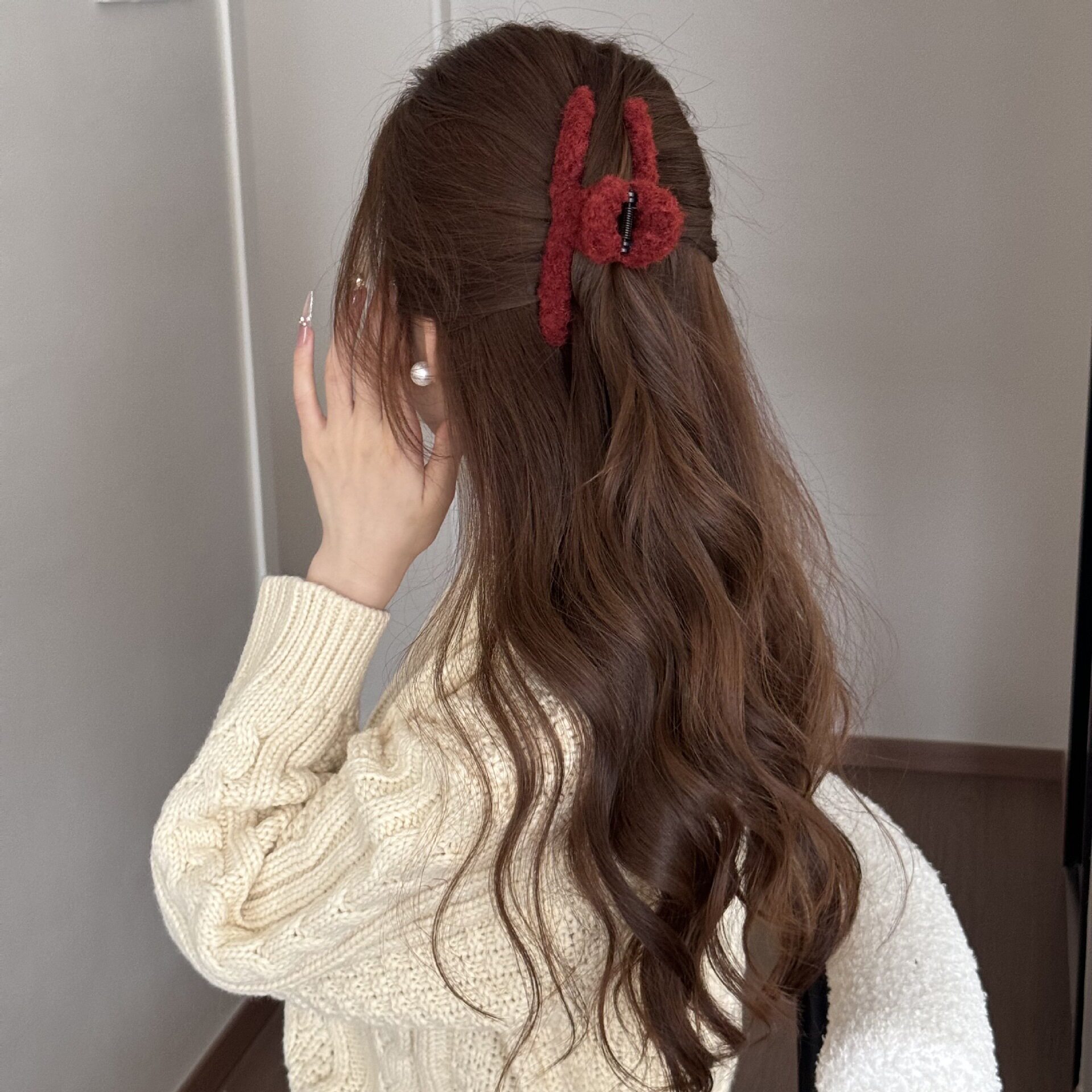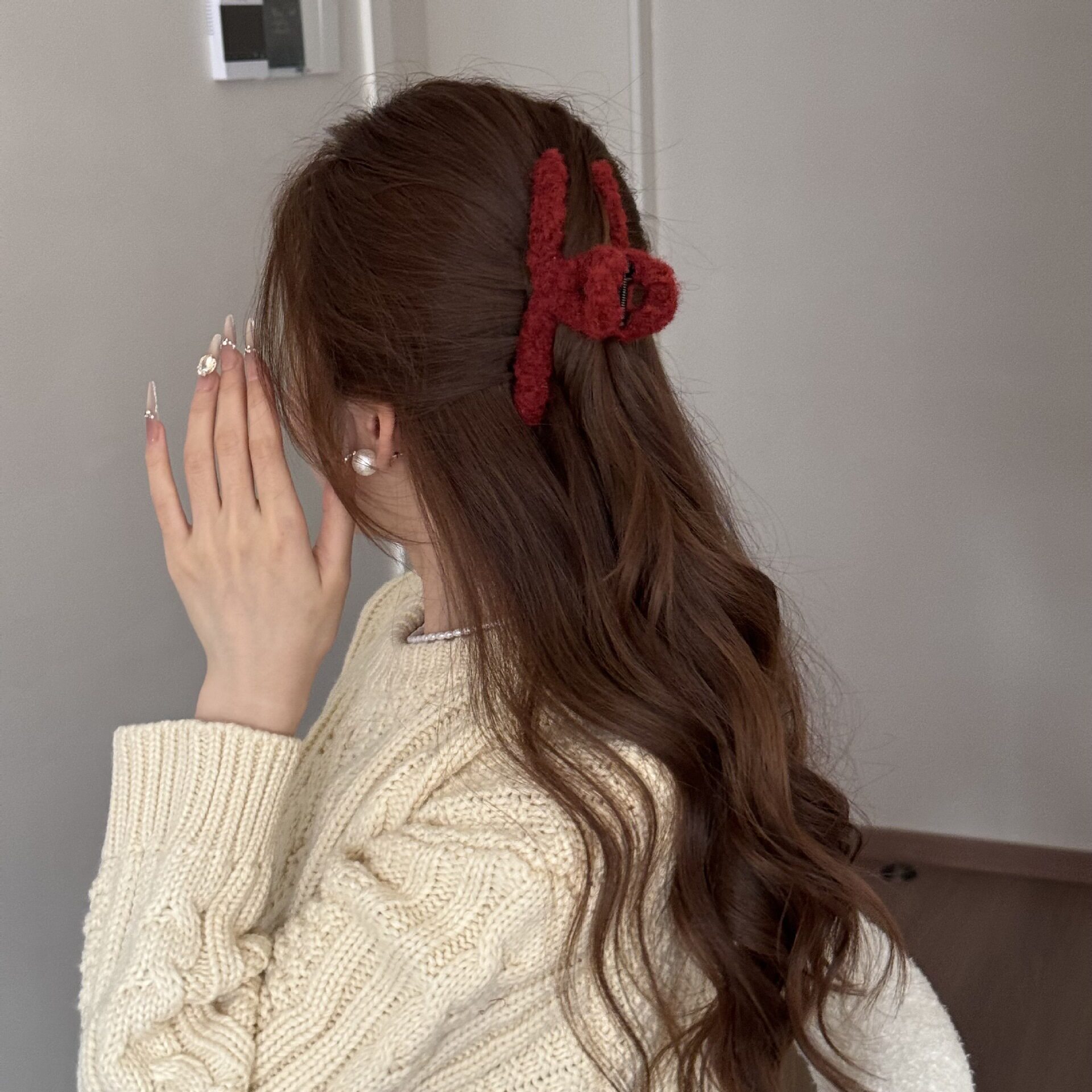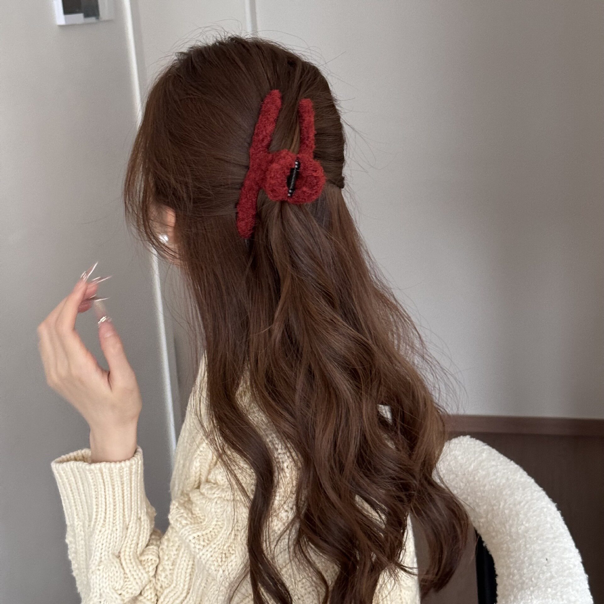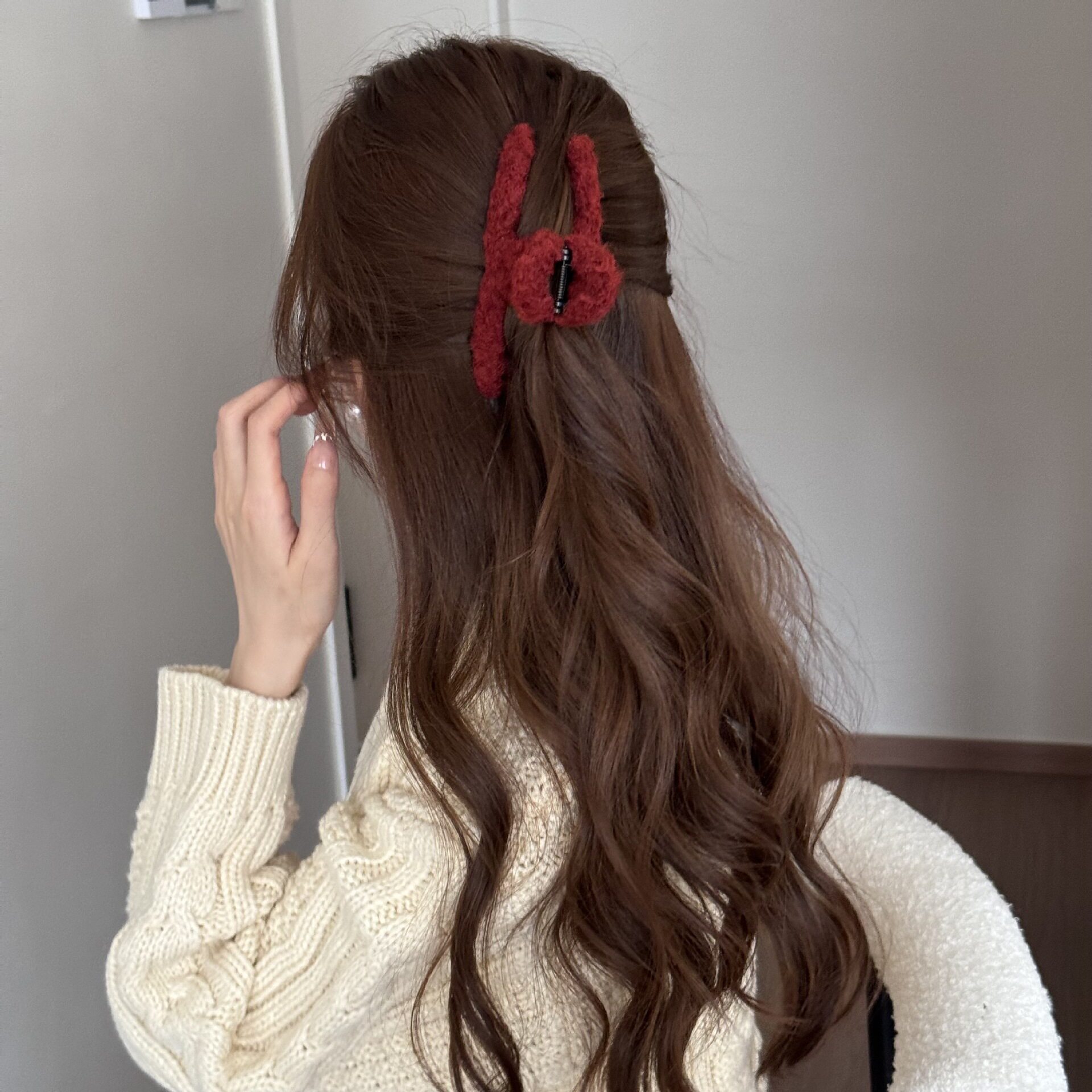 Korean Simple Autumn and Winter Plush Pure Color Hairpin New Half-Tied Hair Ball Head Elegant Elegant Shark Clip Hair Accessories