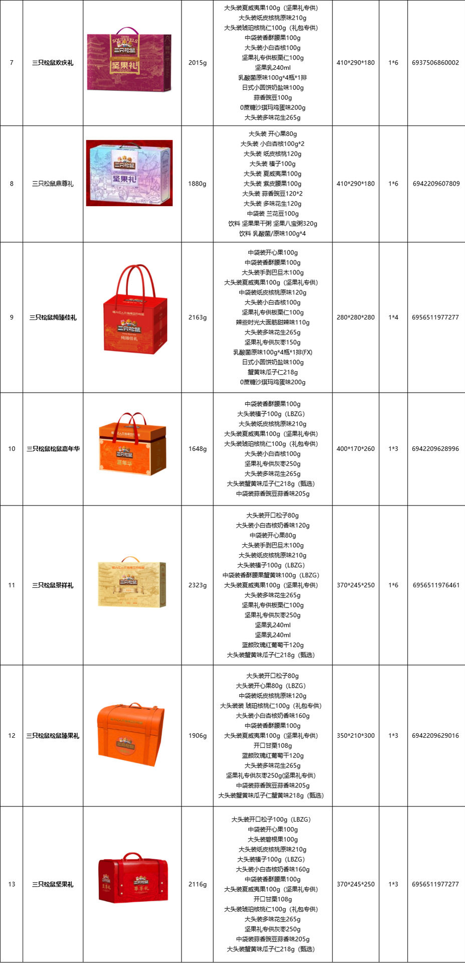 | Packaging specifications | Three squirrels surprise good luck gift,Three squirrels enjoy gifts,Three squirrels happy time,Three squirrels bring good luck,Three squirrels family portrait gift,Three squirrels jin yun li,Three squirrels celebration,Three squirrels ding zun gift,Three squirrels, a pure gift,Three squirrels squirrel carnival,Three squirrels jingxiang li,Three squirrels squirrel fruit gift,Three squirrels nut gift |