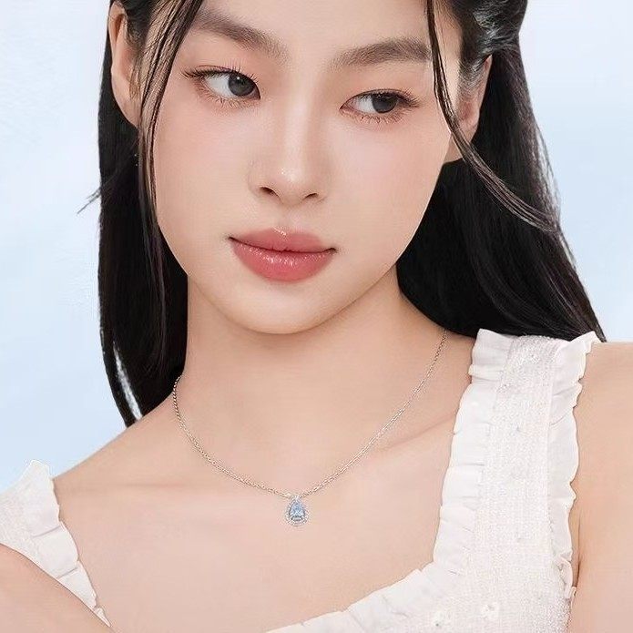 Fanjia White Copper Necklace with Logo Blue Tears Necklace Water Drop Niche Simple Clavicle Chain Fashion Gift for Girlfriend Birthday